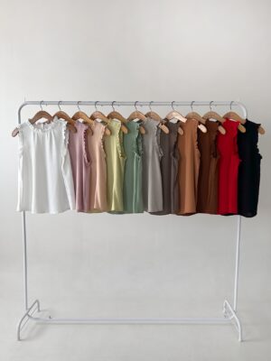 BLUSA DE CREPE SIN MANGA CON VOLADITOS EN LA SISA Y CUELLO