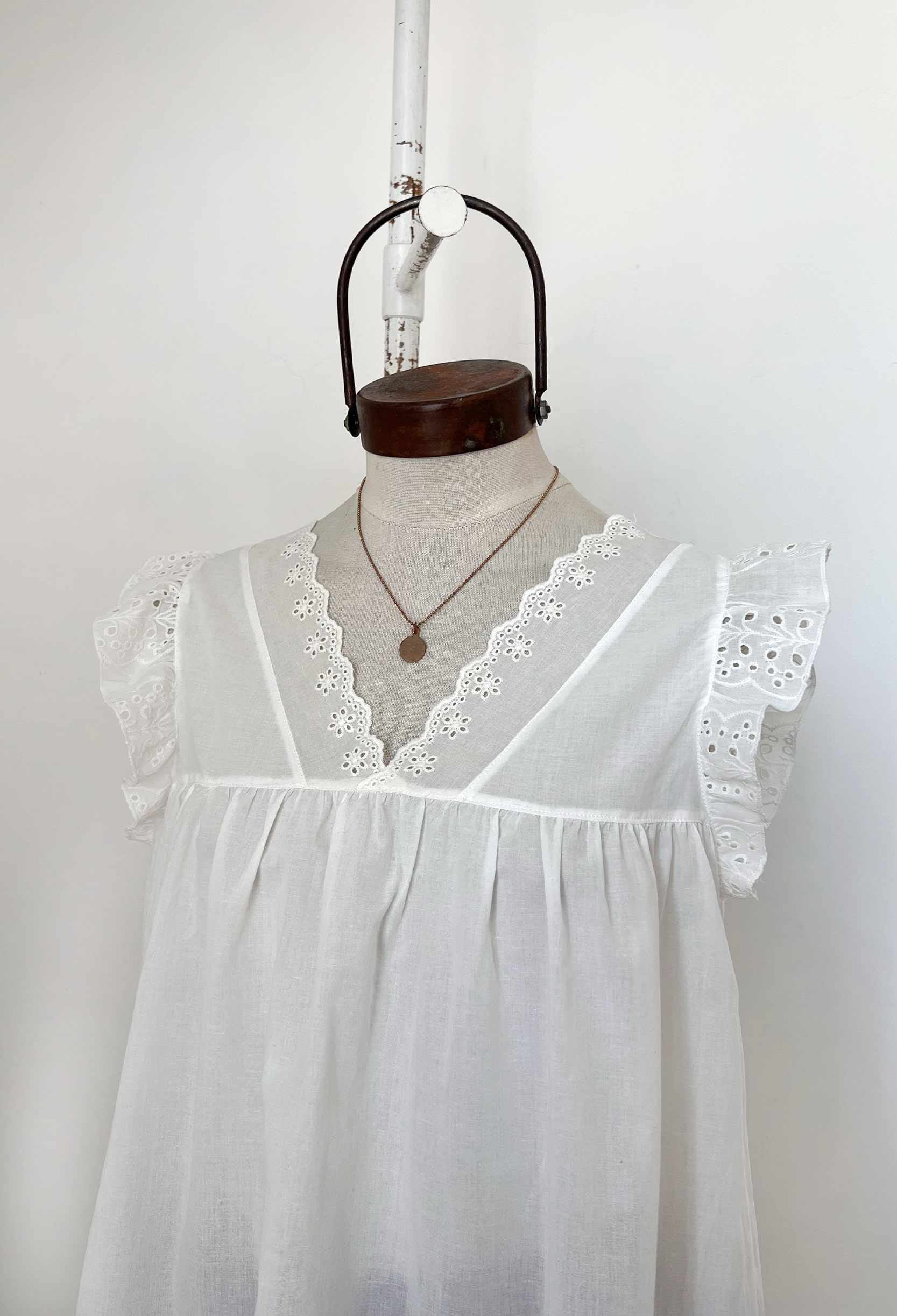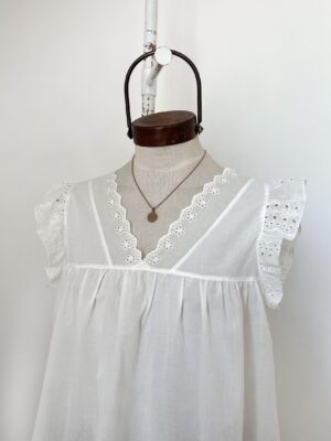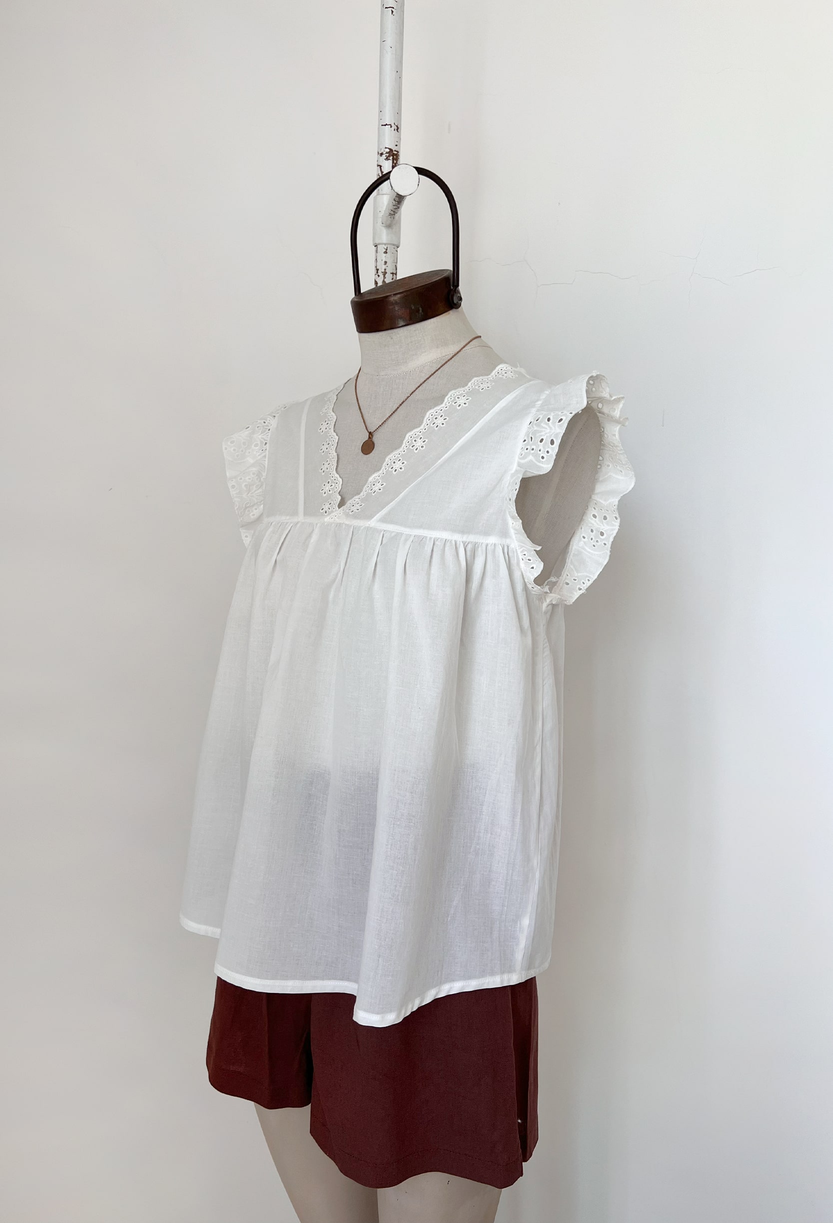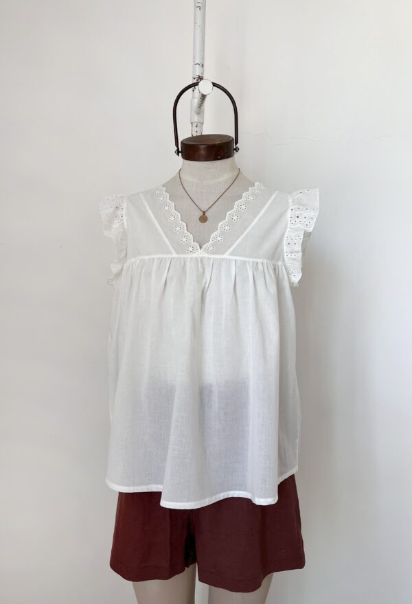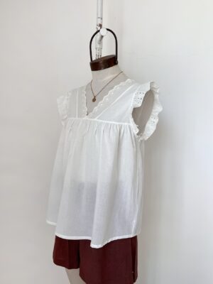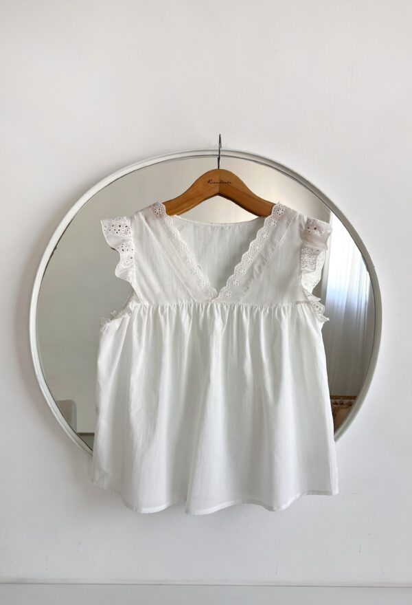 BLUSA DE COTTON VOILE CON BRODERIE EN LA SISA Y PUNTILLA BORDADA EN EL ESCOTE