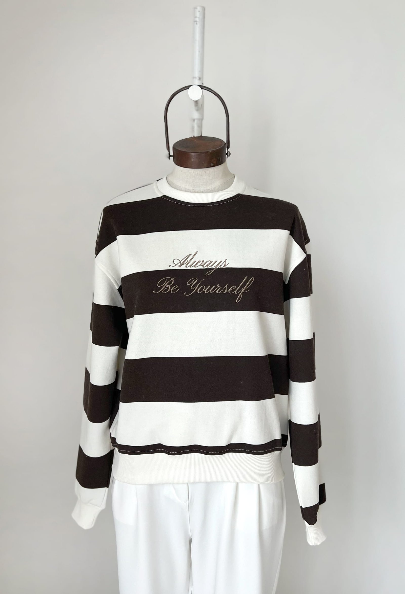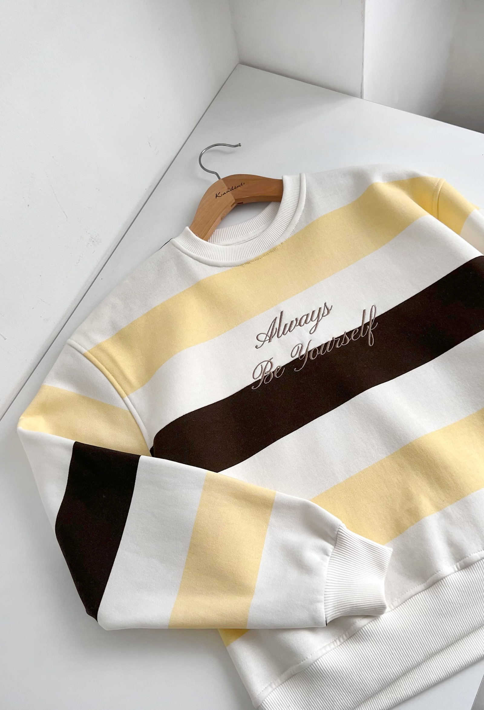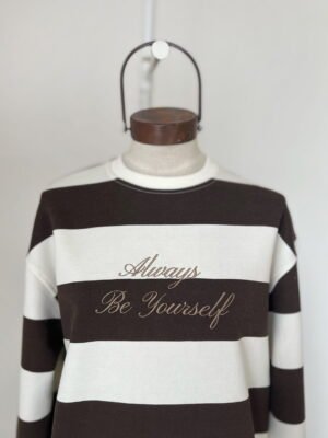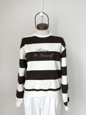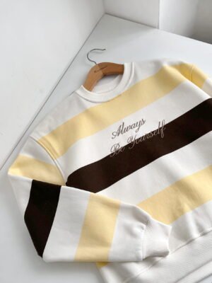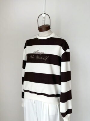 BUZO DE FRIZA RAYADO CON BORDADO DELANTERO Y COMPLEMENTO DE RIBB