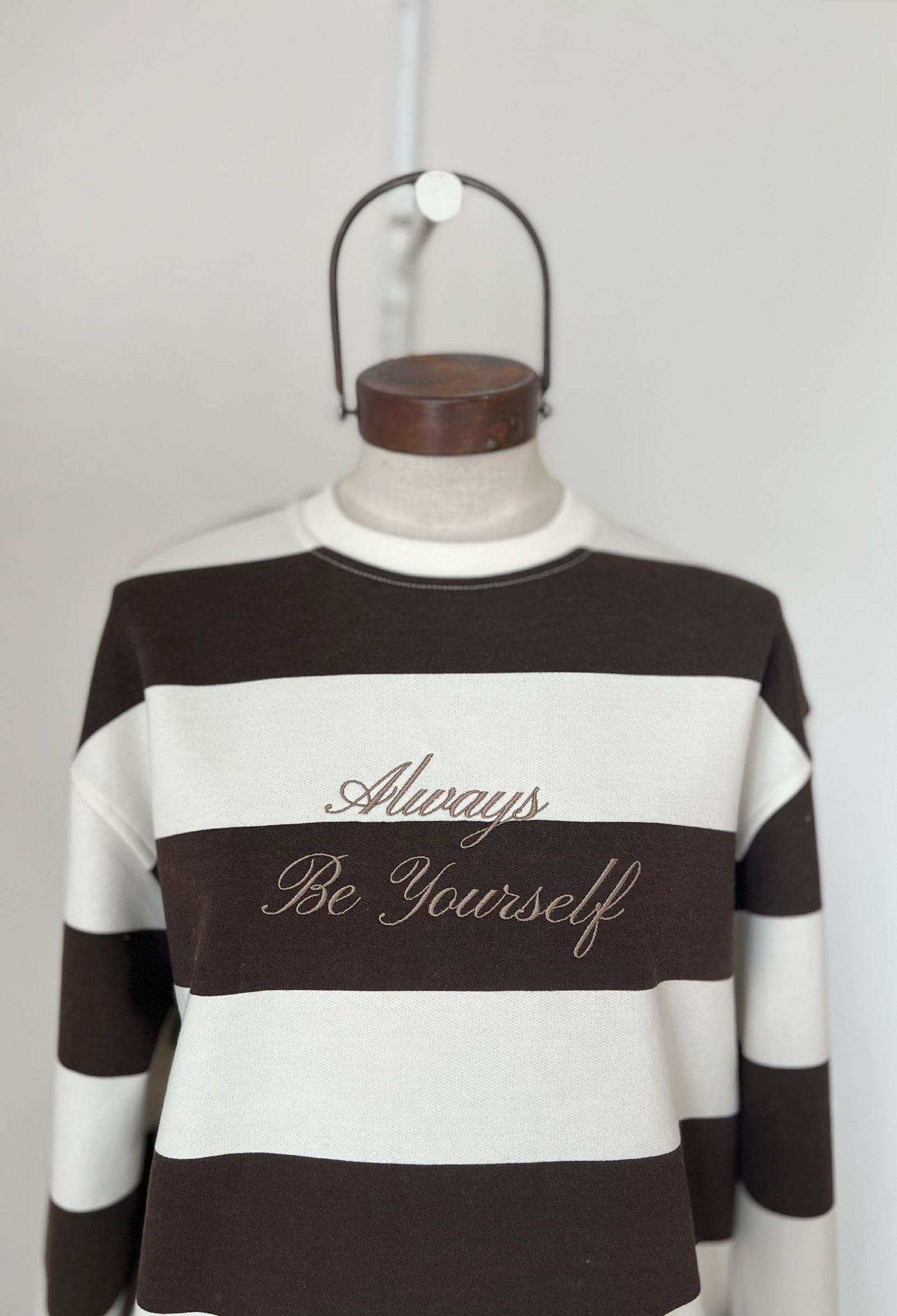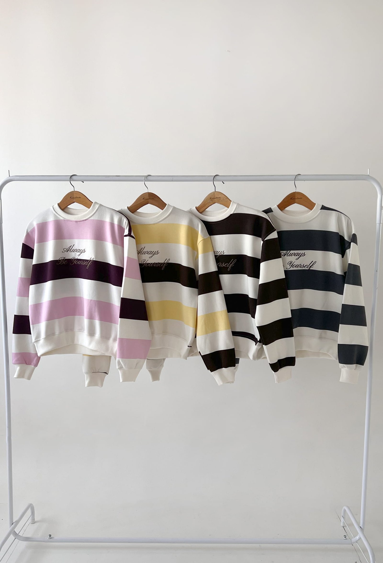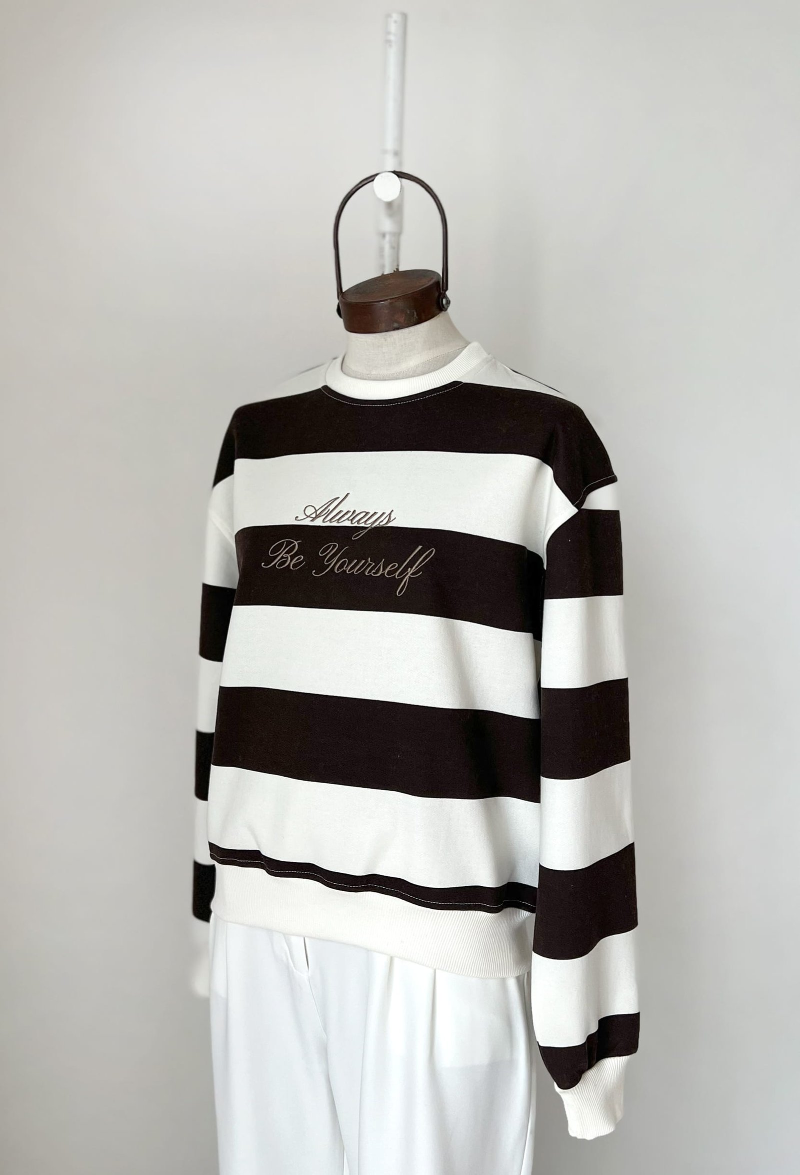 BUZO DE FRIZA RAYADO CON BORDADO DELANTERO Y COMPLEMENTO DE RIBB