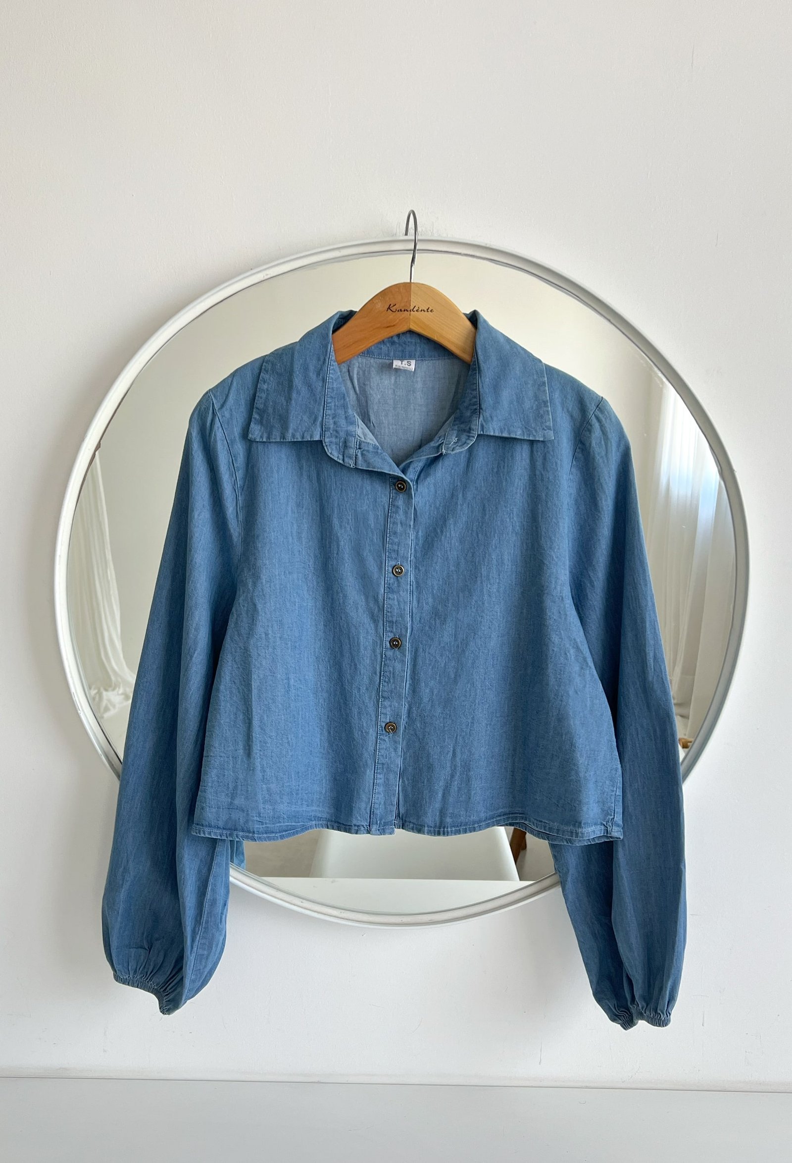 CAMISA CORTA DE DENIM CON MANGAS ABULLONADAS