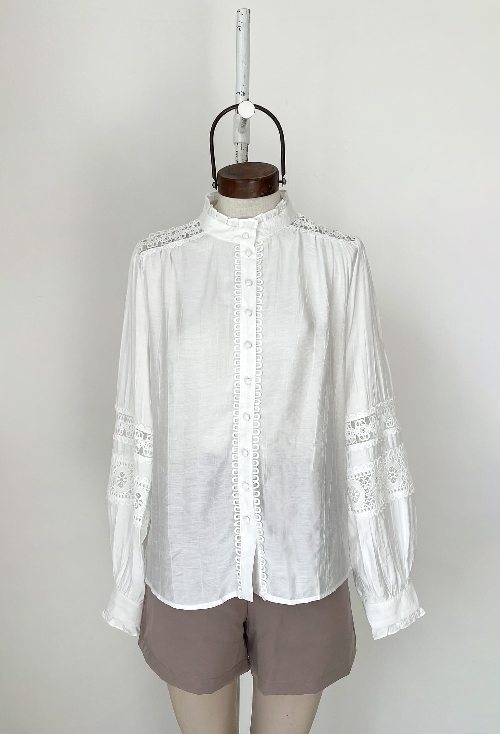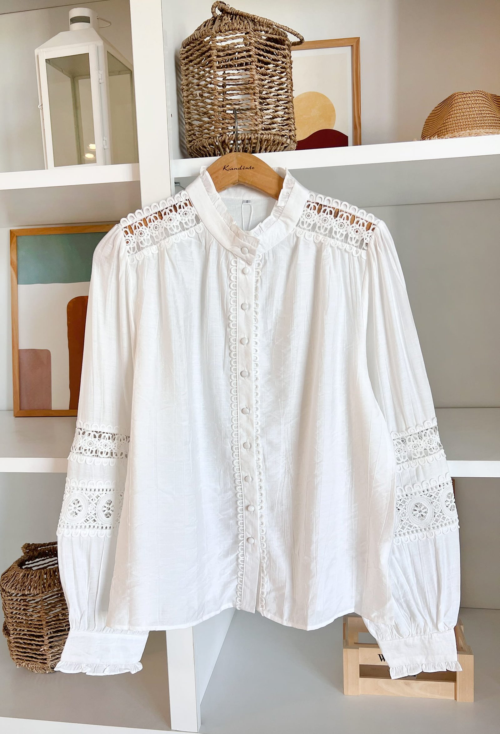 CAMISA CON DETALLES DE BRODERIE Y PUNTILLA