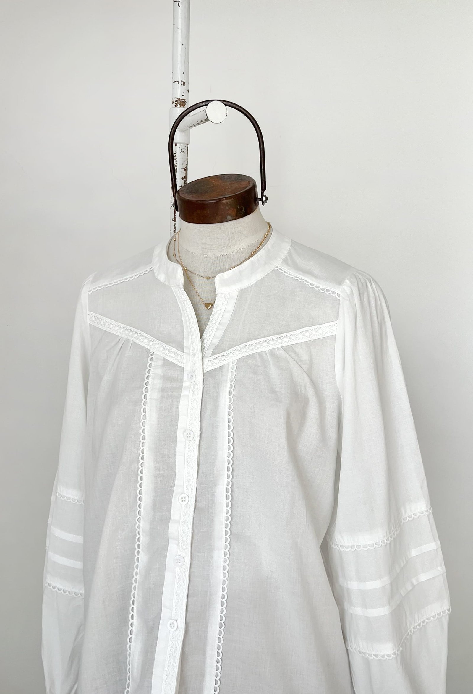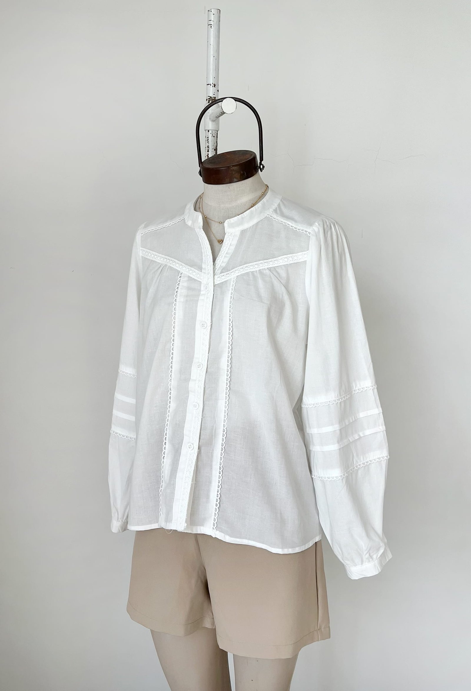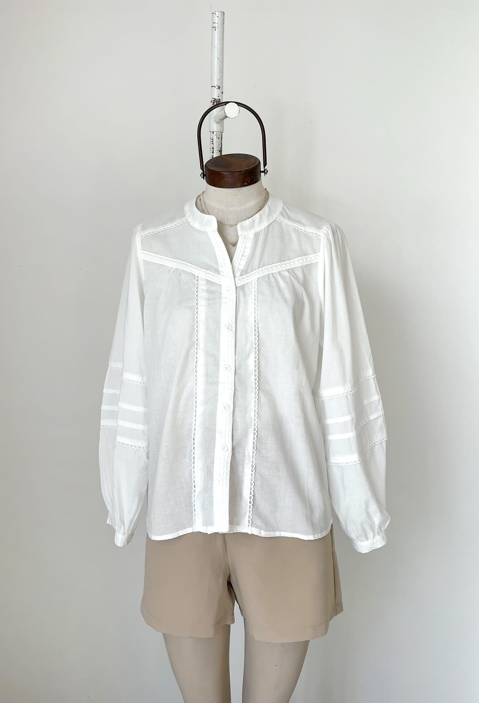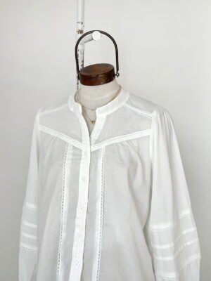 CAMISA CON CUELLO MAO Y ESCOTE EN V, DETALLES DE PUNTILLA