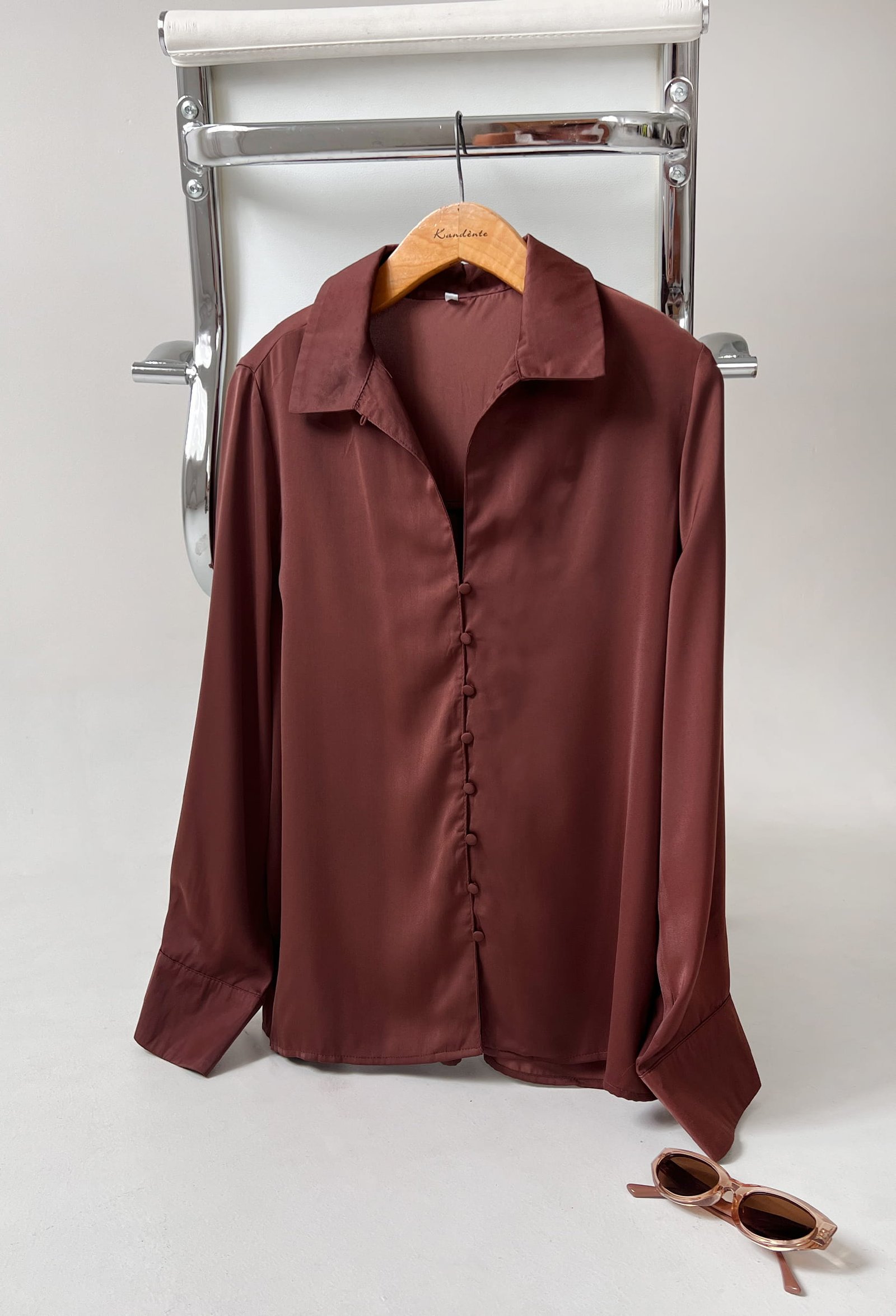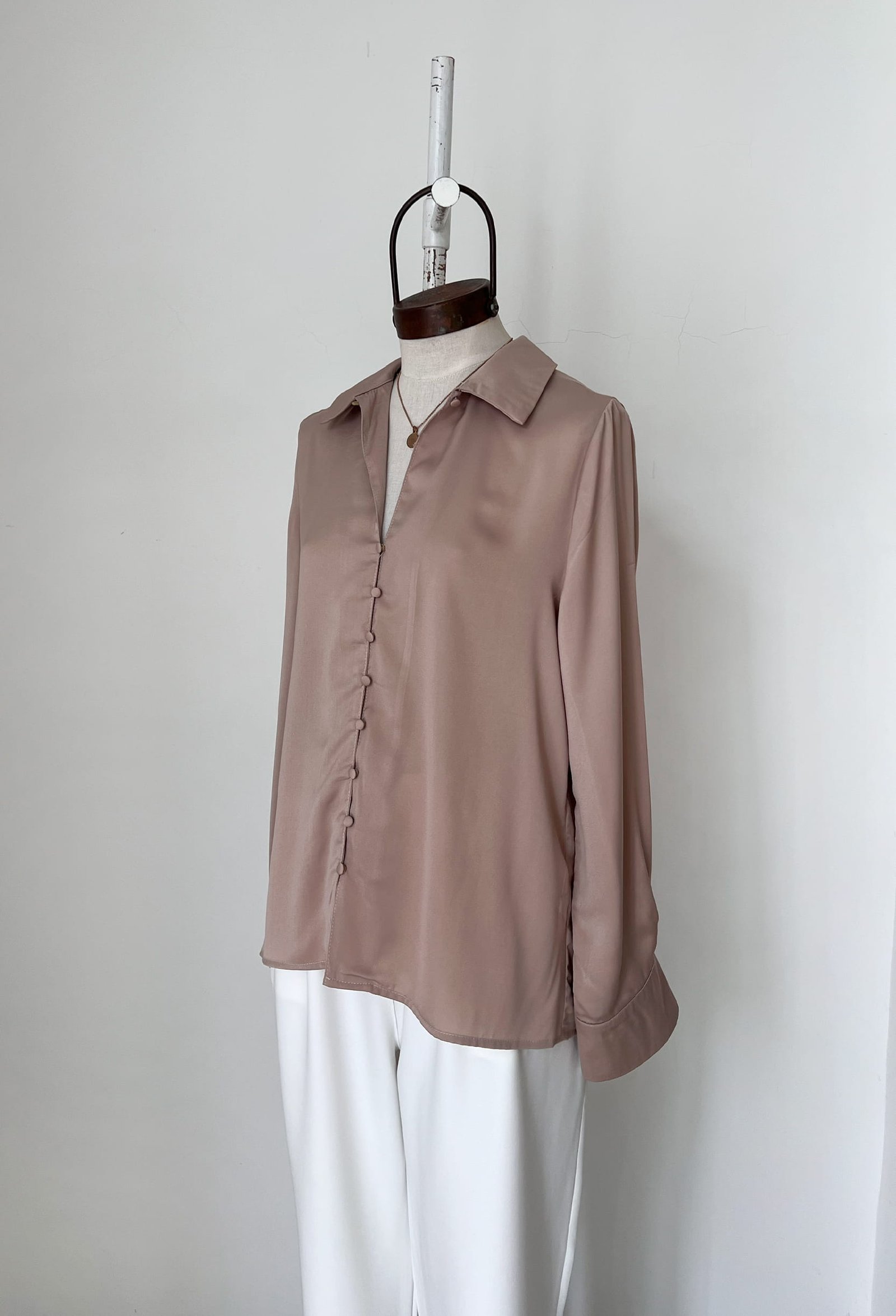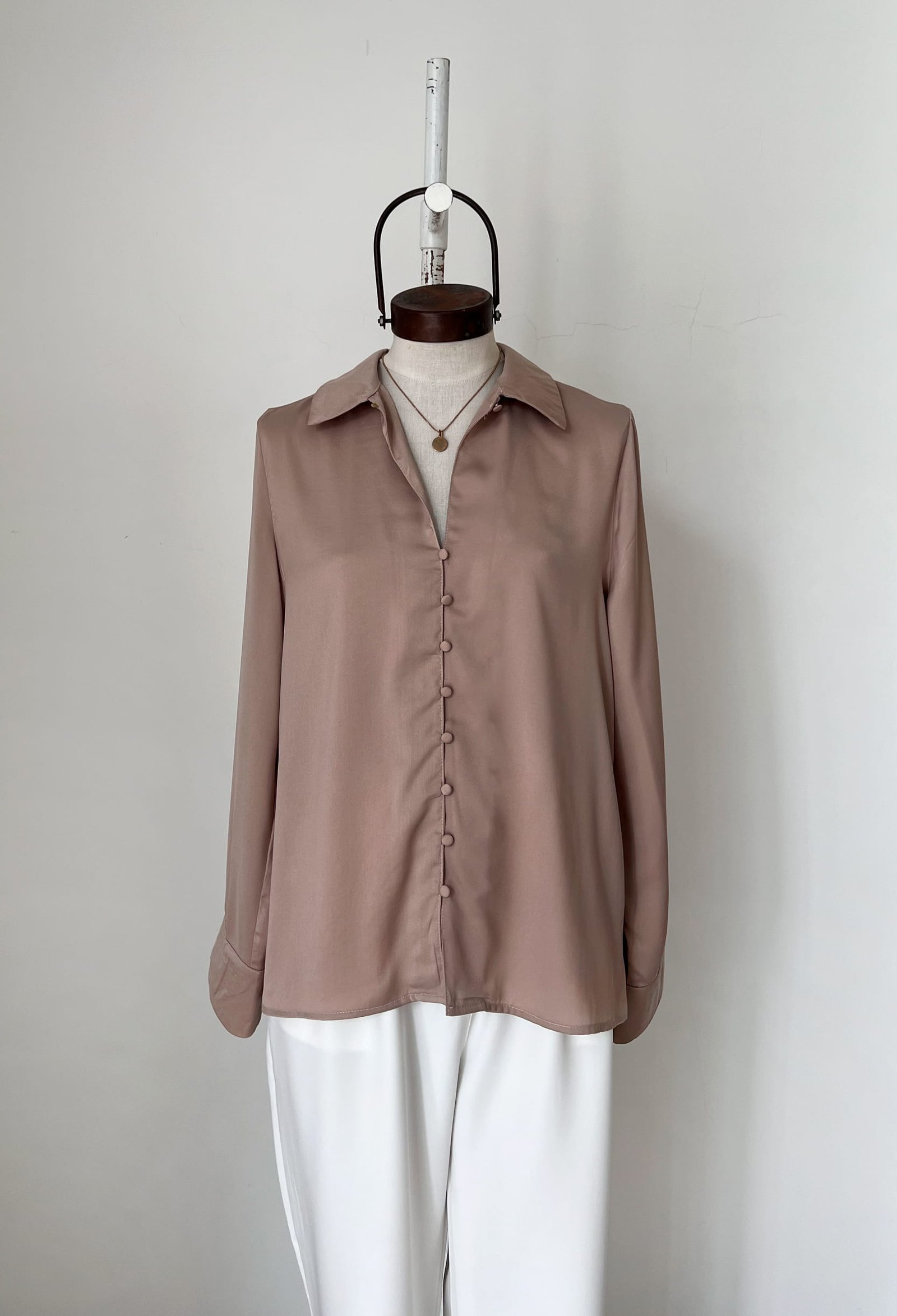 CAMISA DE SEDA CON BOTONES FORRADOS