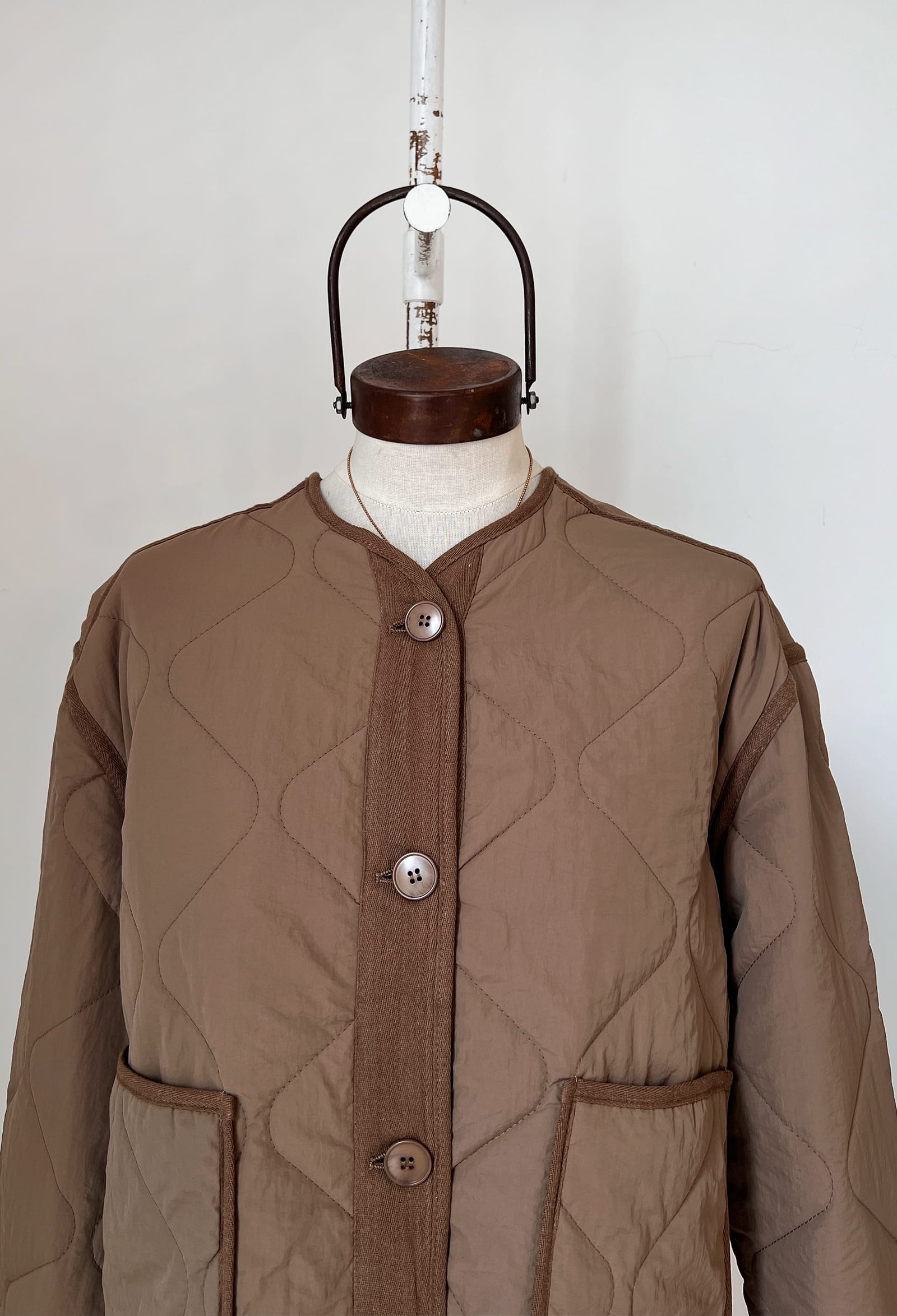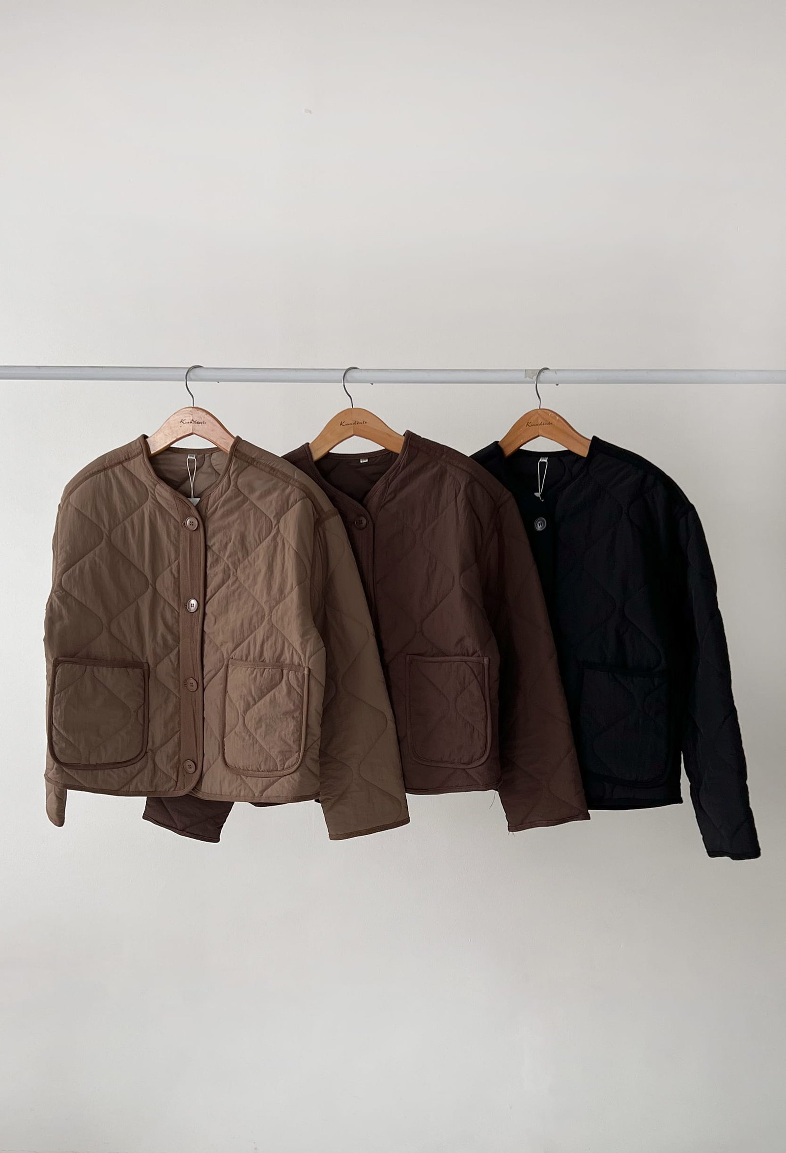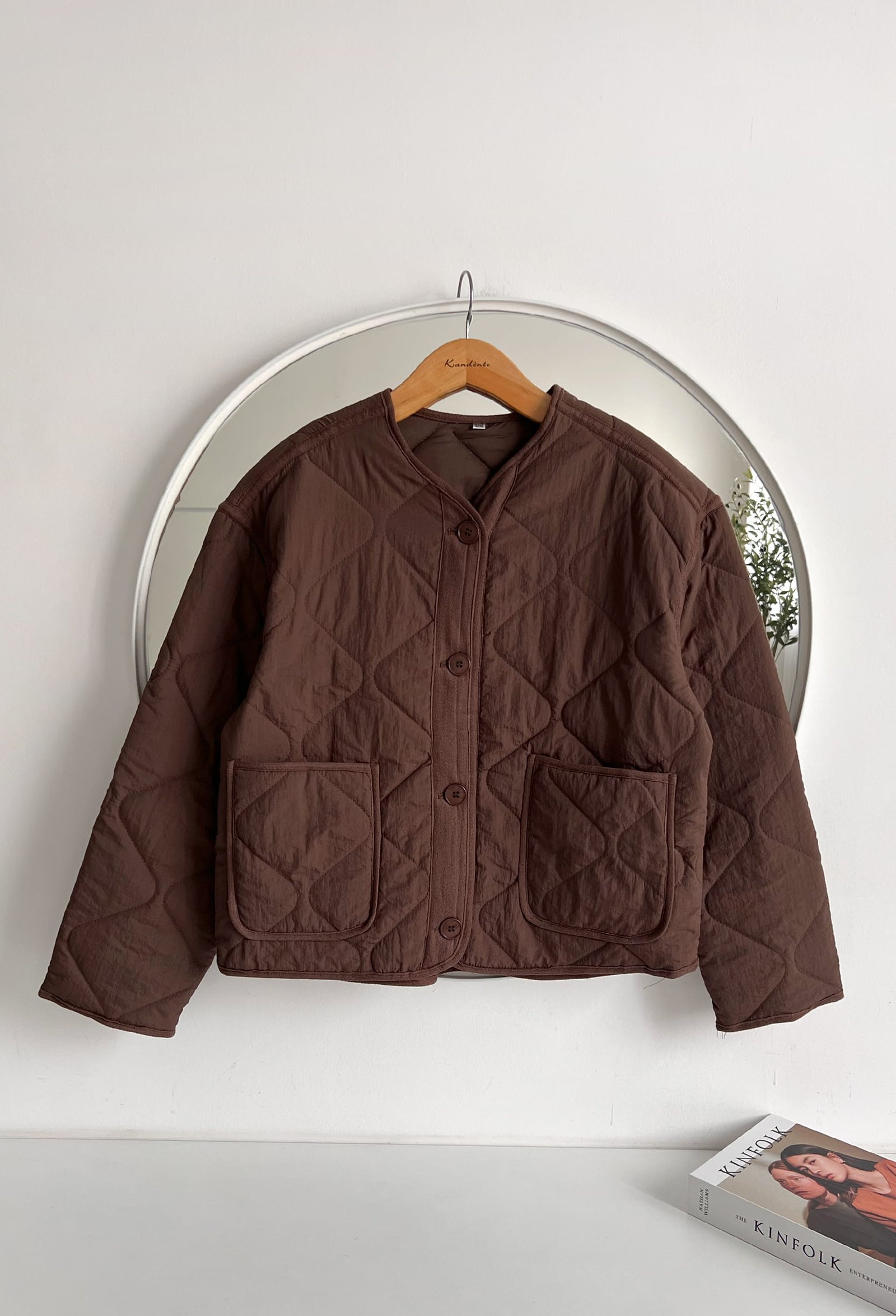 CAMPERA PUFFER CON TRAMA DE ROMBOS, BOTONES Y BOLSILLOS DELANTEROS
