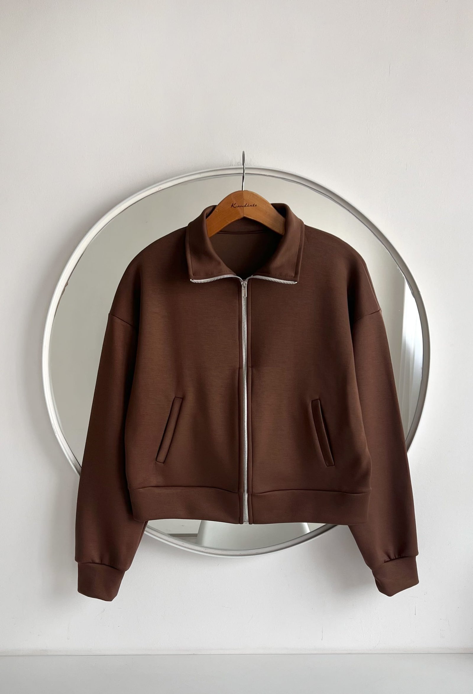 CAMPERA DE SCUBA CON BOLSILLOS DELANTEROS Y CIERRE DELANTERO