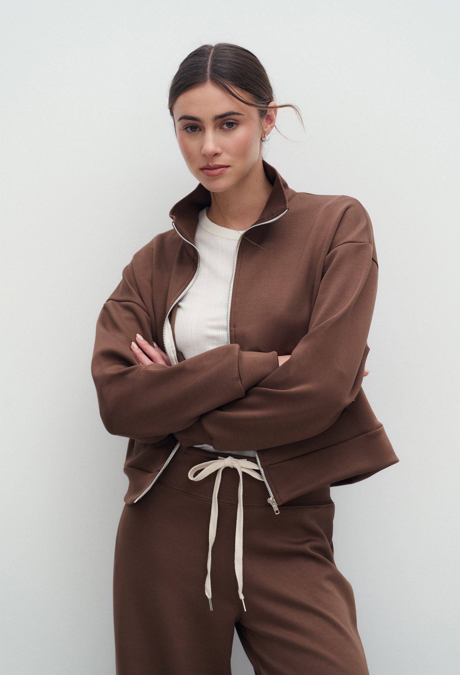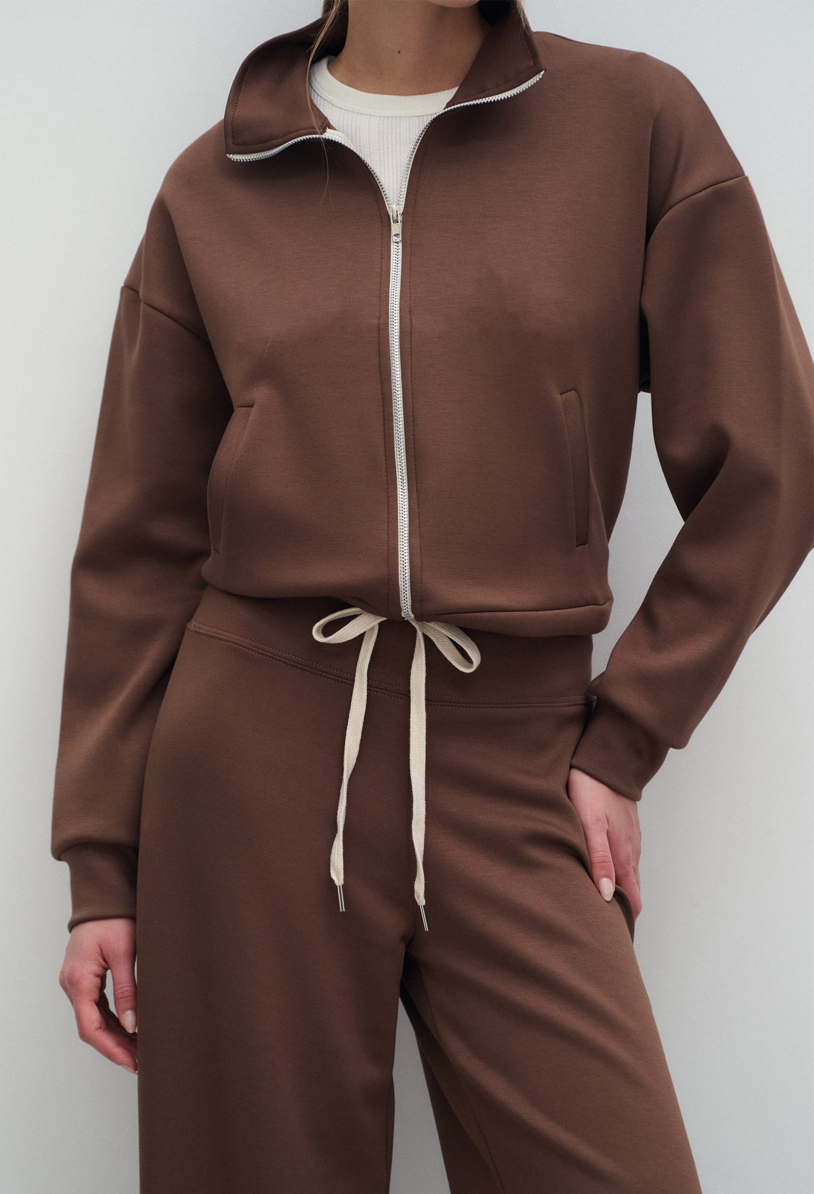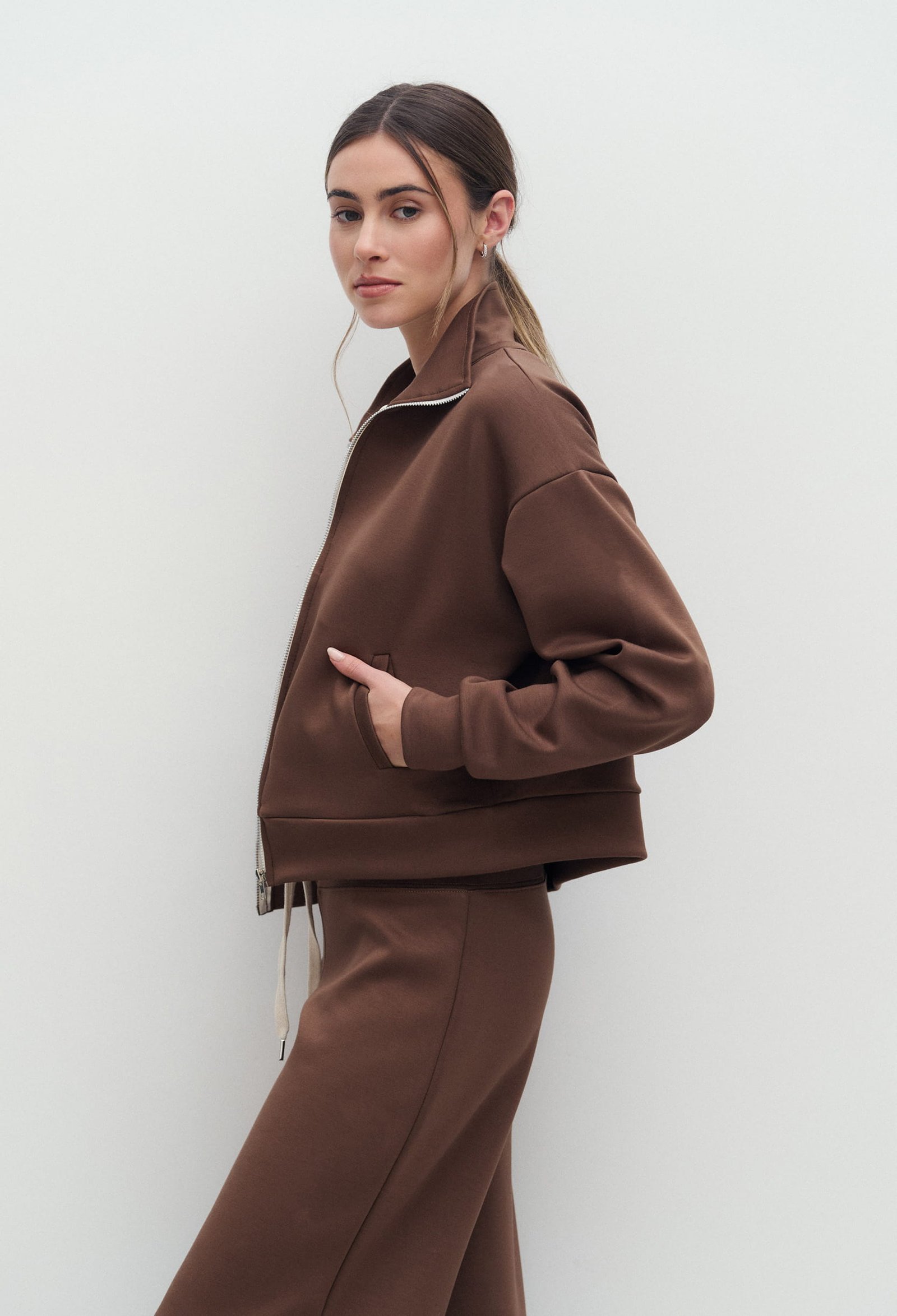 CAMPERA DE SCUBA CON BOLSILLOS DELANTEROS Y CIERRE DELANTERO. TACTO SUAVE