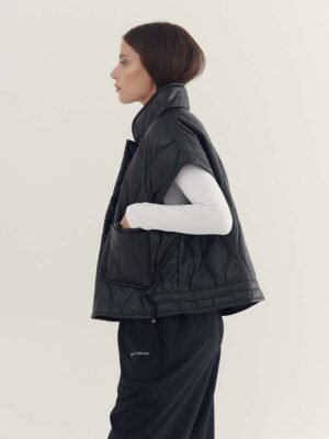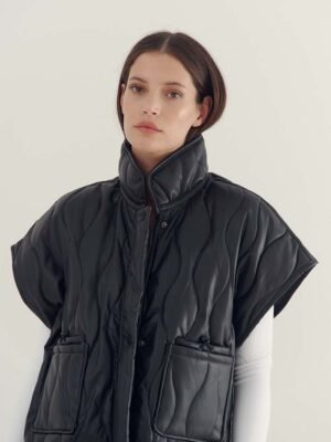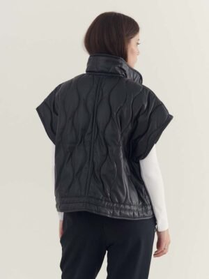 CHALECO MATELASSE DE CUERO SINTETICO CON BOLSILLOS Y CIERRE