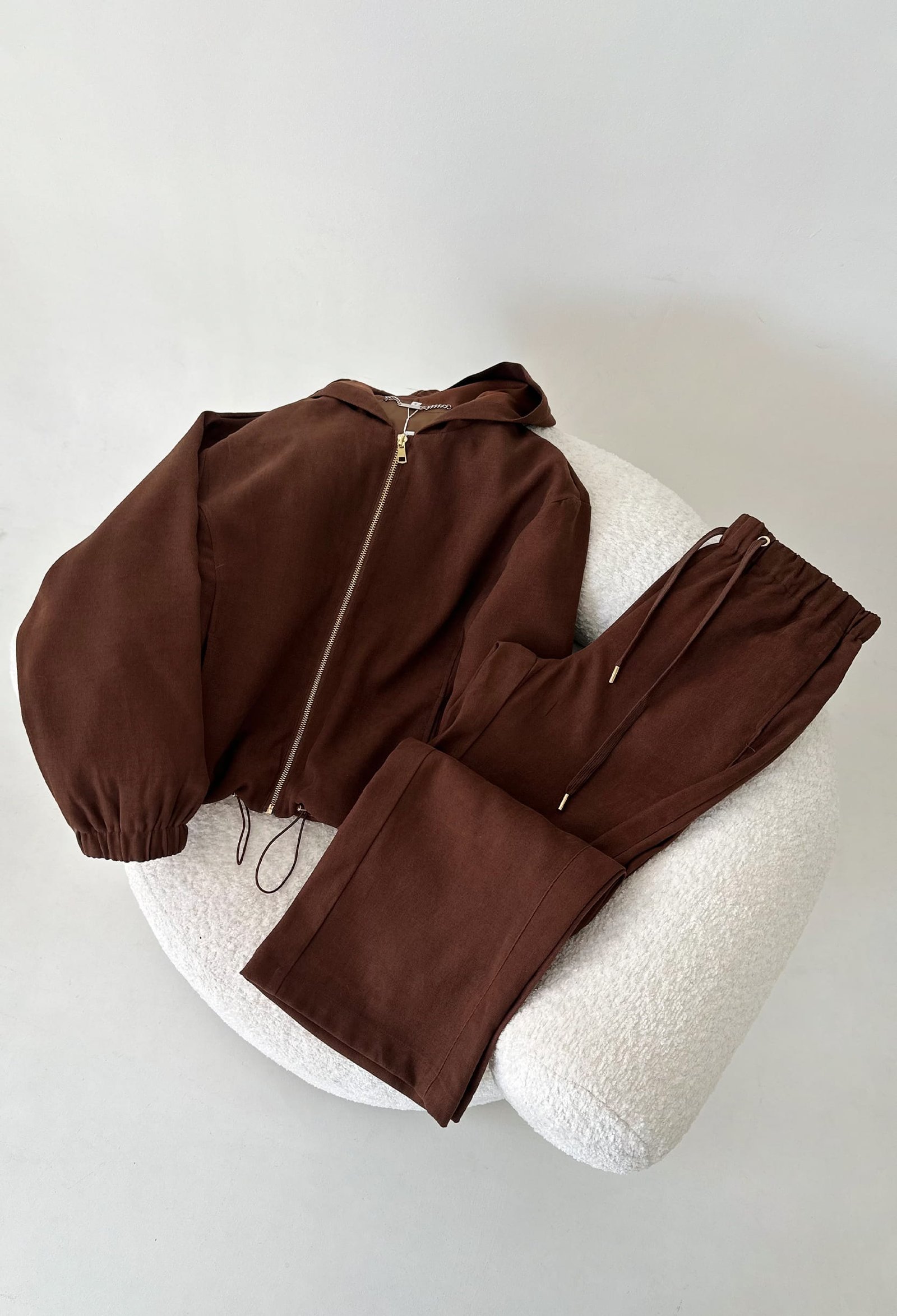CONJUNTO CAMPERA CON CAPUCHA Y PANTALON CON ELASTICO EN CINTURA
