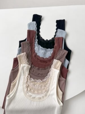 MUSCULOSA DE RIB ALGODON CON PUNTILLA EN ESCOTE Y SISA