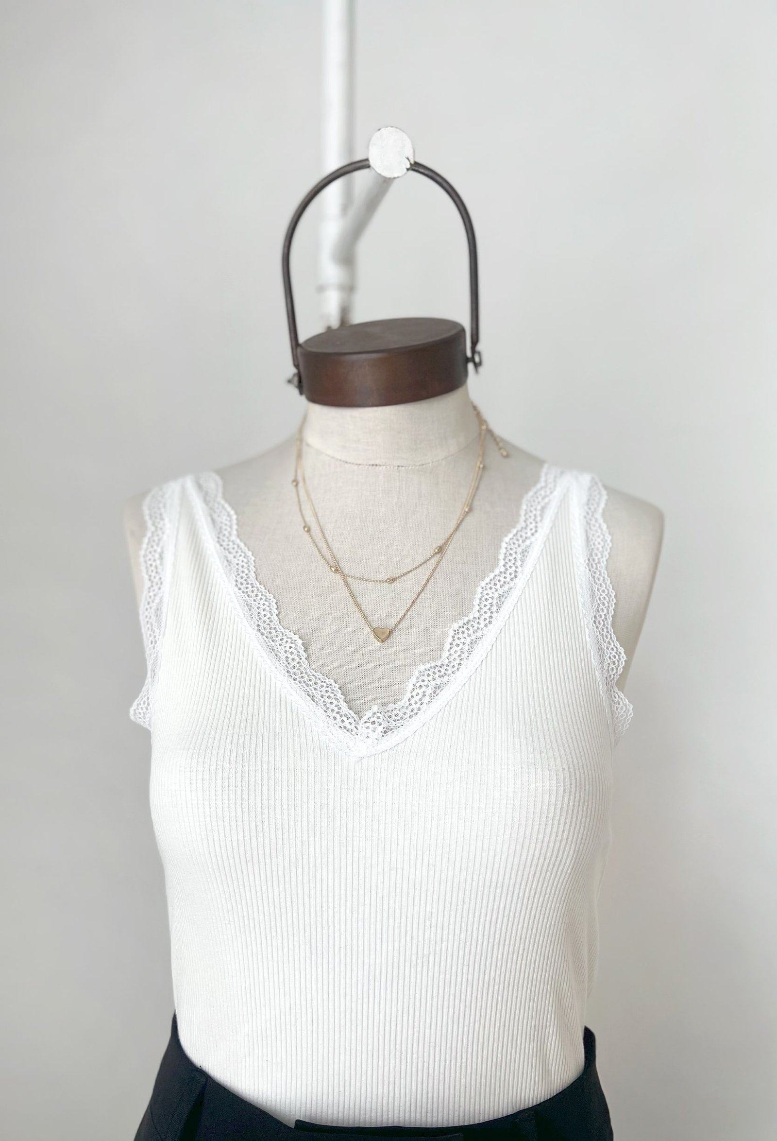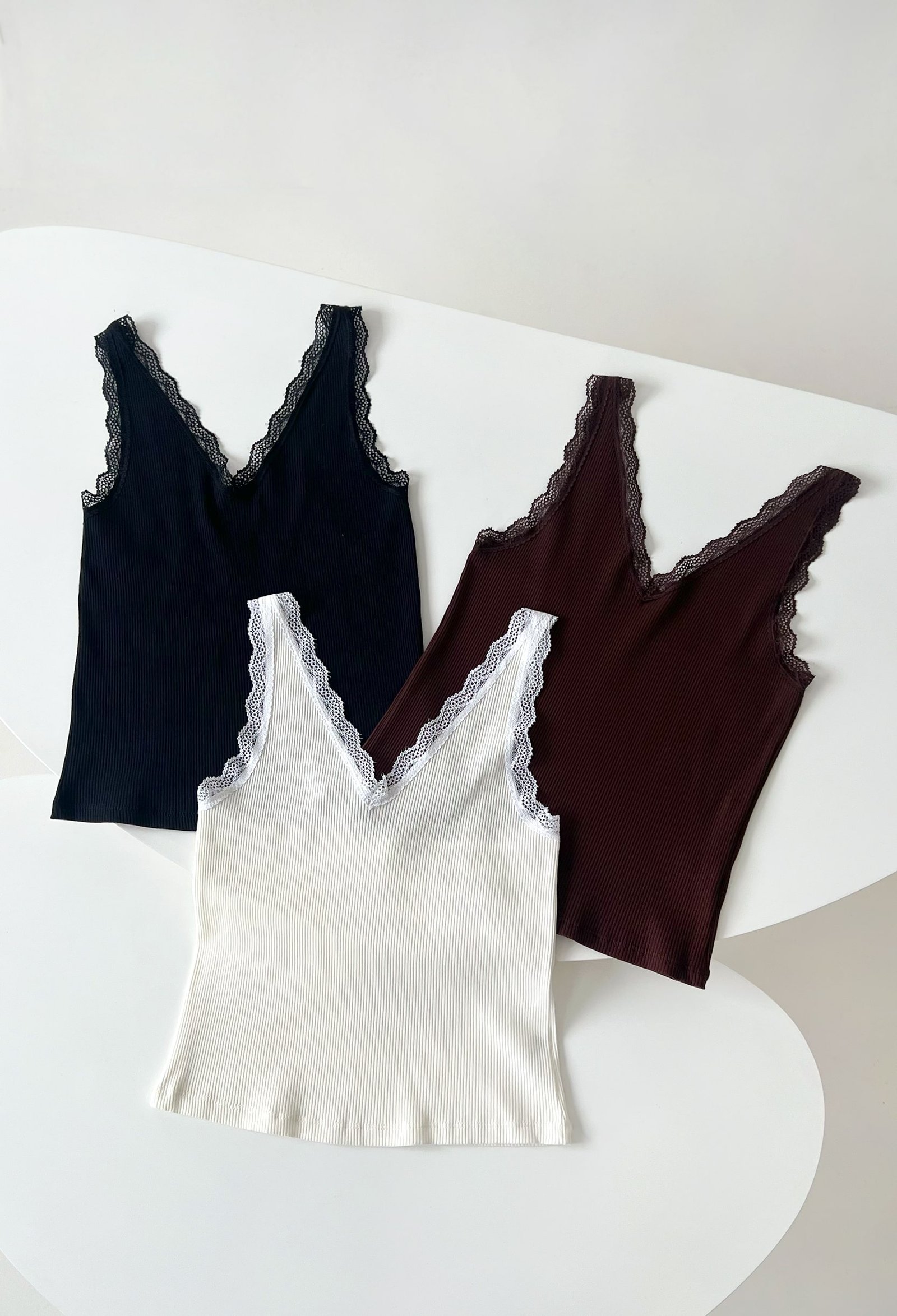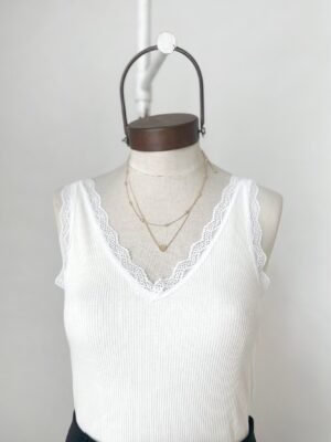 MUSCULOSA DE MORLEY, ESCOTE EN V CON DETALLES EN PUNTILLA