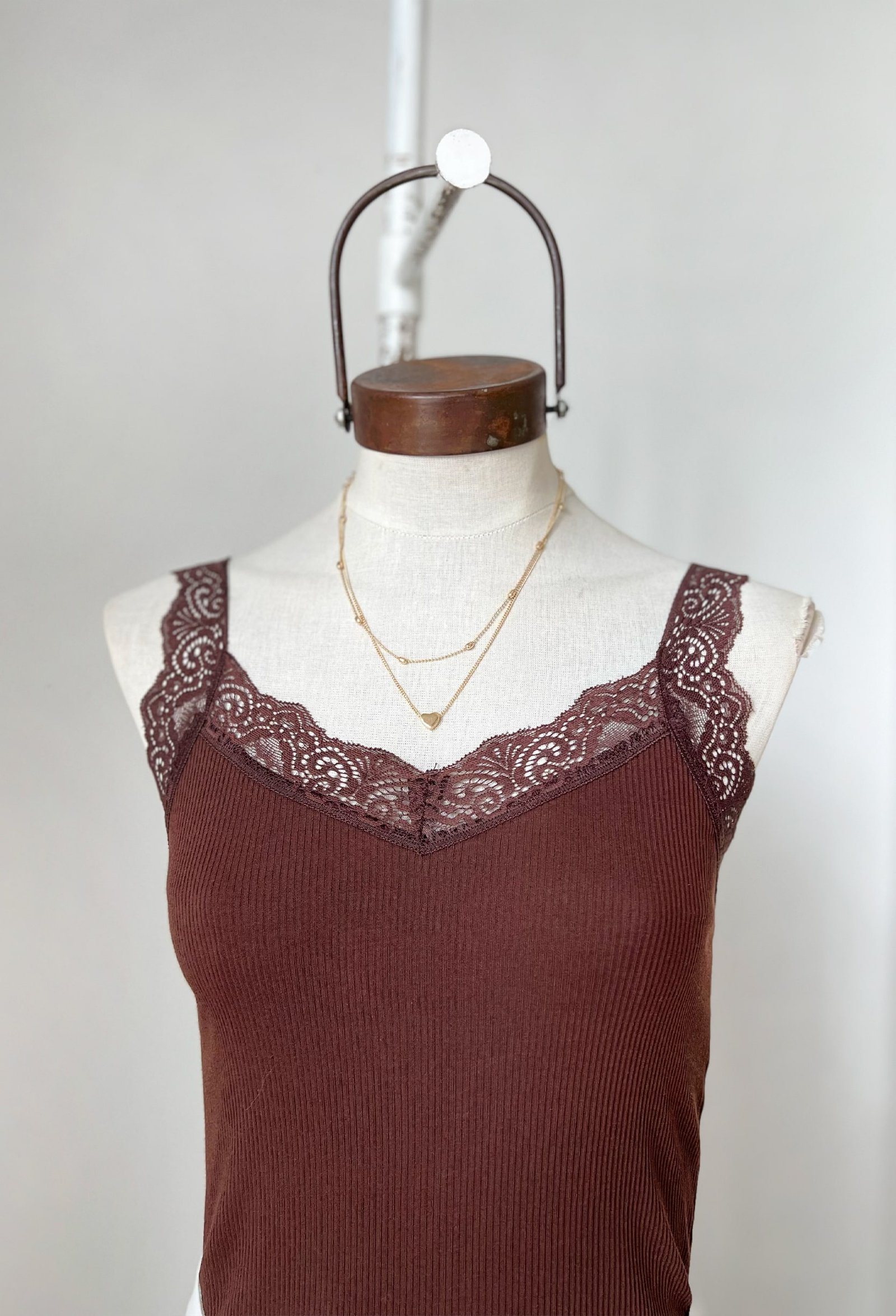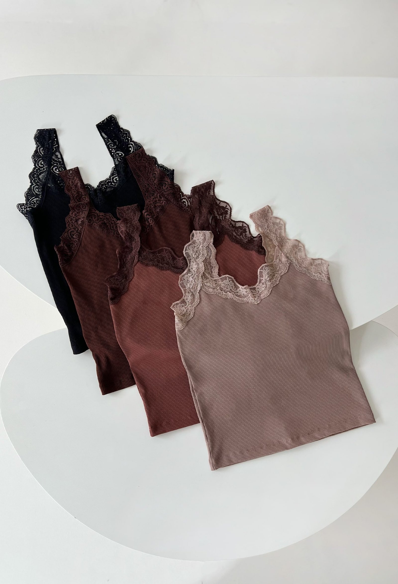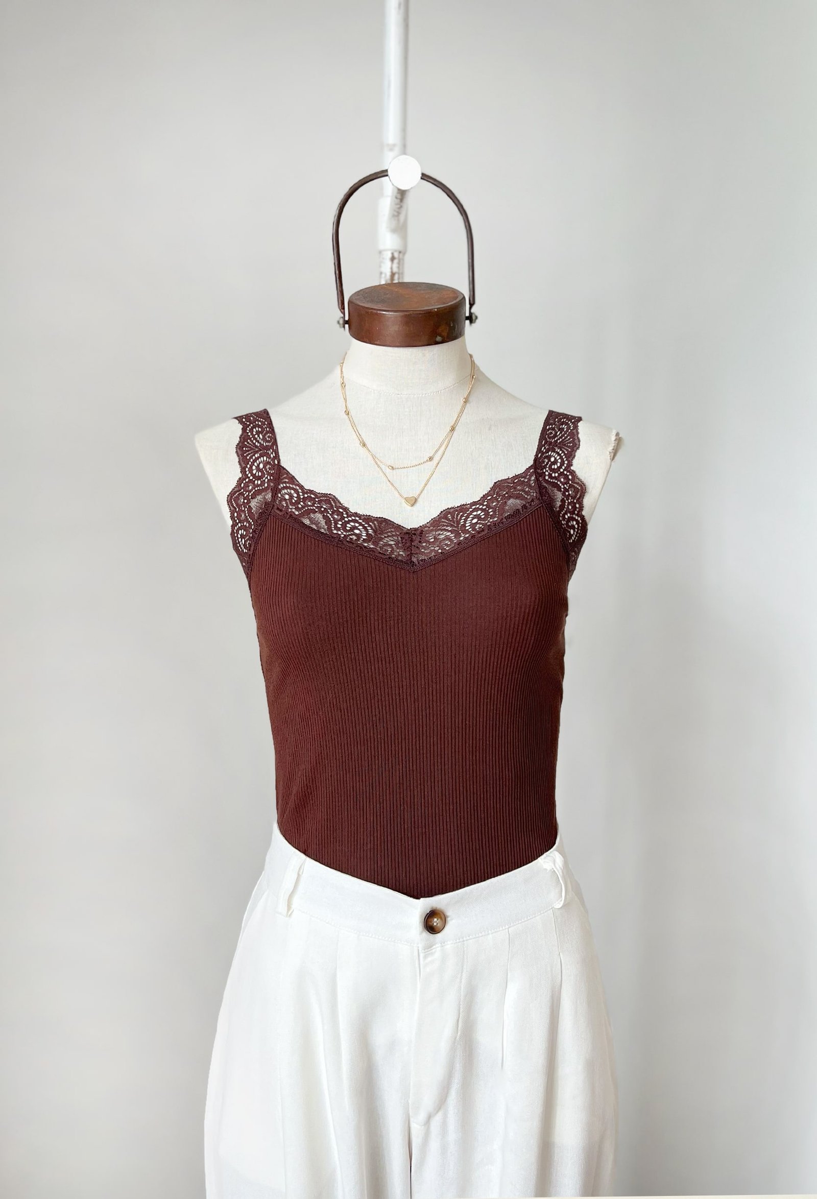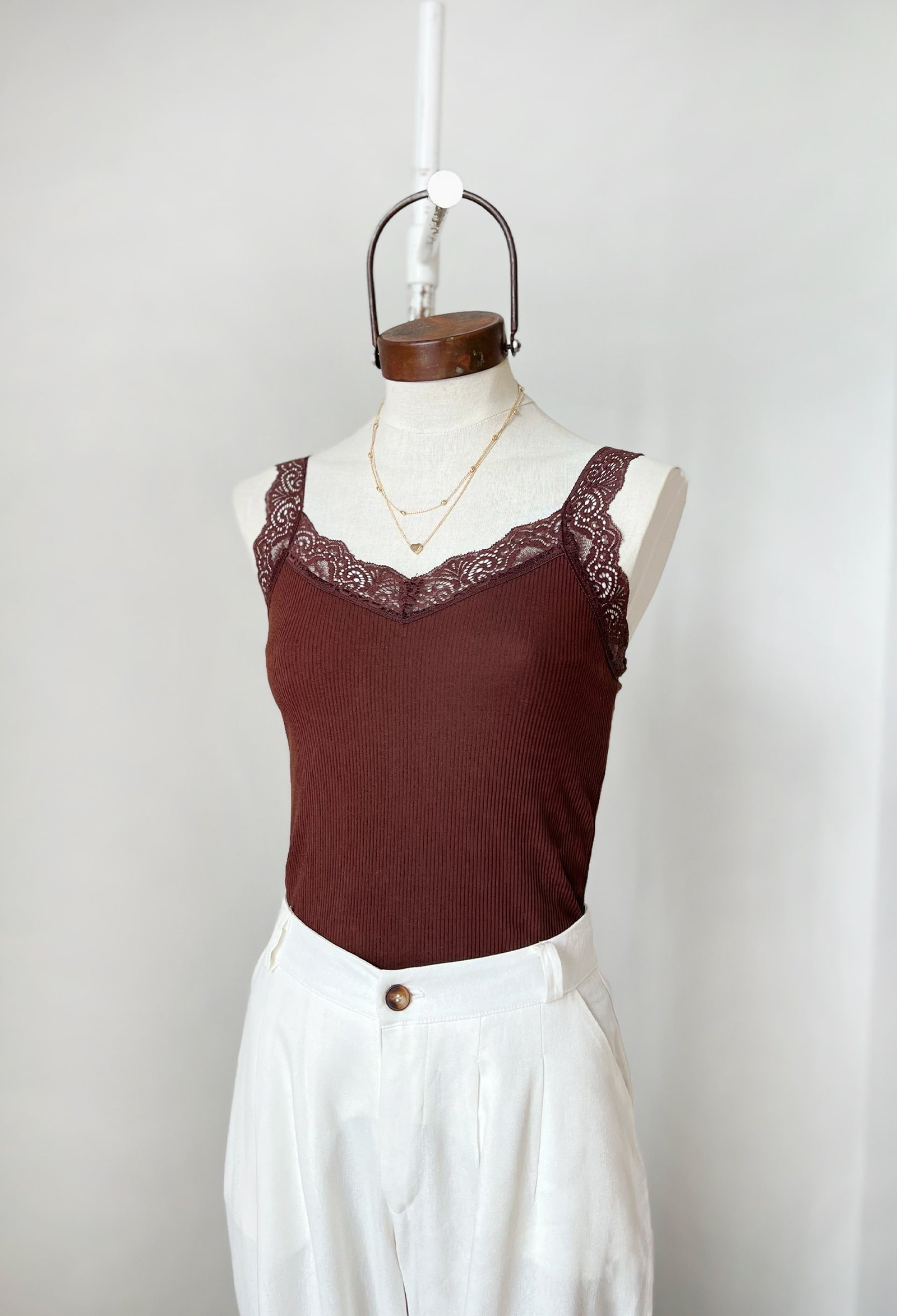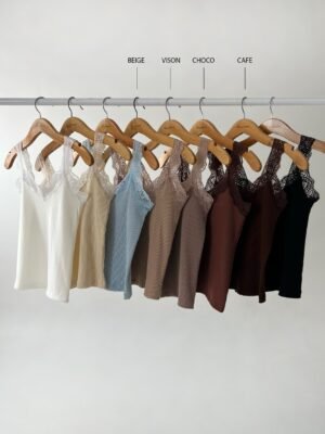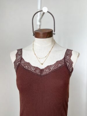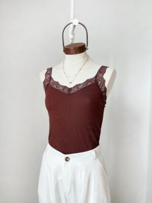 MUSCULOSA DE RIB ALGODON CON PUNTILLA EN ESCOTE V Y SISA