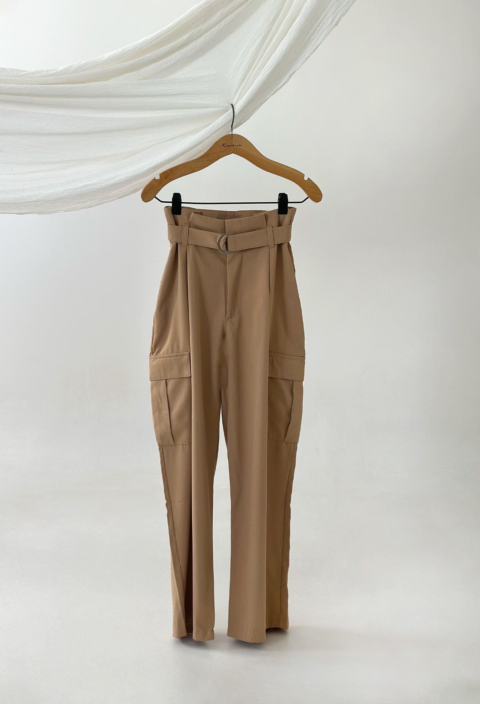 PANTALON DE SARGA SASTRERA Y SIMIL GAMUZADO CON BOLSILLOS Y CINTURON