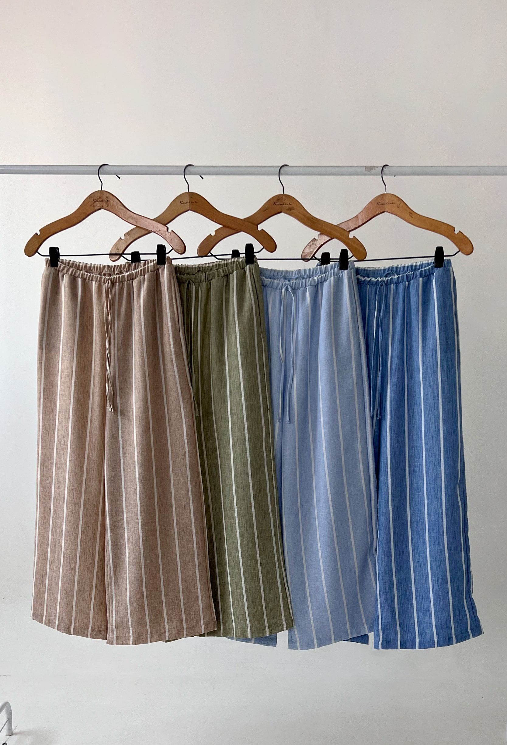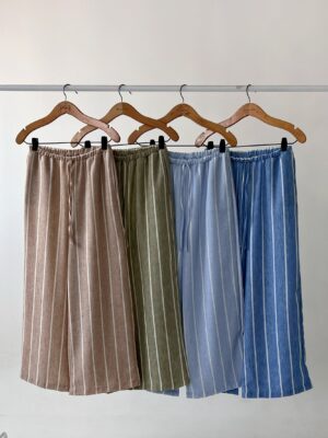 PANTALON SIMIL LINO RAYADO CON ELASTICO EN CINTURA Y LAZO ANUDABLE