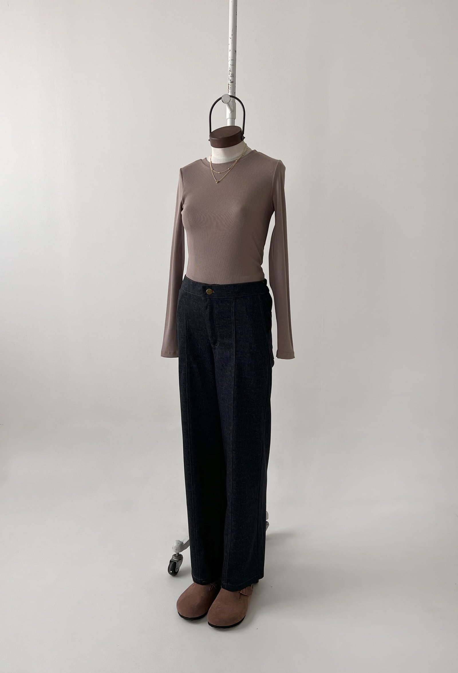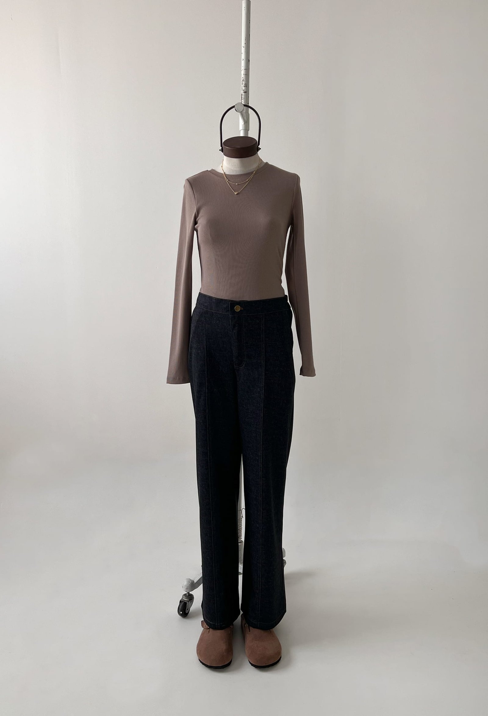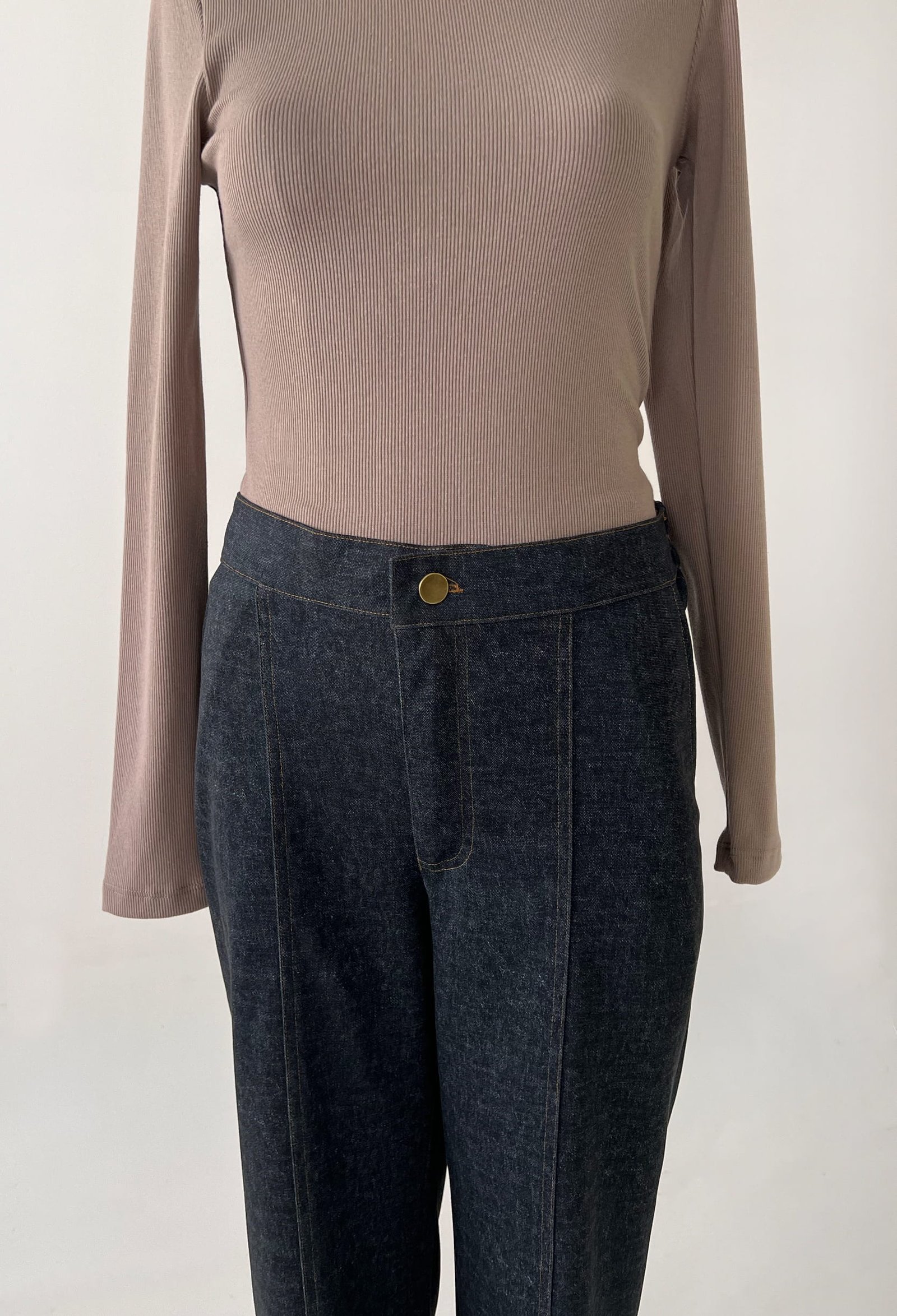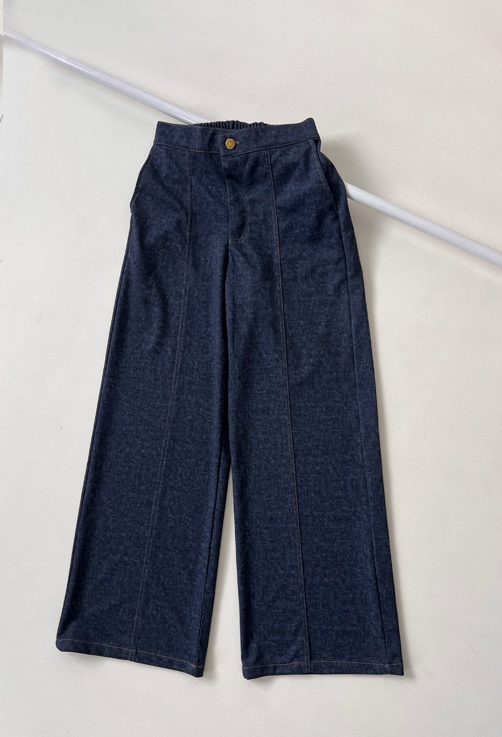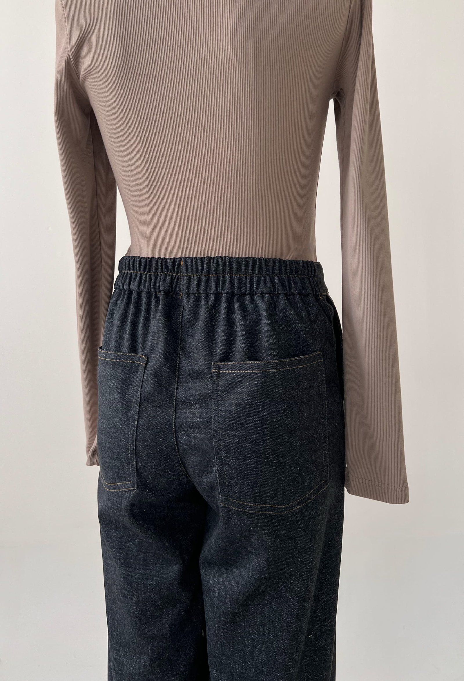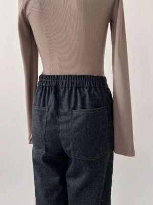 PANTALON DENIM CON ELASTICO EN CINTURA Y DETALLES DE COSTURA