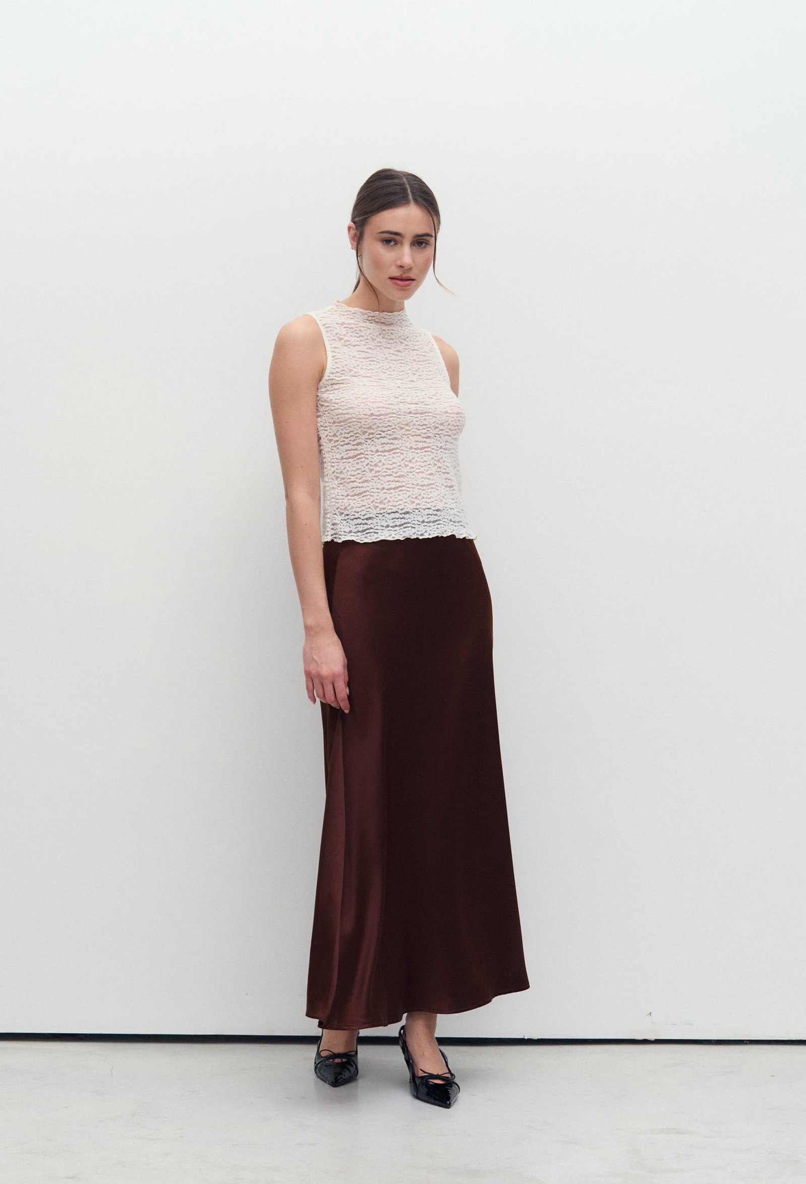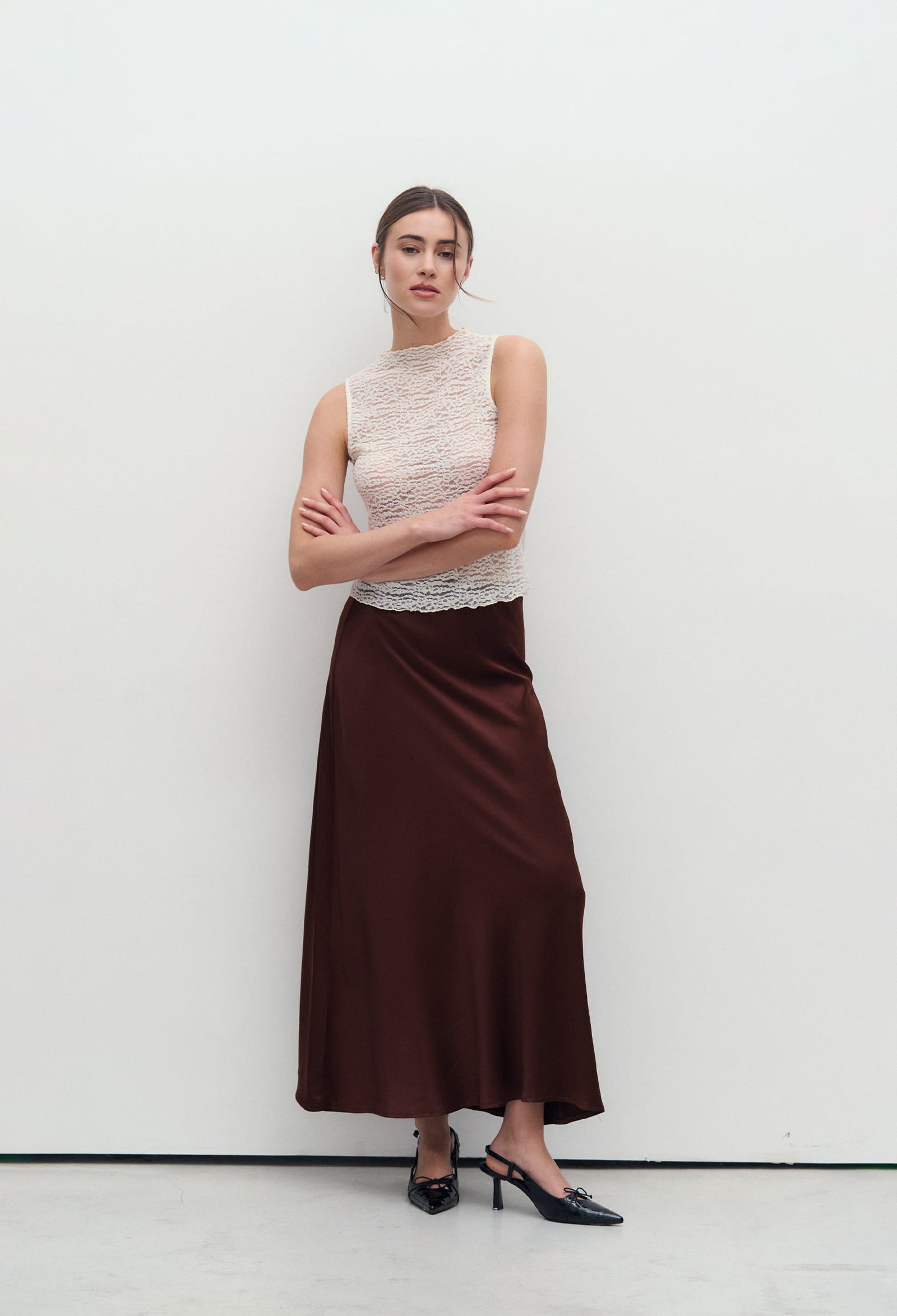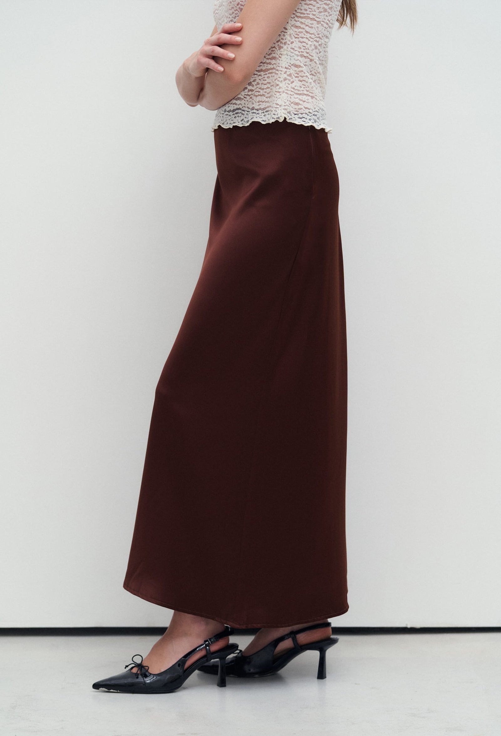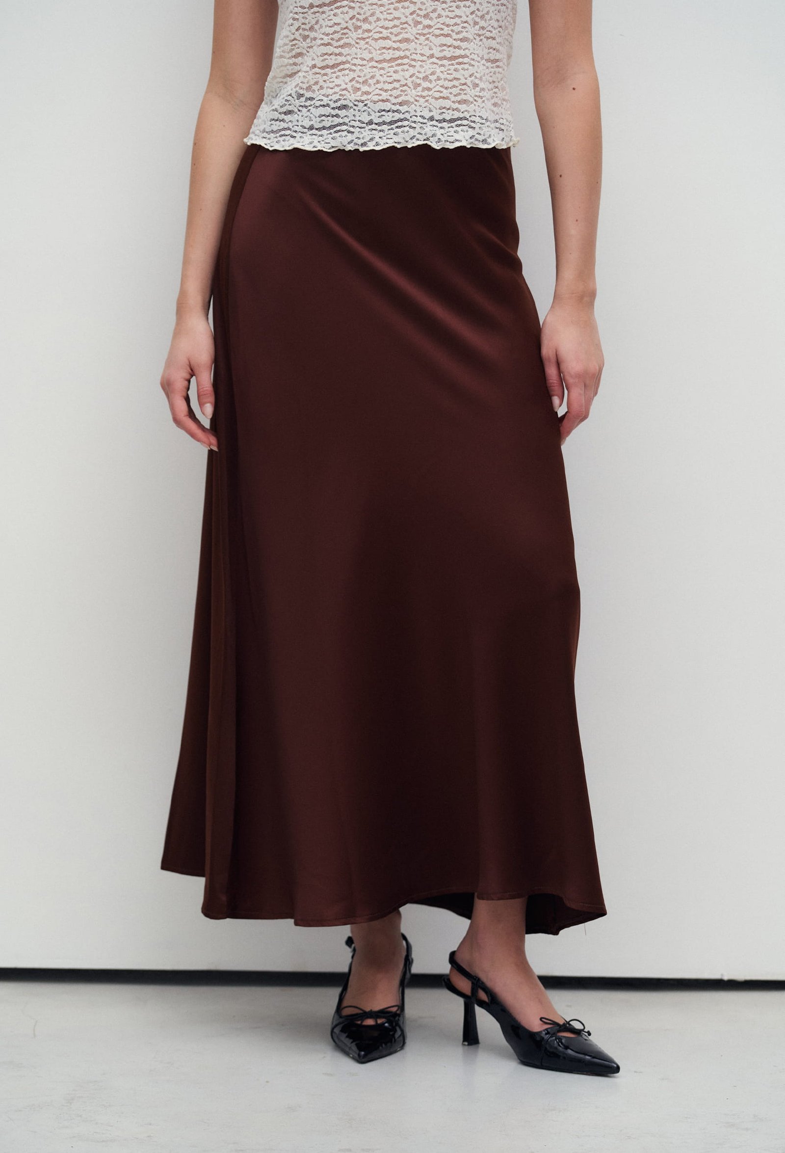 POLLERA LARGA DE SEDA AL BIES CON ELASTICO EN LA CINTURA Y CIERRE INVISIBLE EN EL COSTADO