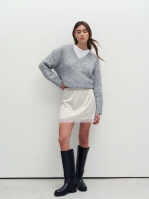 POLLERA DE SATEN CON ELASTICO EN CINTURA Y TERMINACIÓN CON PUNTILLA