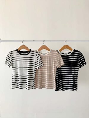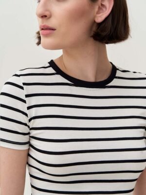 REMERA DE ALGODON VISCOSA RAYADA CON CUELLO A CONTRATONO. LAVAR CON AGUA FRIA