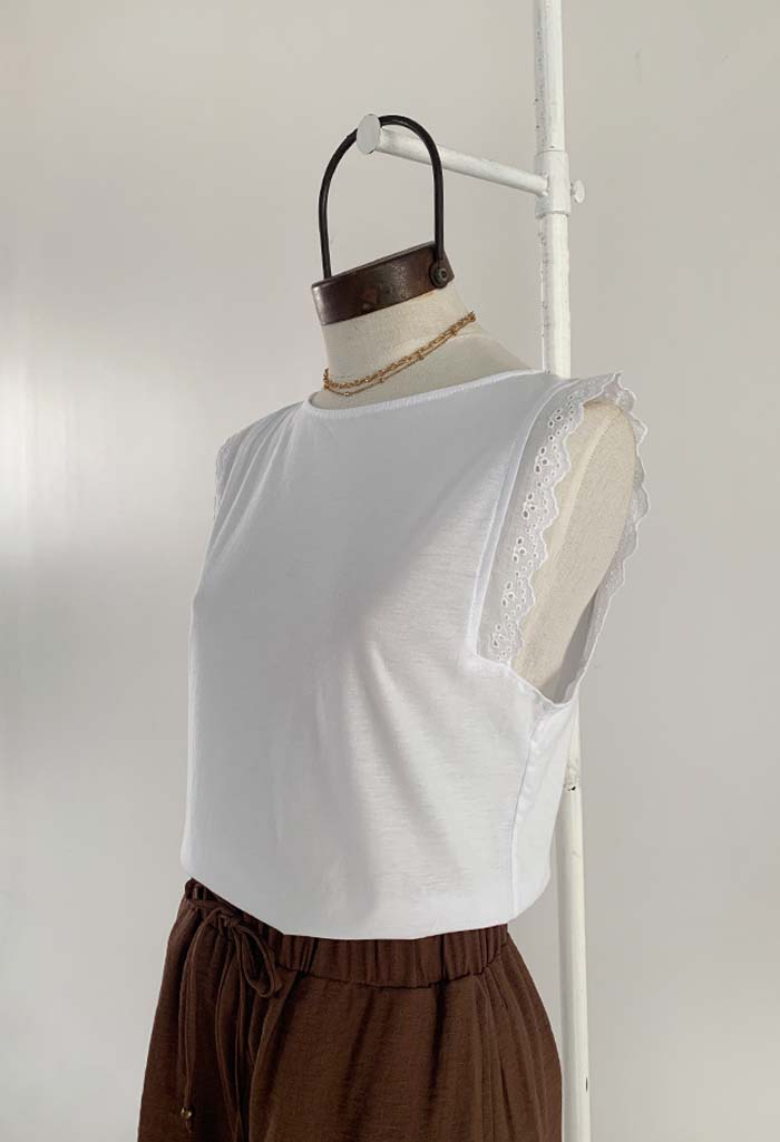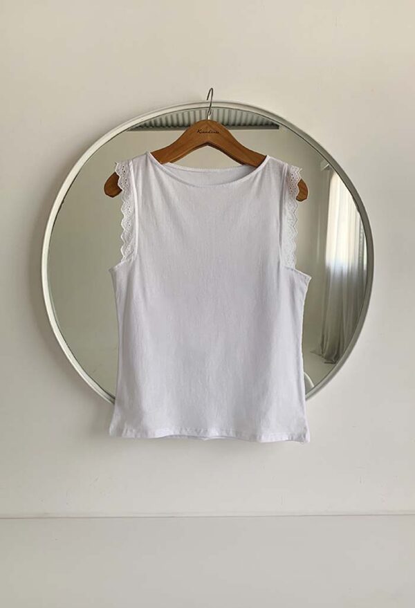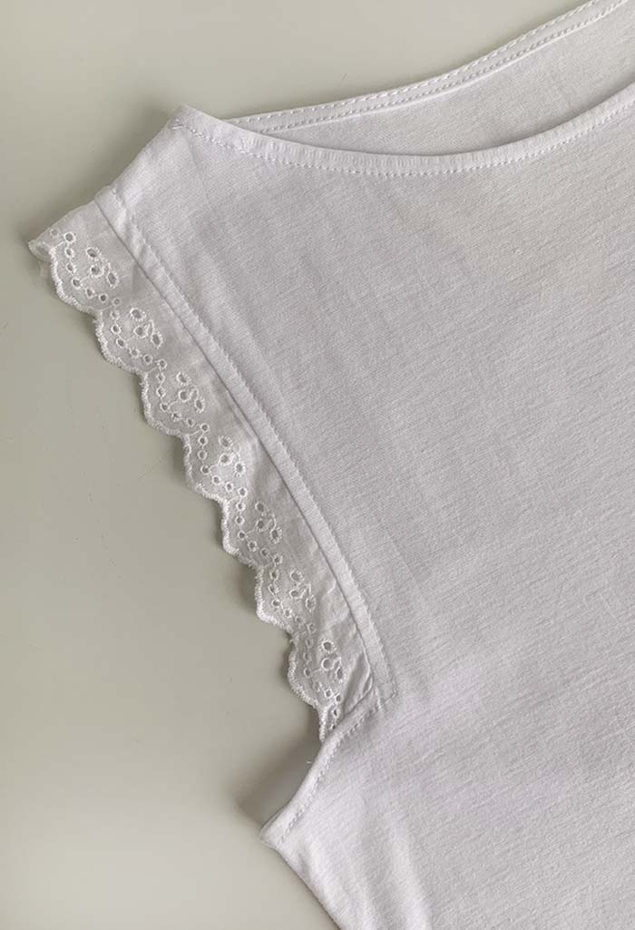 REMERA DE ALGODON CON DETALLE DE PUNTILLA EN LA MANGA