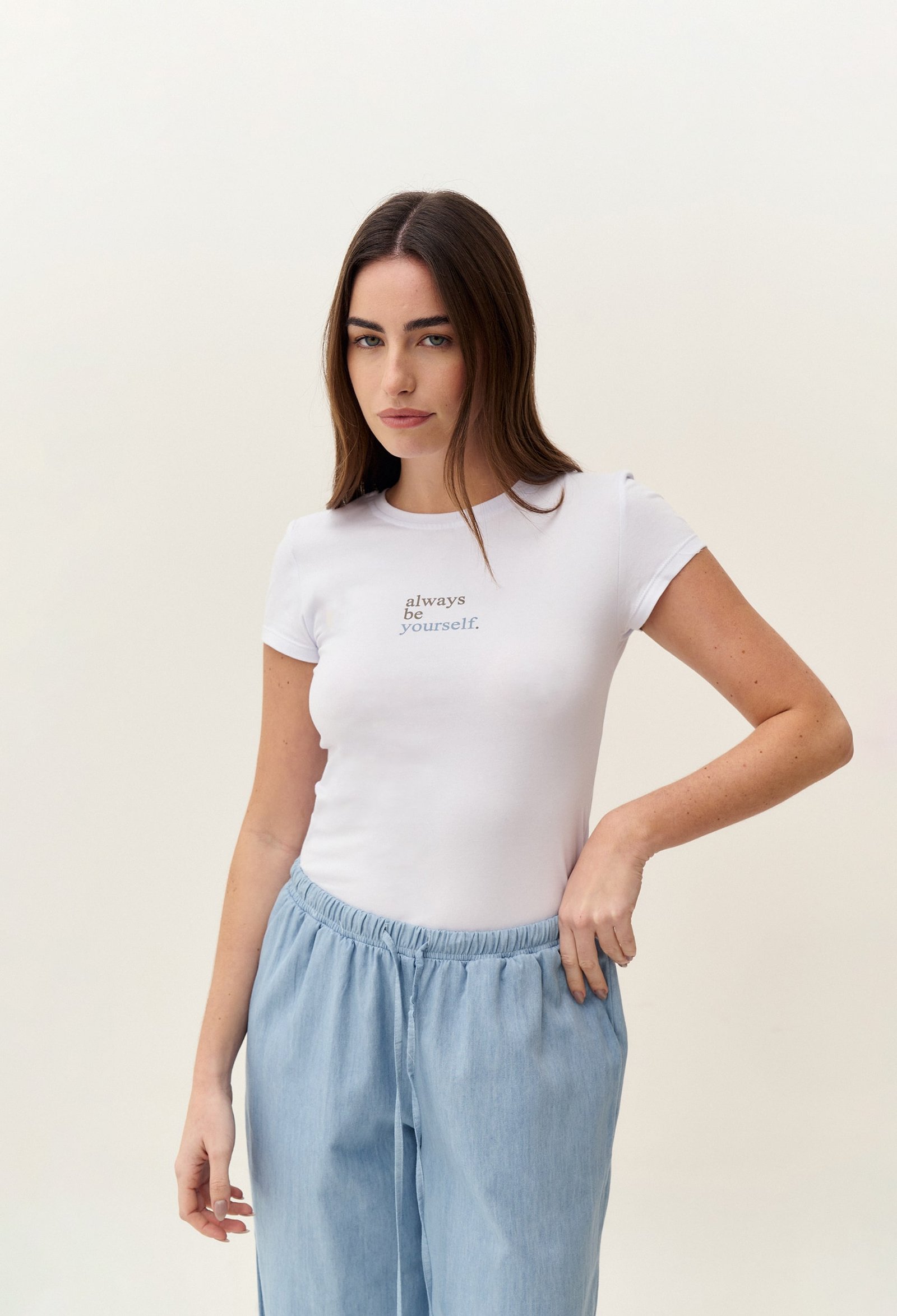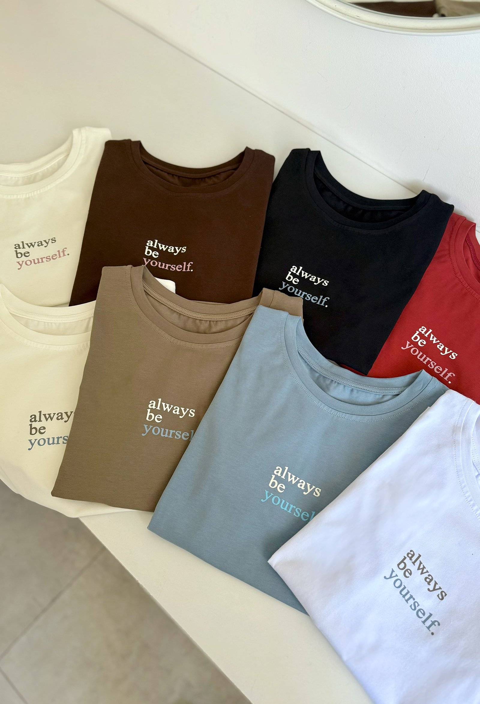 REMERA DE ALGODON 40/1 CON LYCRA, CUELLO REDONDO CON ESTAMPA “ALWAYS BE YOURSELF”