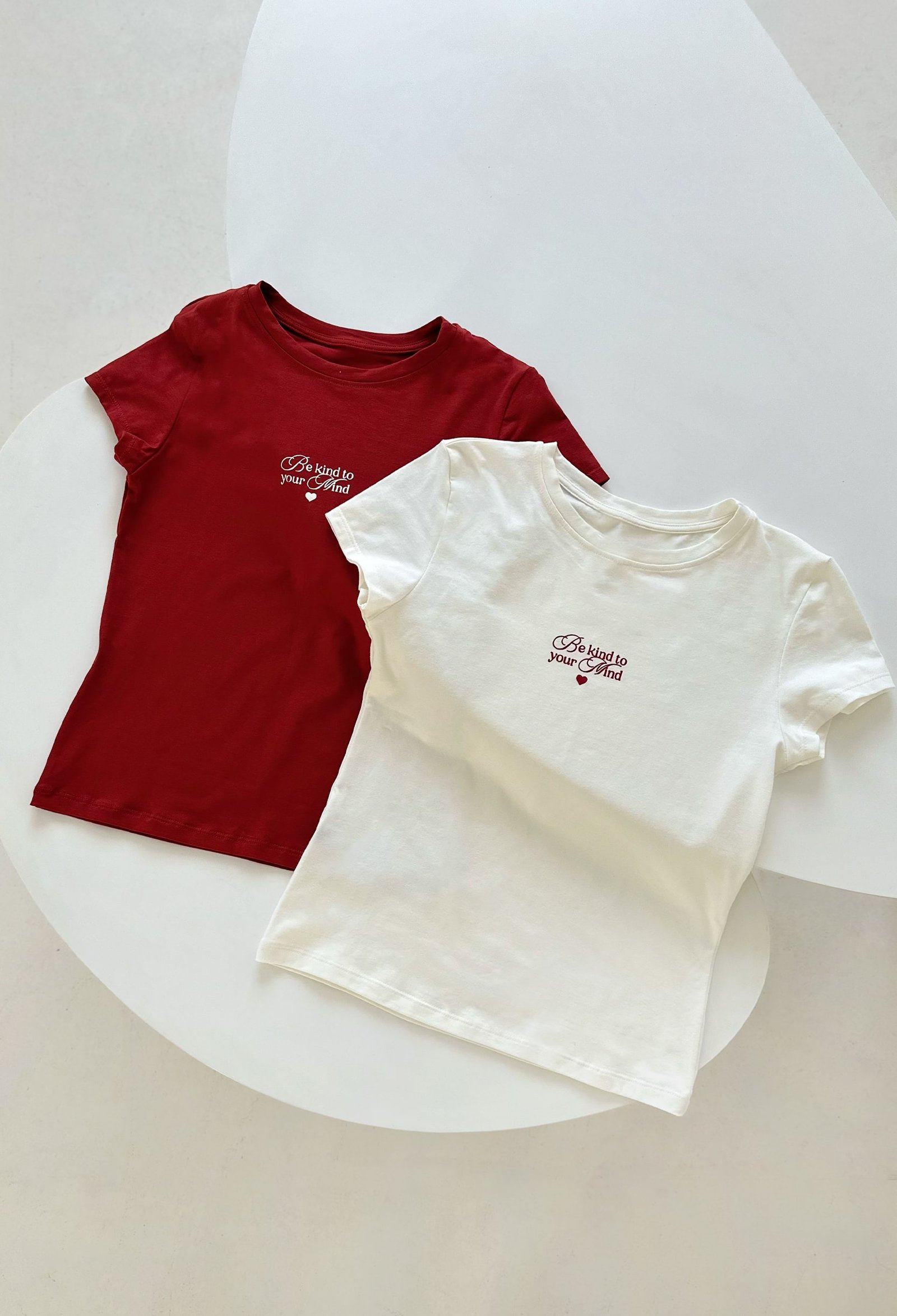 REMERA DE ALGODON 40/1 CON LYCRA, CUELLO REDONDO CON ESTAMPA ” BE KIND TO YOUR MIND”