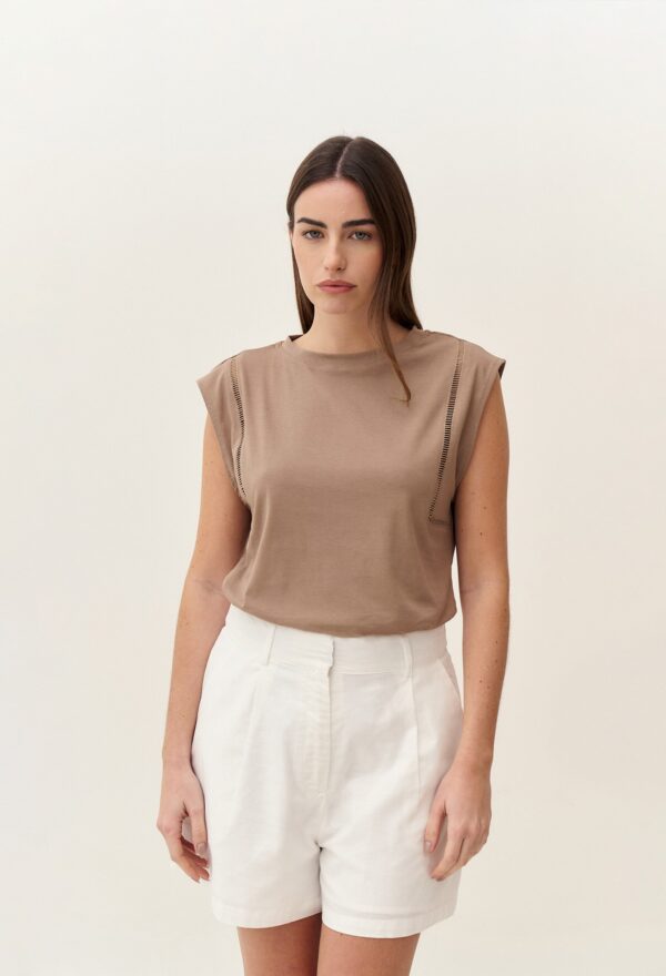 REMERA JERSEY DE ALGODON 30/1 CON DETALLE DE PUNTILLA VAINILLA EN SISA