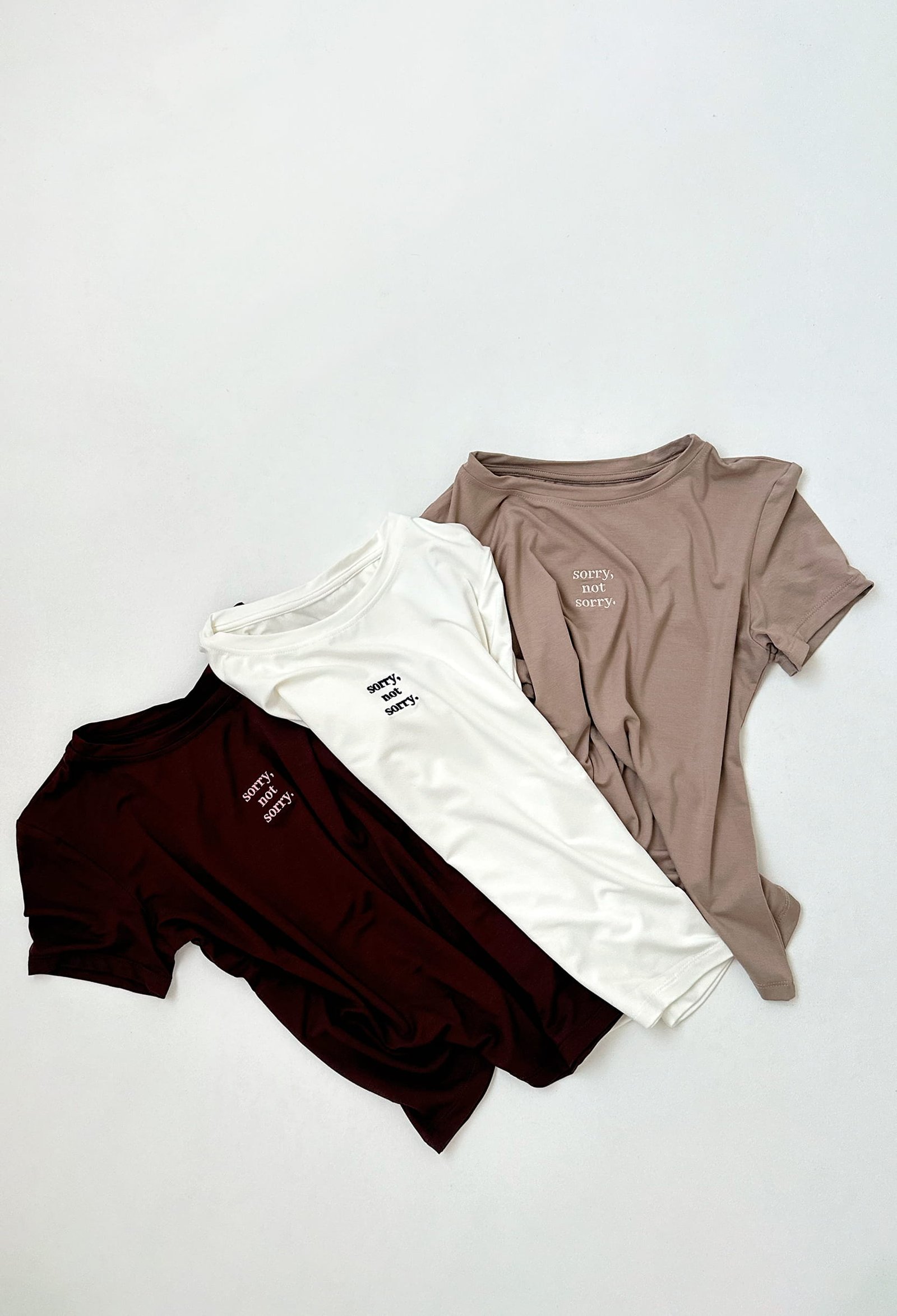 REMERA DE ALGODON VISCOSA PREMIUM CON BORDADO “SORRY NOT SORRY”