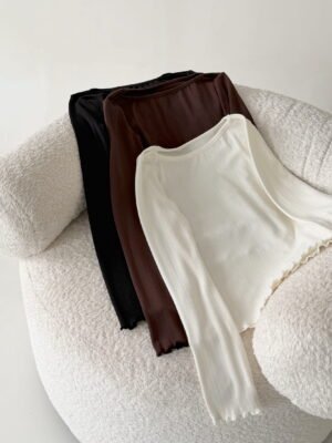 REMERA DE LANILLA CUELLO BOTE Y TERMINACION ROULETTE