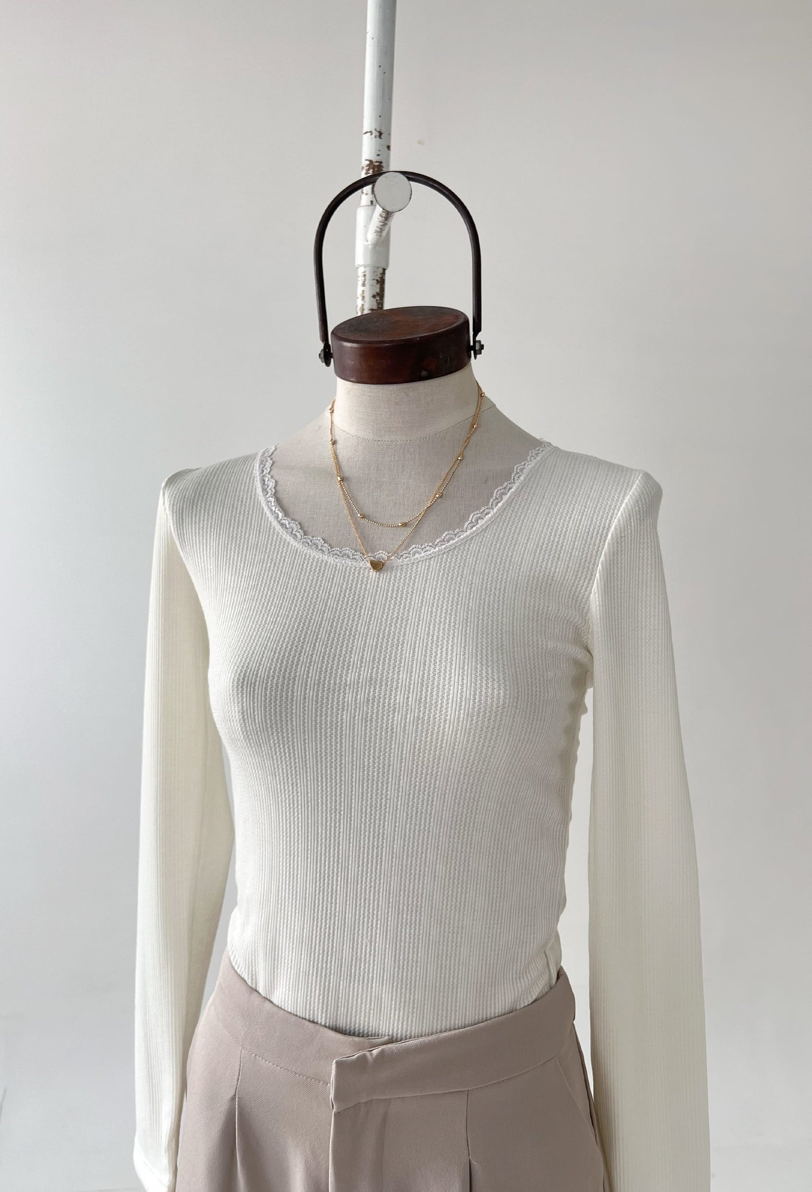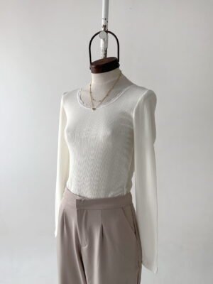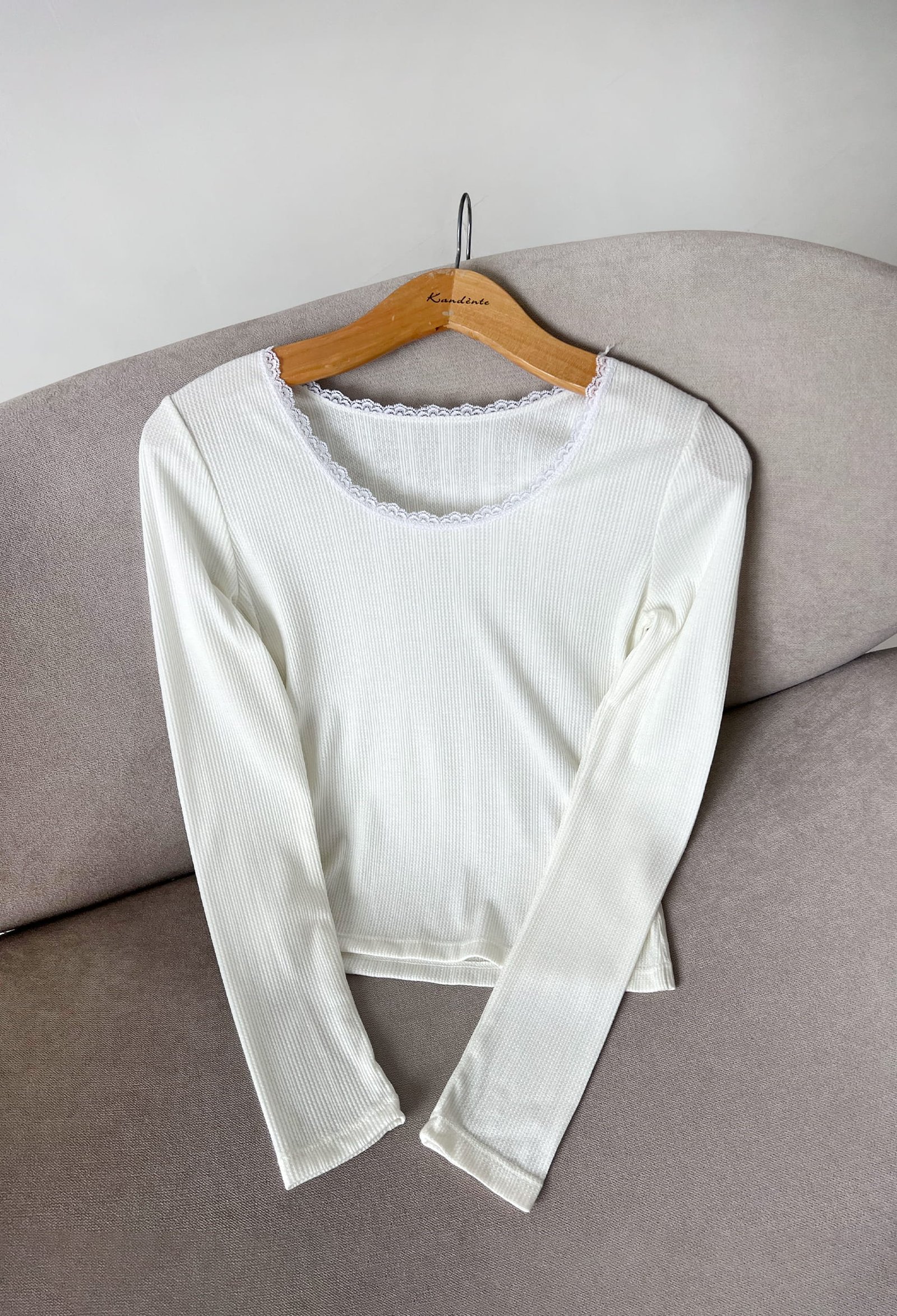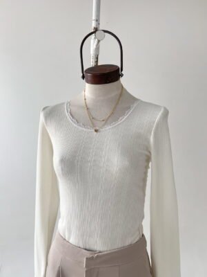 REMERA DE TEJIDO DE PUNTO CON ESCOTE REDONDO CON DETALLE DE PUNTILLA