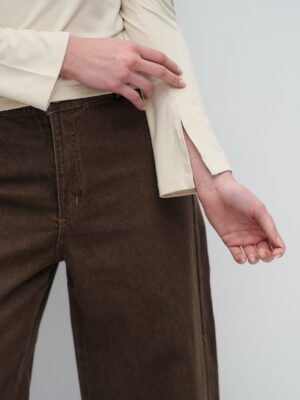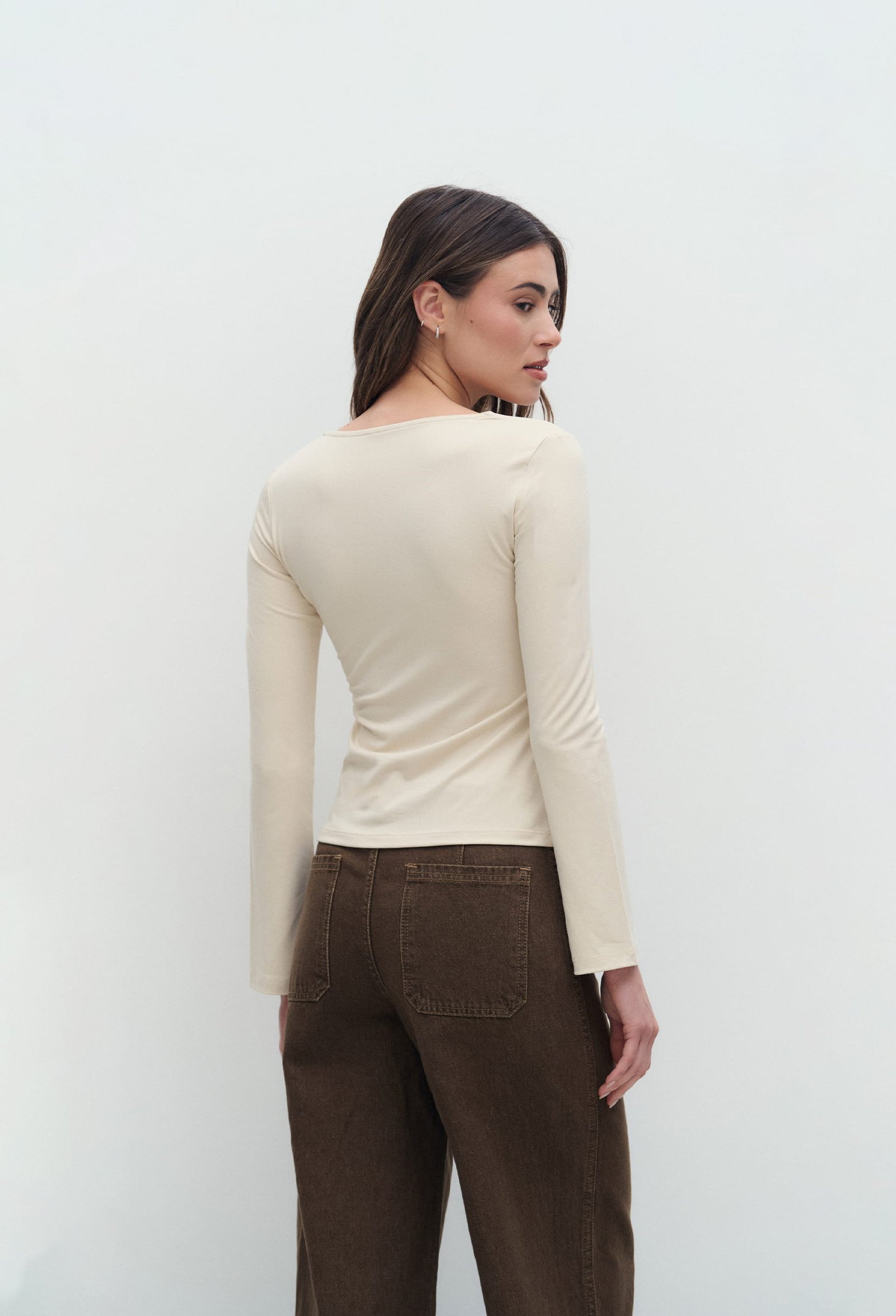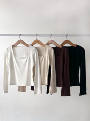 REMERA MANGA LARGA DE ALGODON VISCOSA PREMIUM BRASILEÑO CON CUELLO ESPEJO EMBOLSADO Y TAJO EN LA MANGA