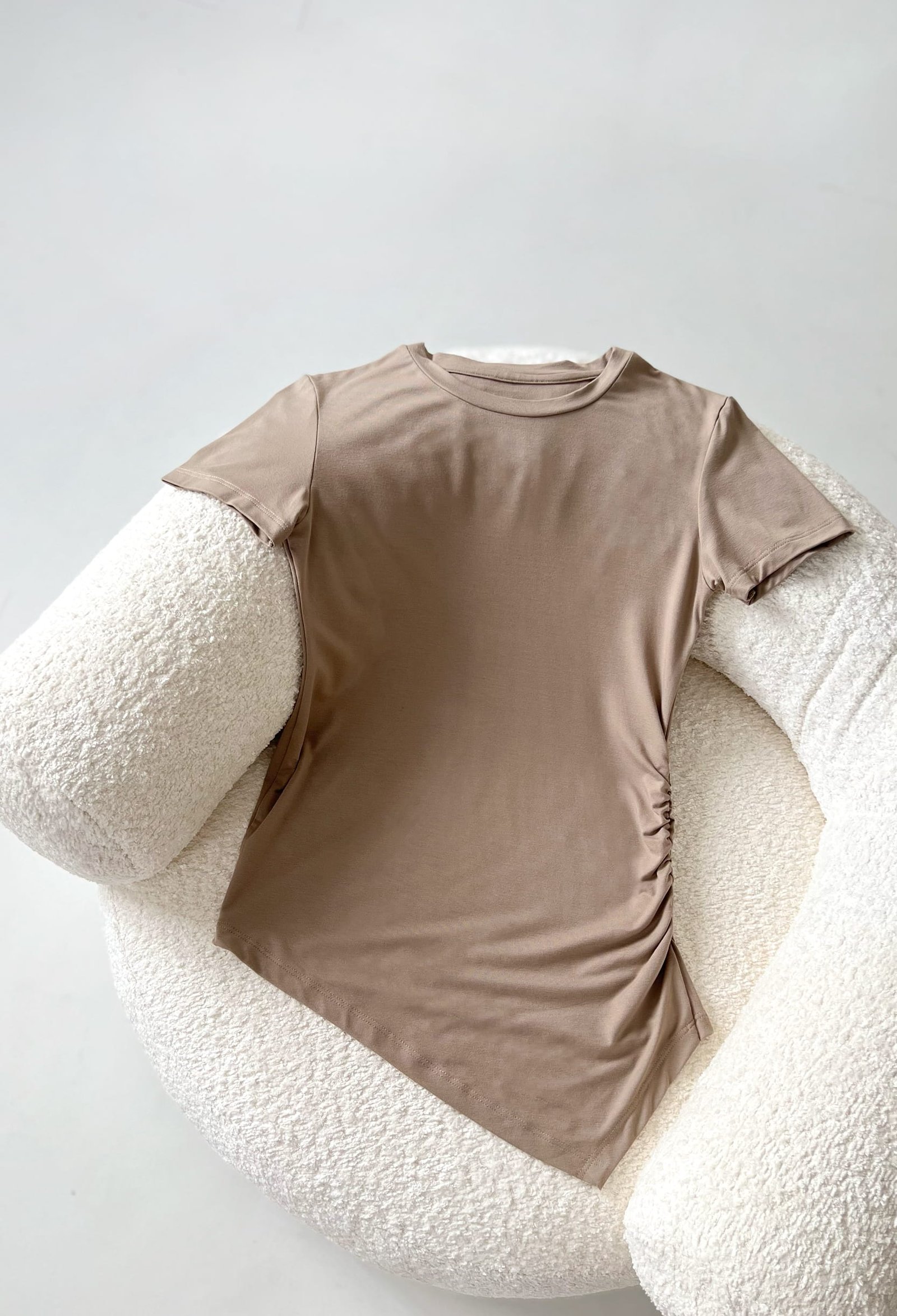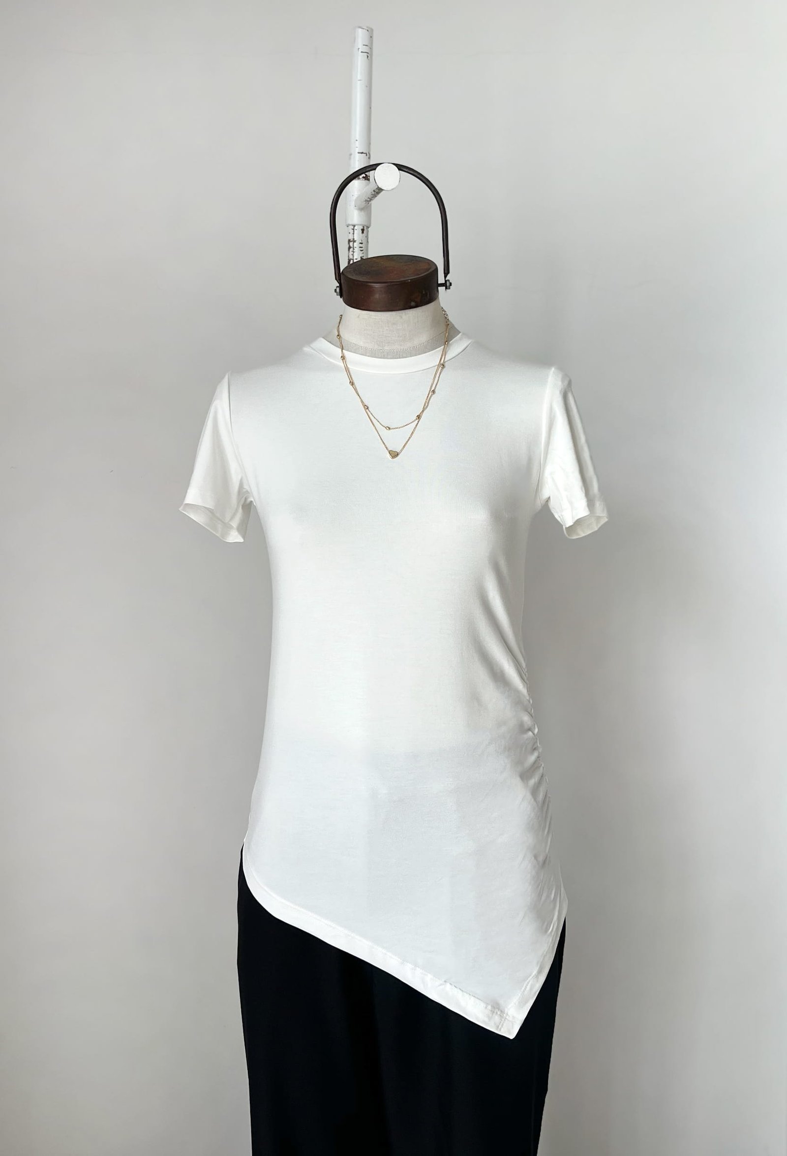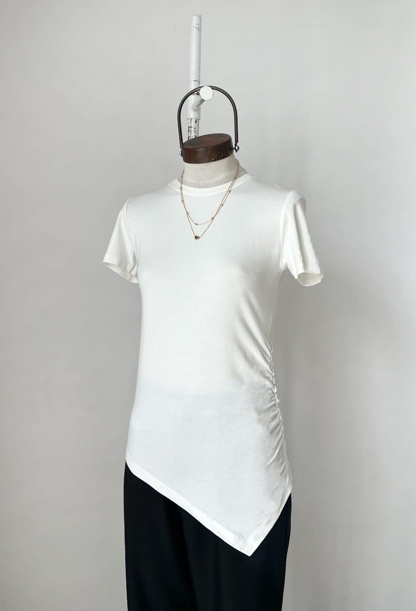 REMERA DE VISCOSA PREMIUM DE BRASIL CON TERMINACION ASIMETRICA Y FRUNCE LATERAL