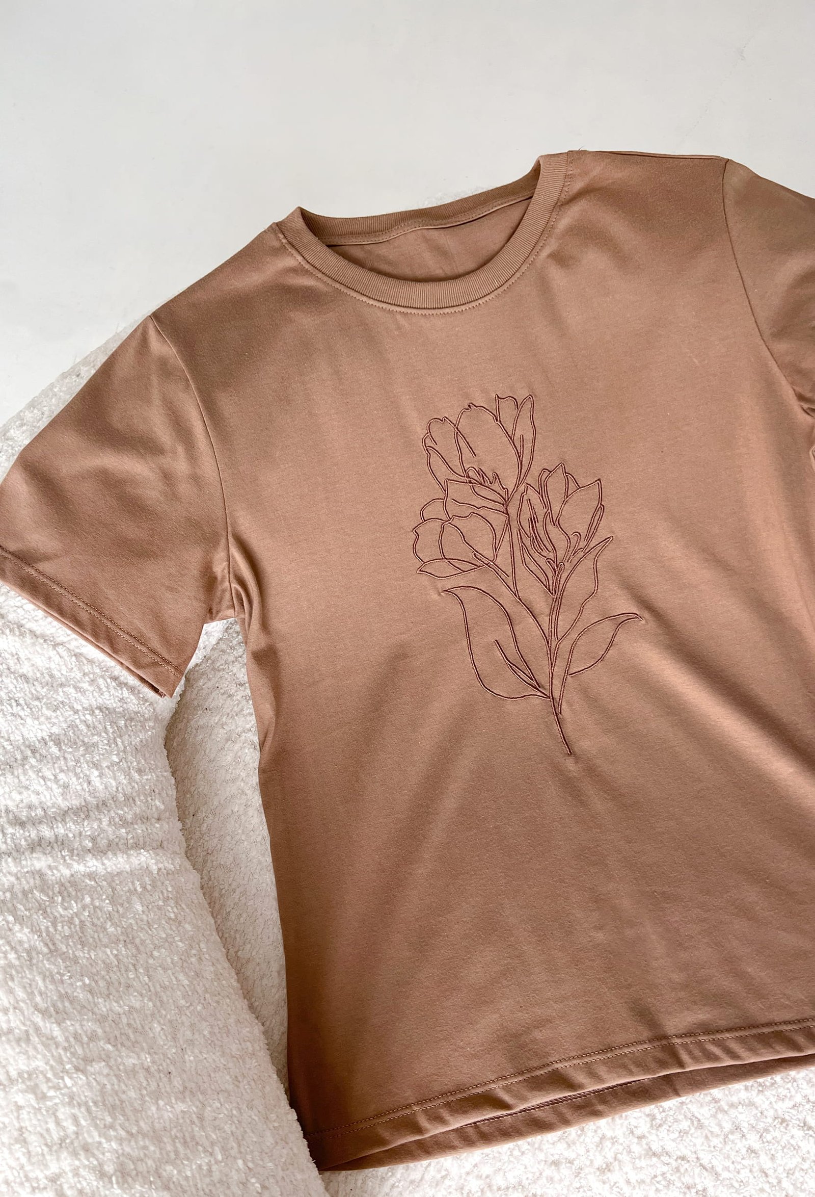 REMERA DE JERSEY ALGODON 30/1 CON BORDADO DE FLOR
