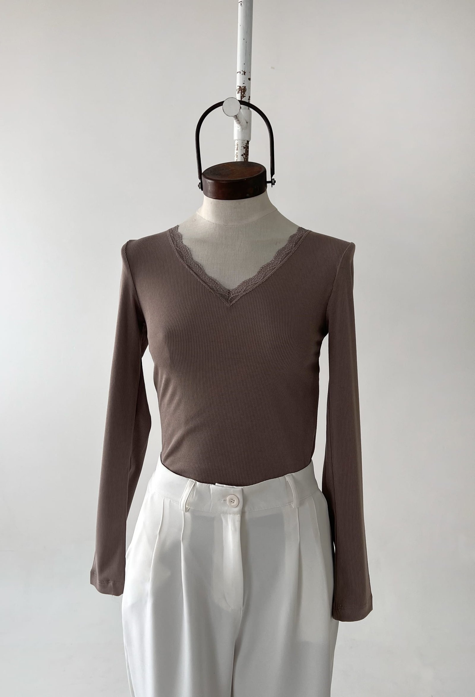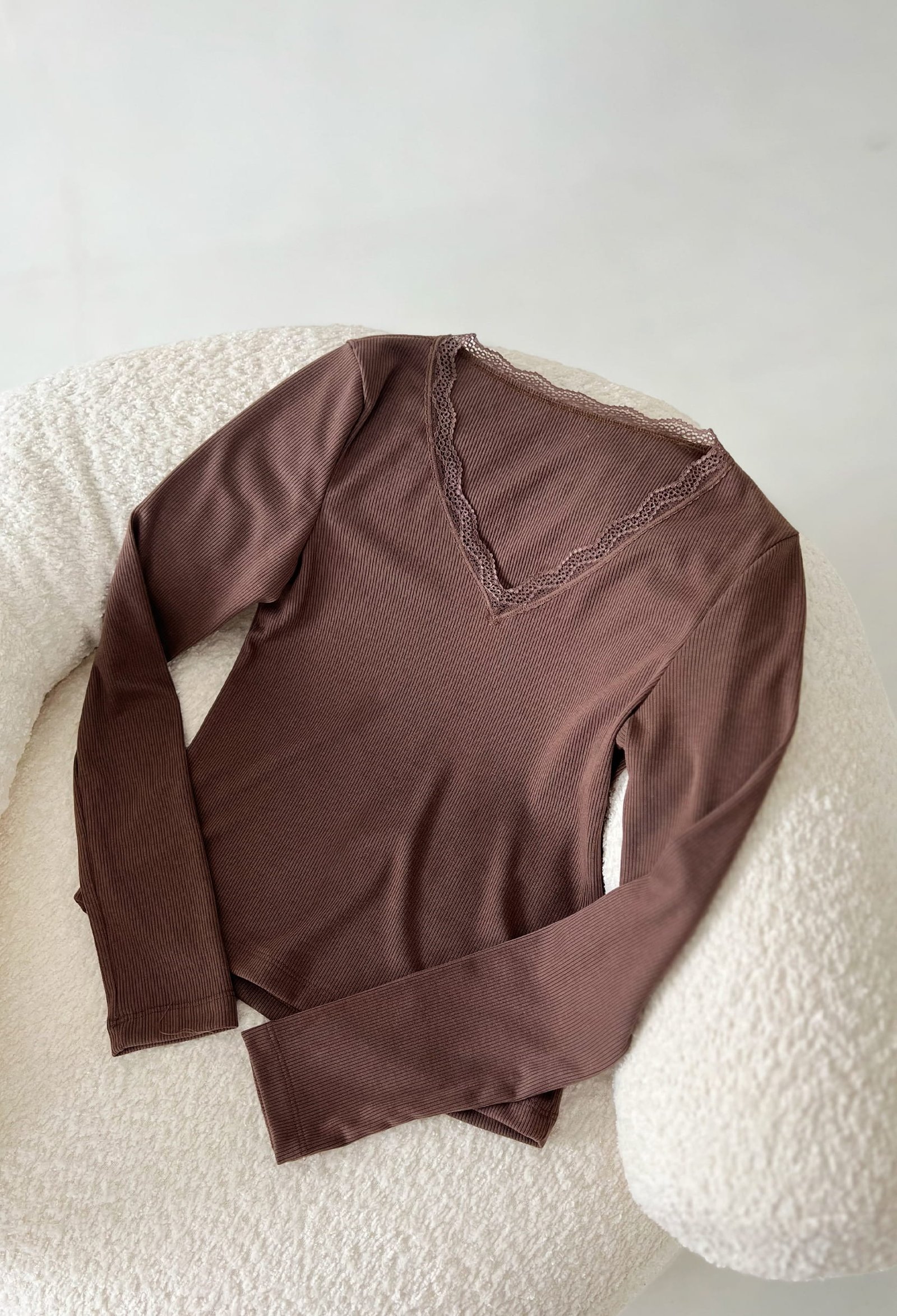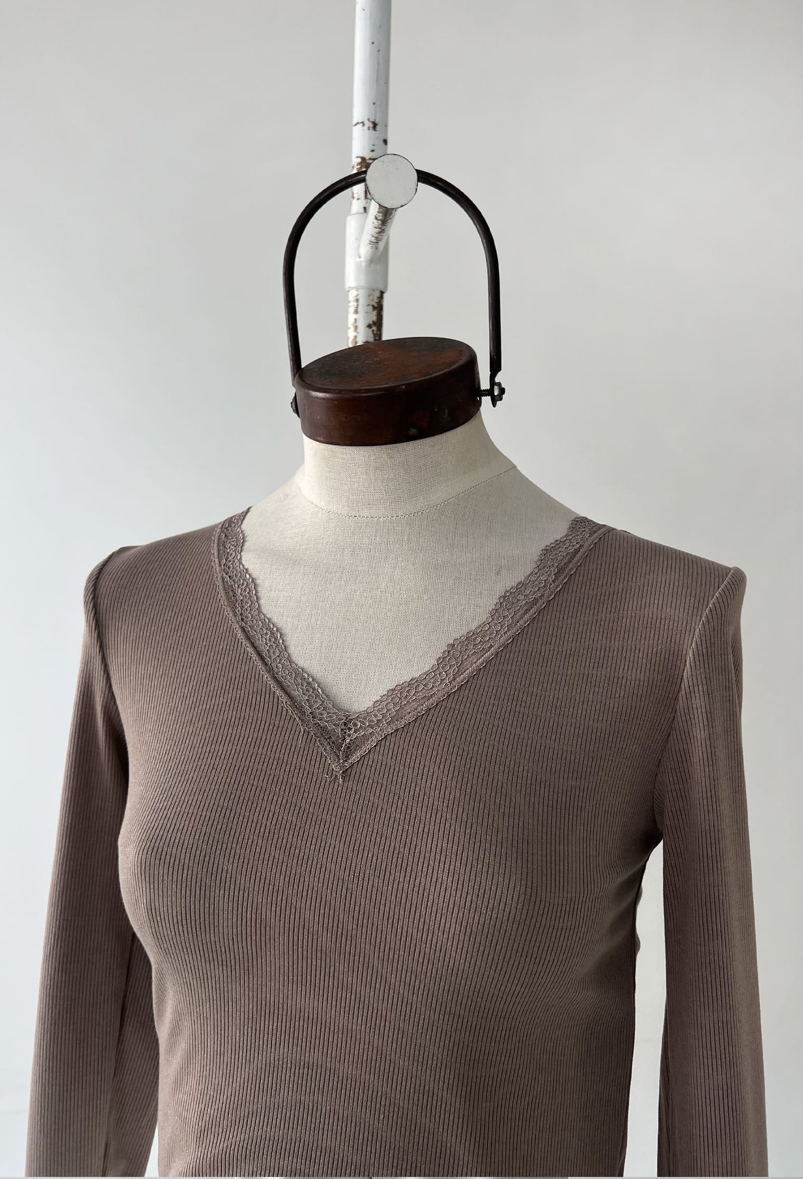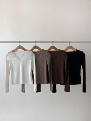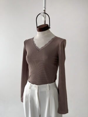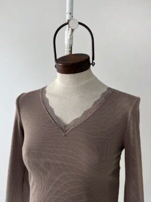 REMERA DE MORLEY CON ESCOTE EN V Y DETALLE DE PUNTILLA