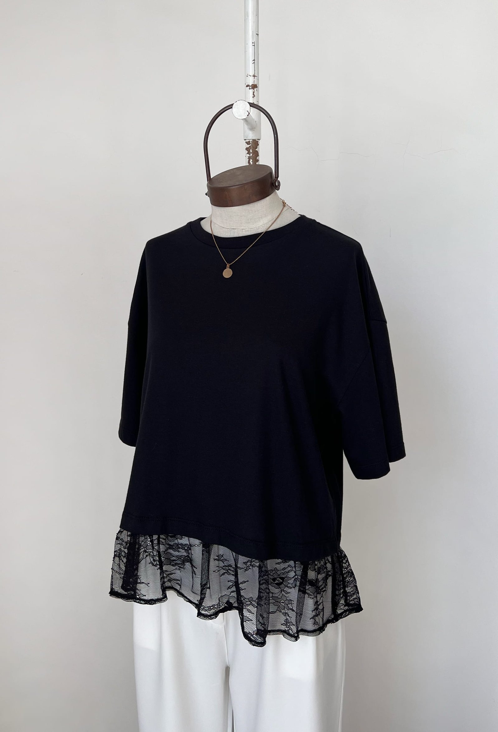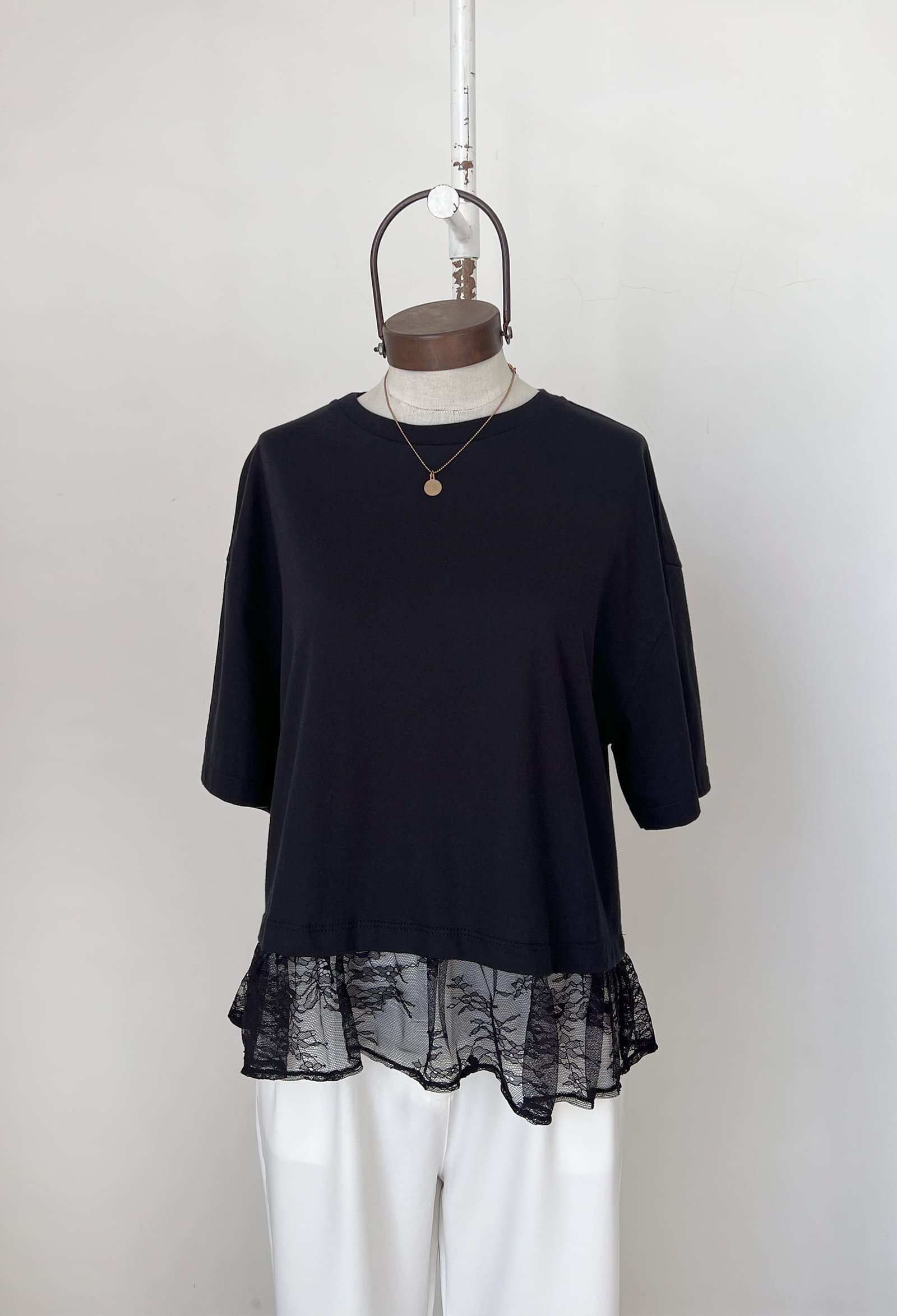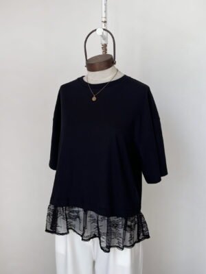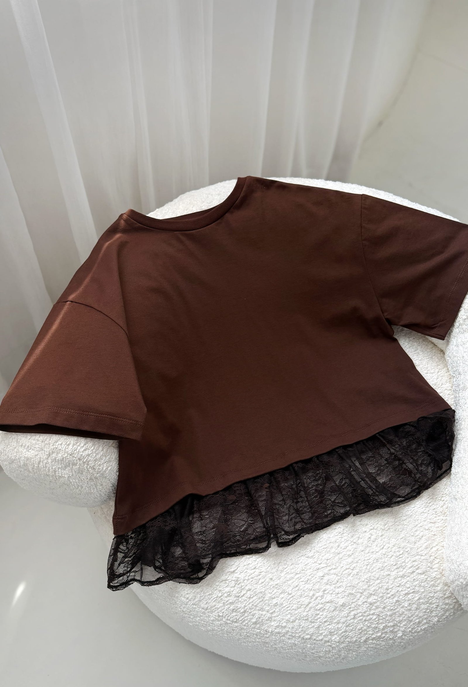 REMERA DE ALGODON 30/1 PREMIUM BRASILEÑO CON COMPLEMENTO EN EL CUELLO Y VOLADOS DE ENCAJE