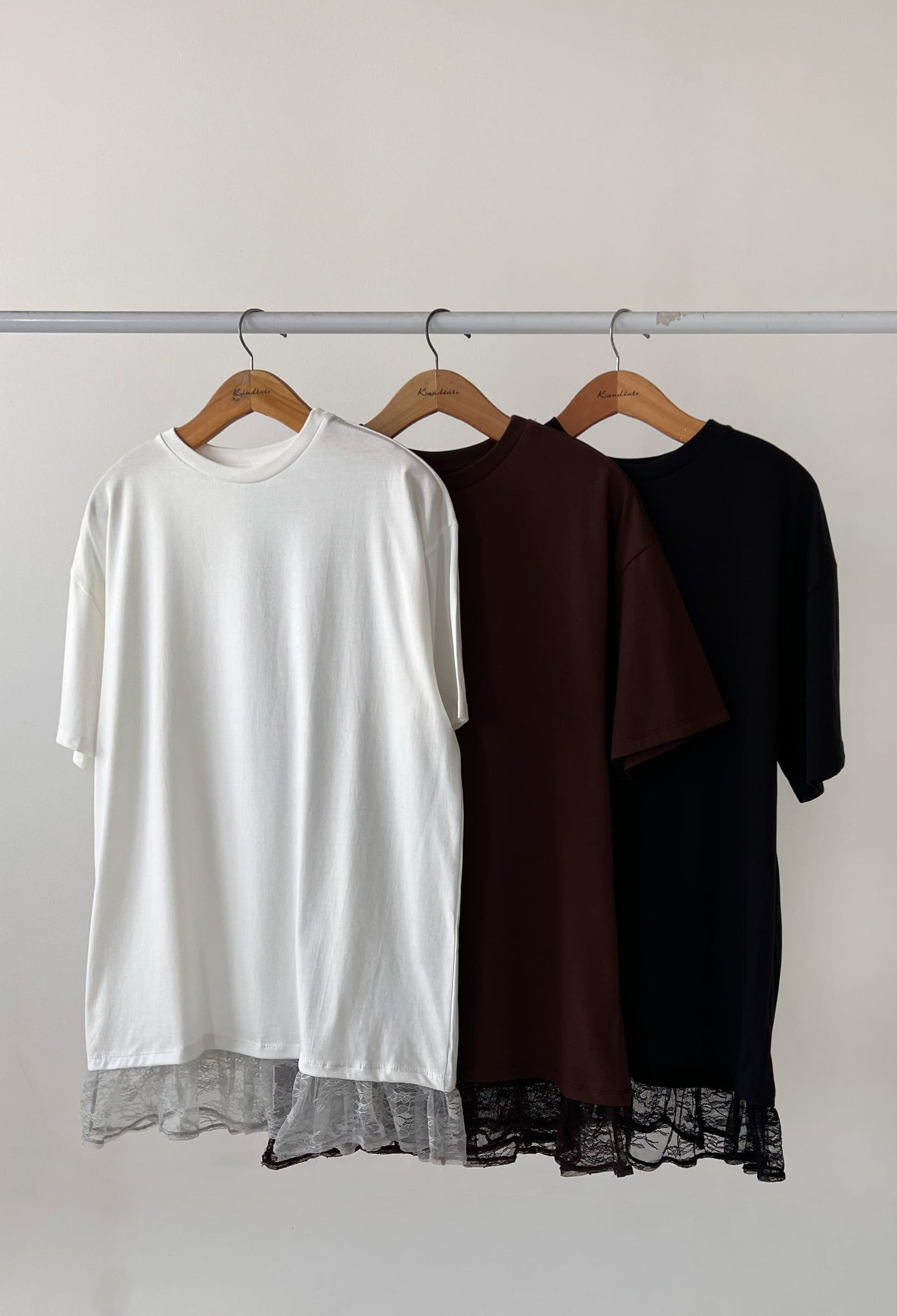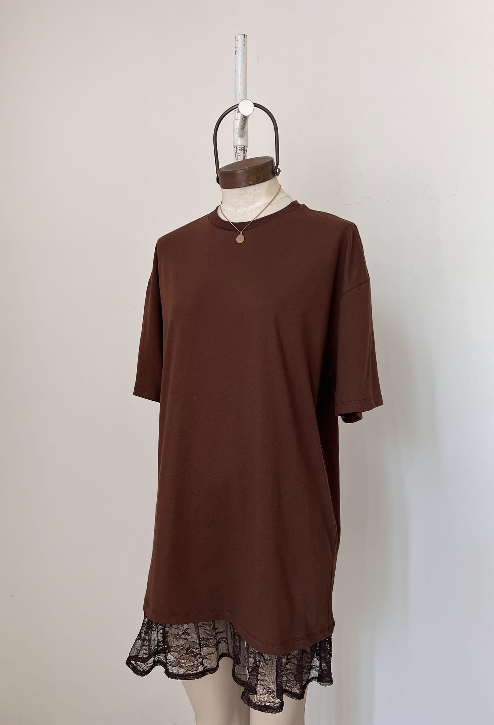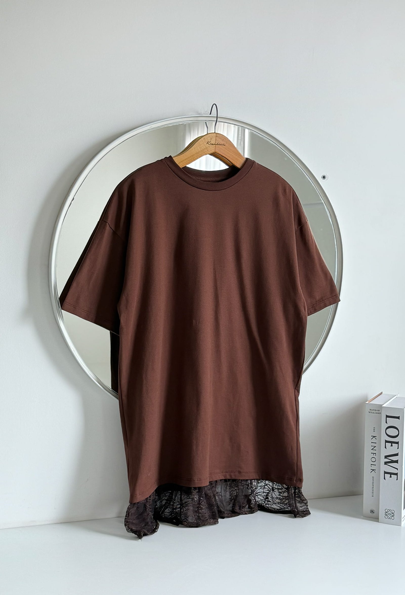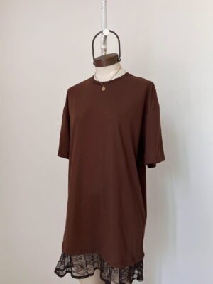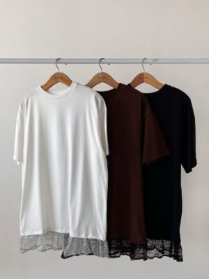 REMERA OVERSIZED DE ALGODON 30/1 PREMIUM BRASILEÑO CON COMPLEMENTO EN EL CUELLO Y VOLADOS DE ENCAJE