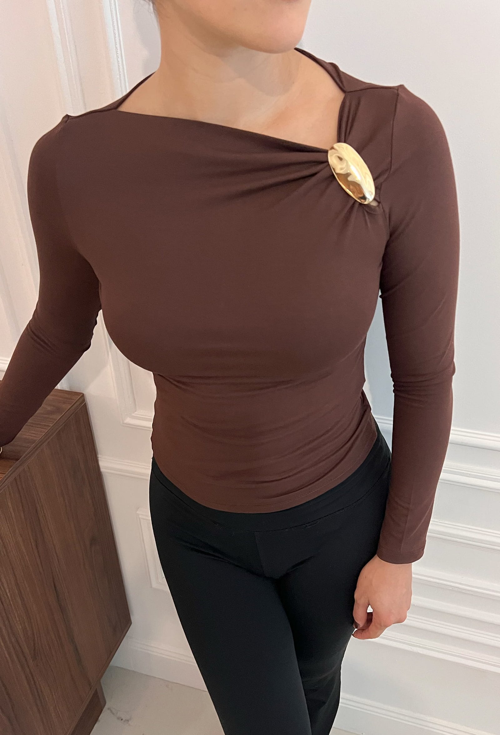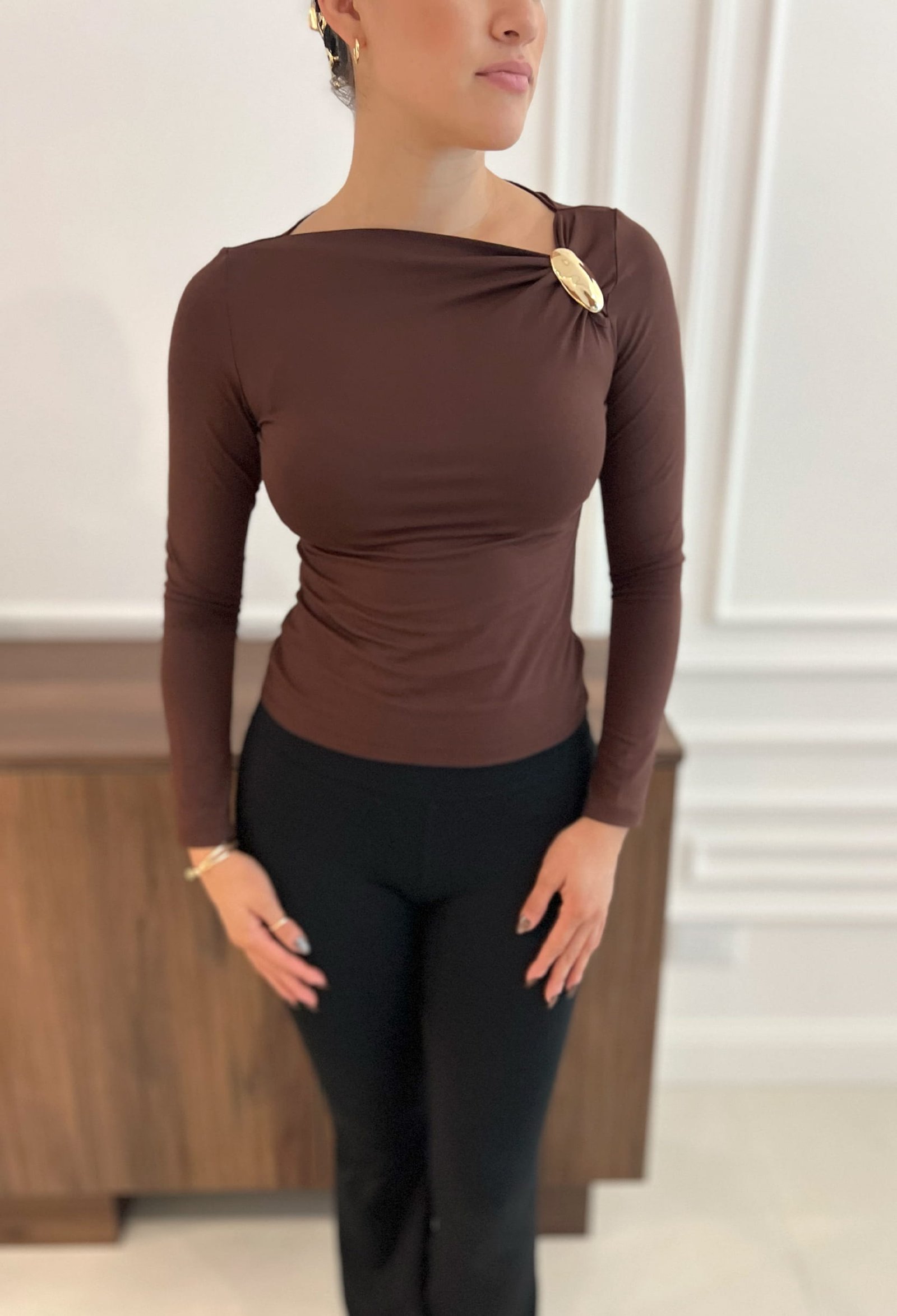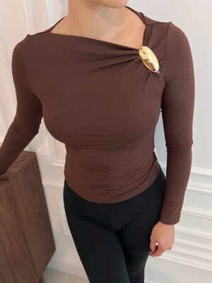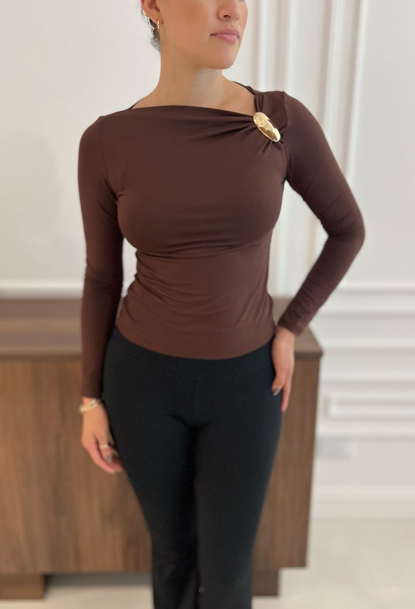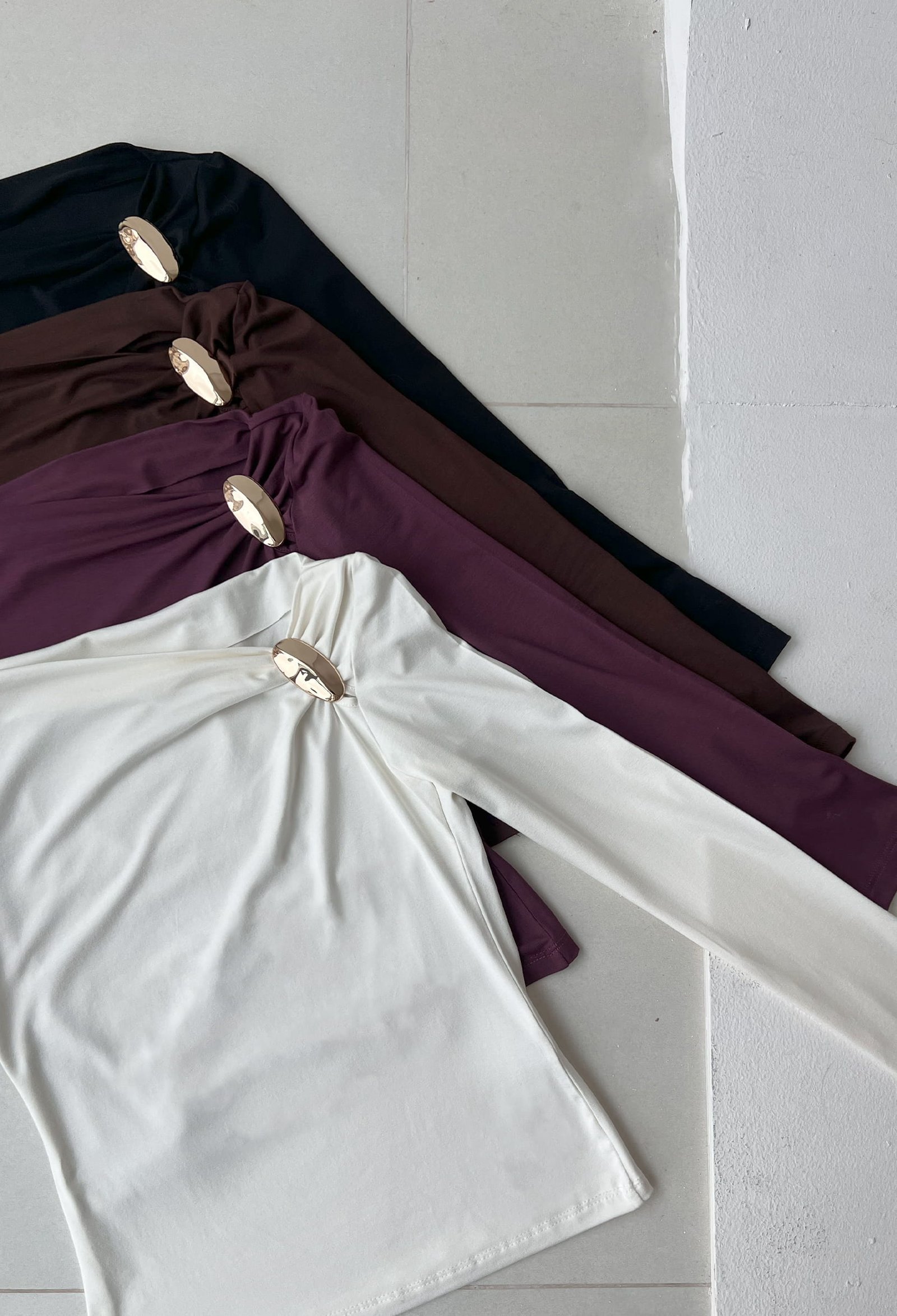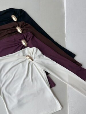 REMERA MANGA LARGA DE ALGODON VISCOSA PREMIUM, FRUNCE EN HOMBRO CON AVIO