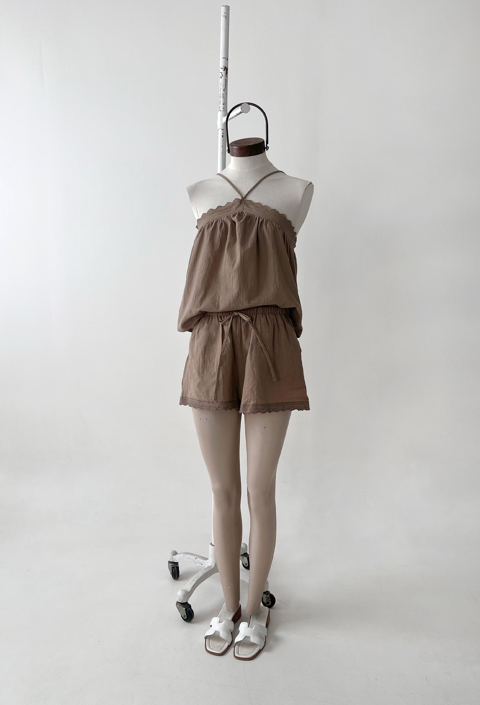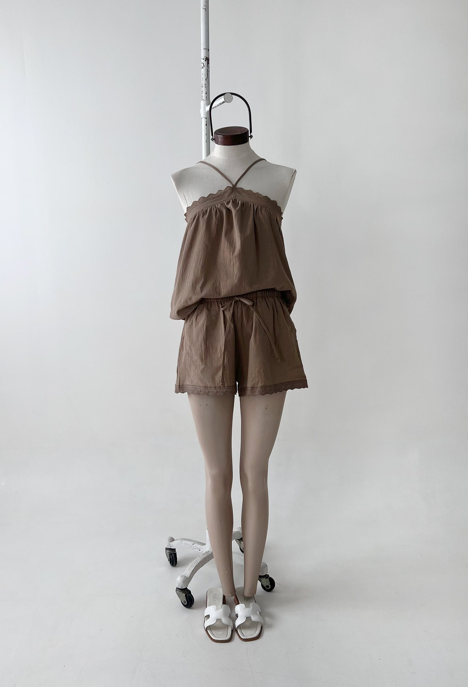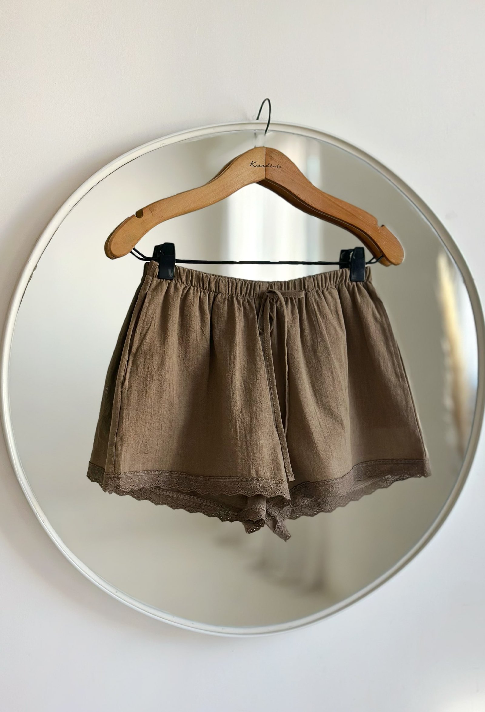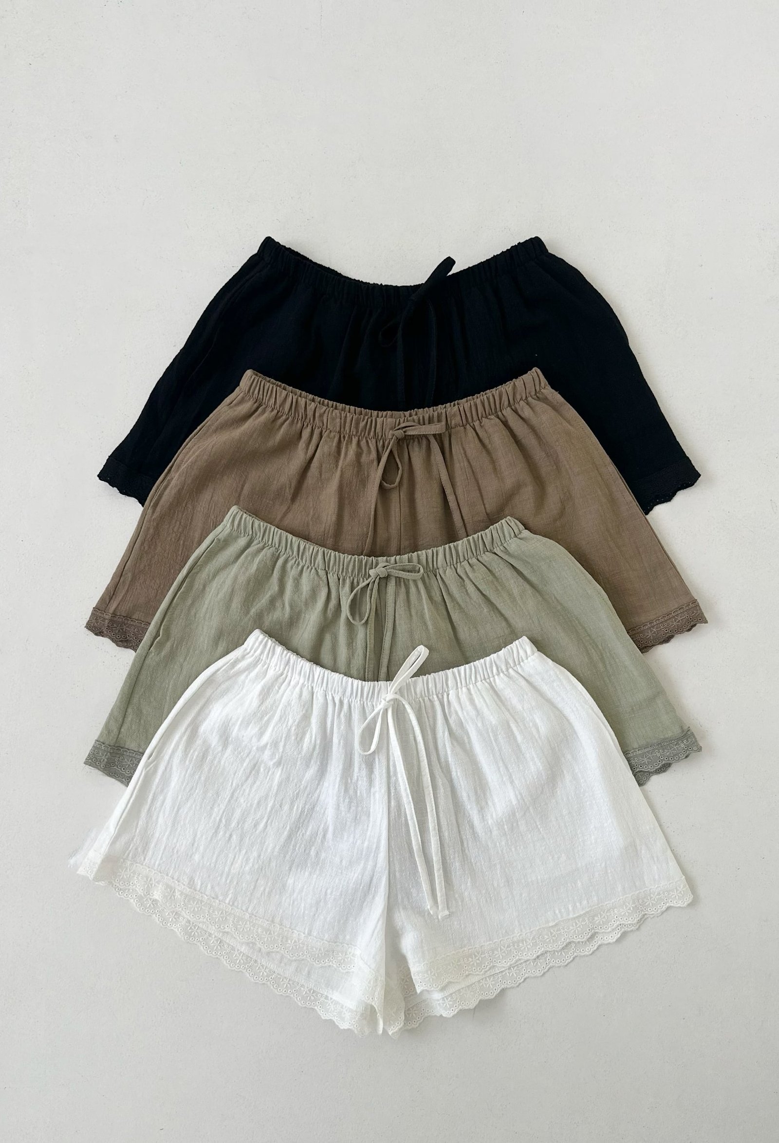 SHORT DE ALGODON CON ELASTICO EN LA CINTURA Y PUNTILLA EN EL RUEDO