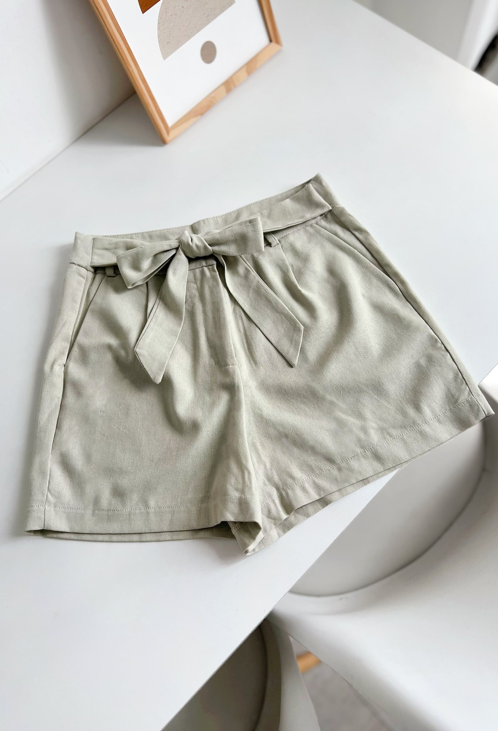SHORT DE LINO CON BOLSILLO Y LAZO
