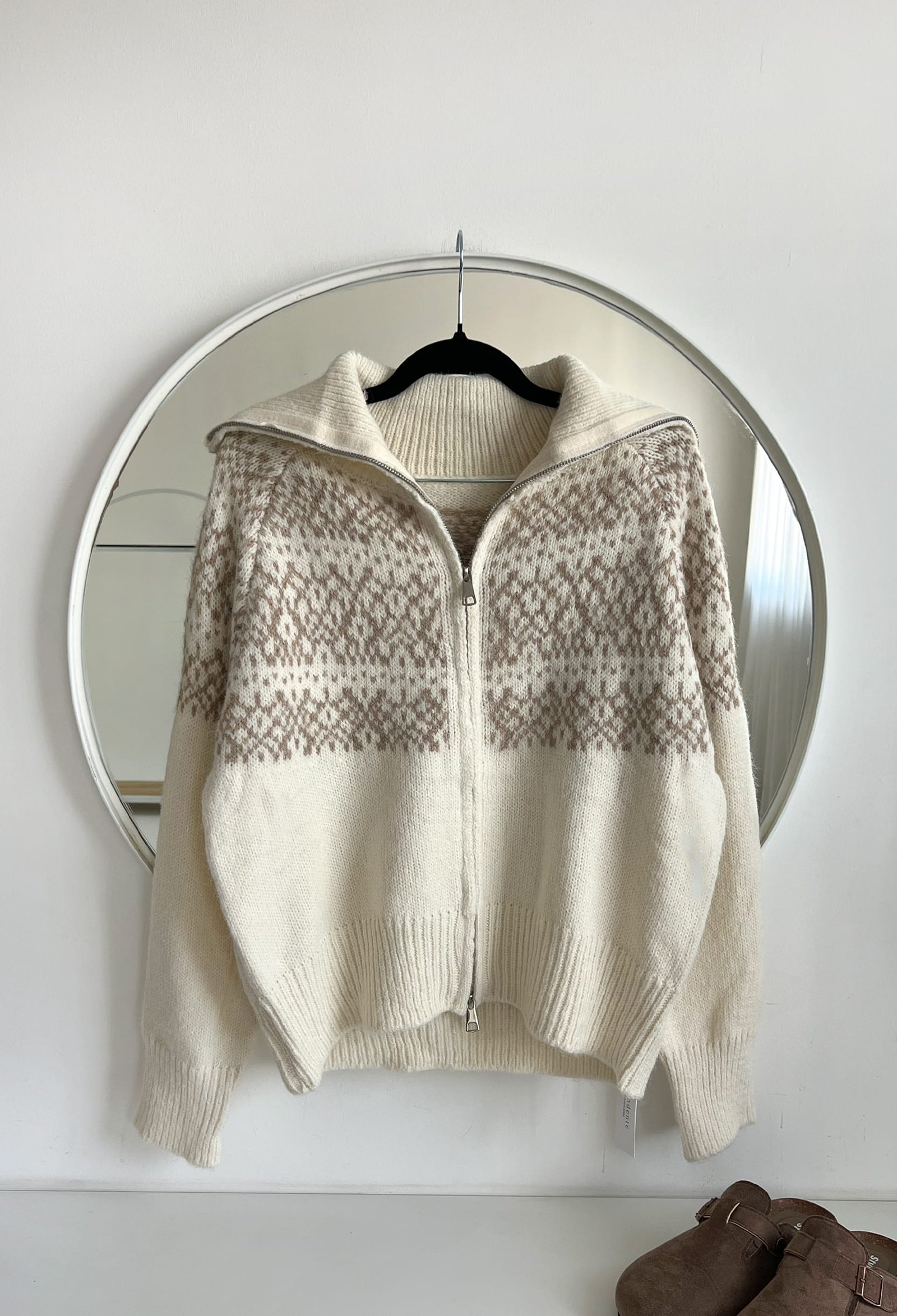 SWEATER TIPO CAMPERA TEJIDA CON TRAMA Y DOBLE CIERRE