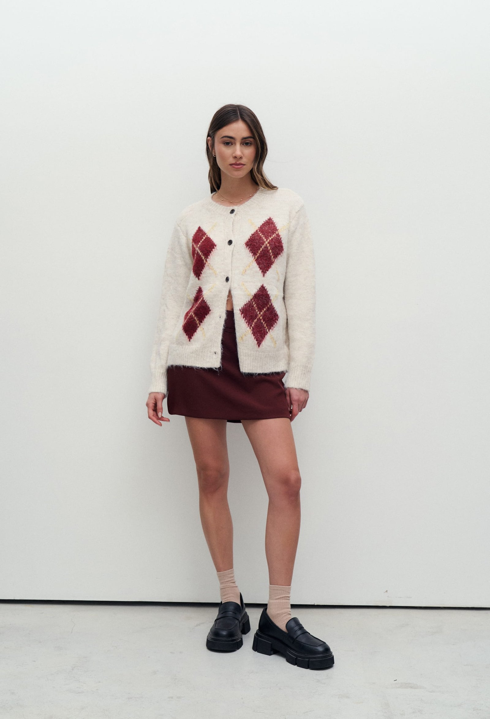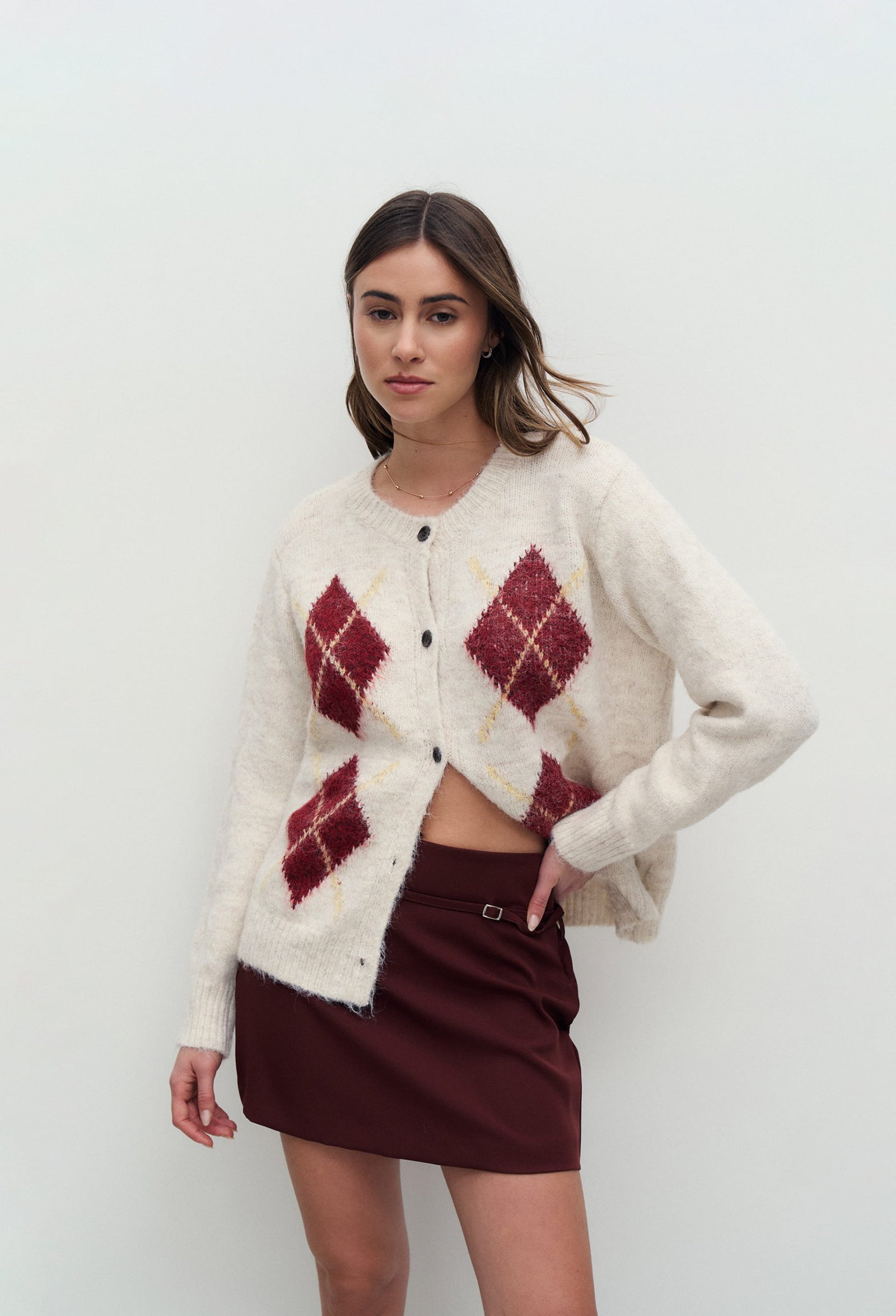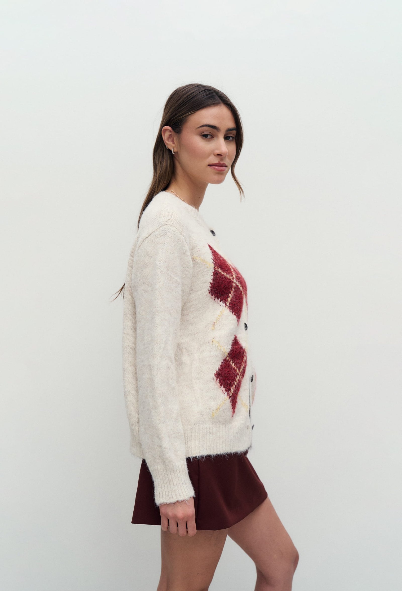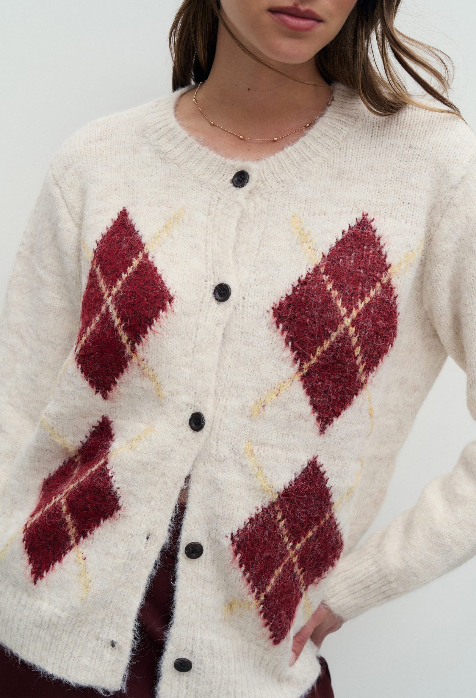 SWEATER TIPO CARDIGAN CON TRAMA ROMBOS