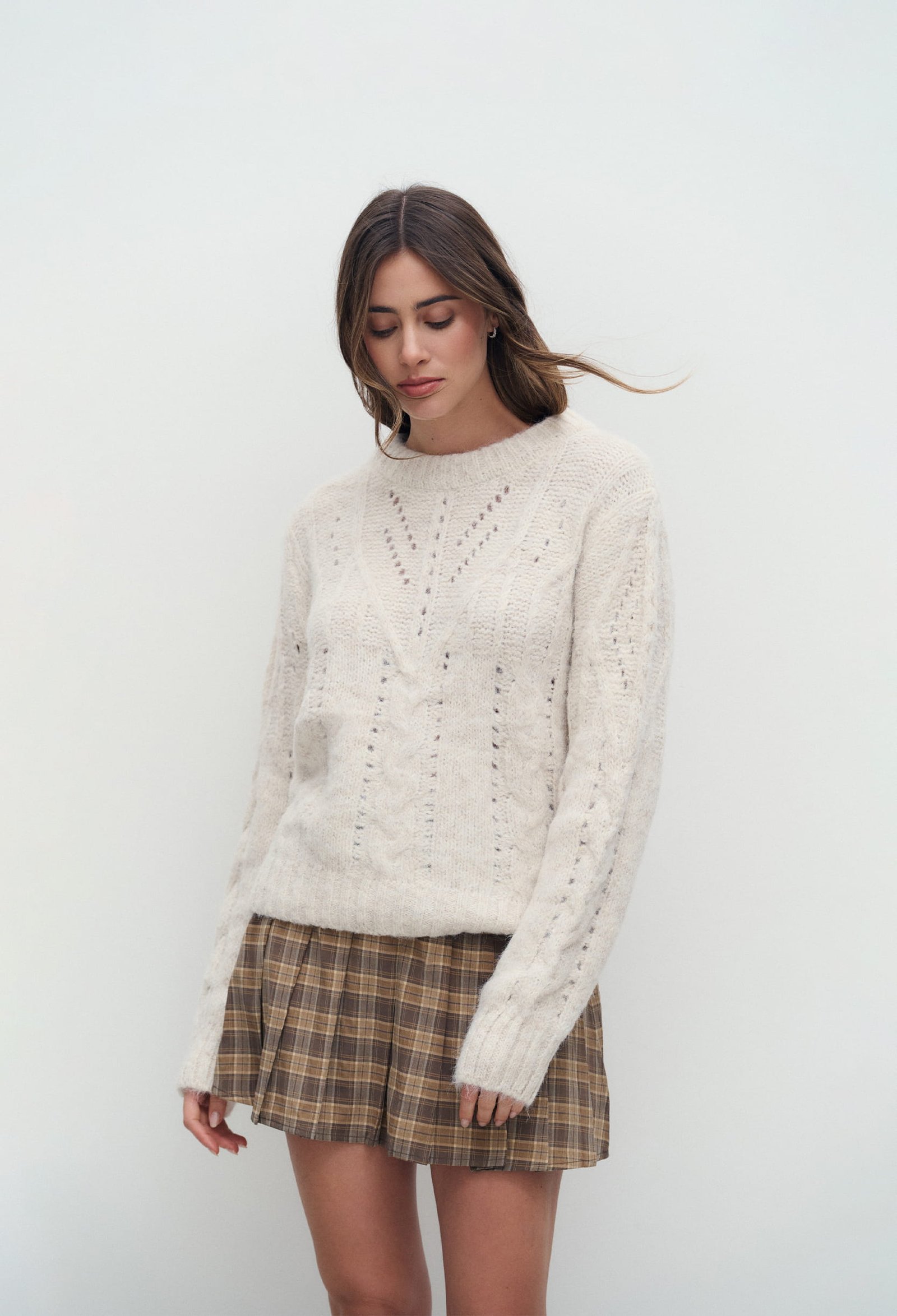 SWEATER DE PUNTO CUELLO REDONDO CON DETALLES DE CALADO