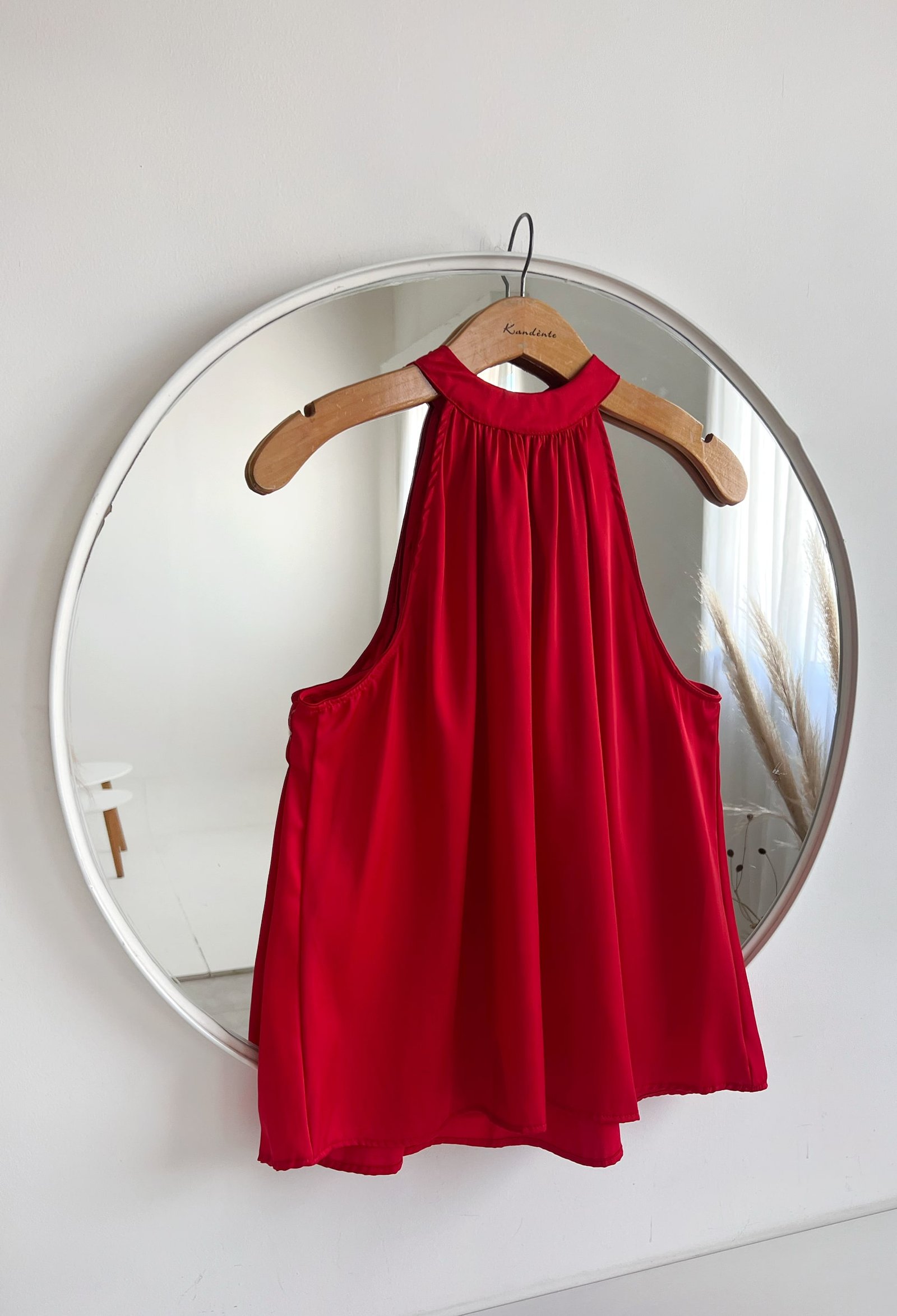 TOP DE SATEN CON CUELLO HALTER Y TIRAS ANUDABLES