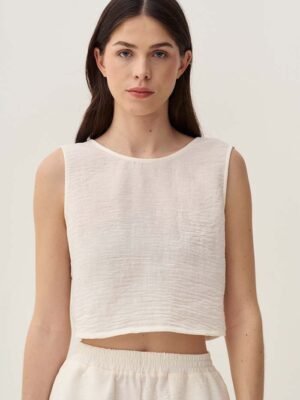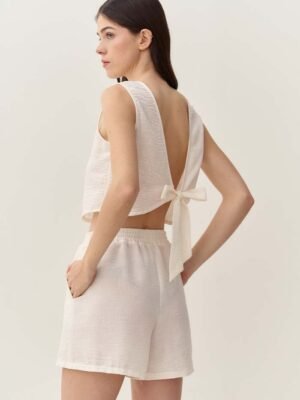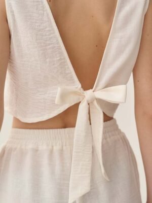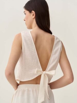 TOP DE LINO CON ESCOTE REDONDO Y LAZO EN LA ESPALDA
