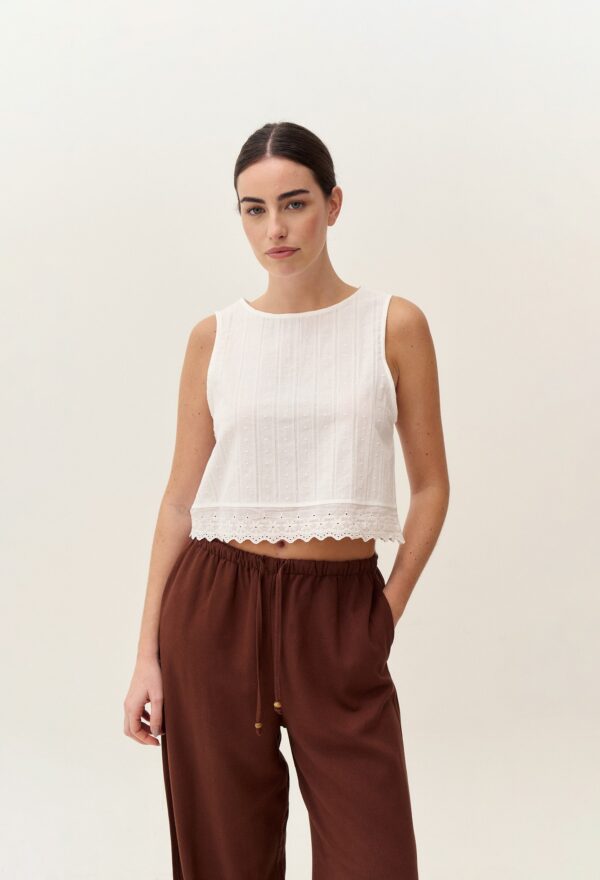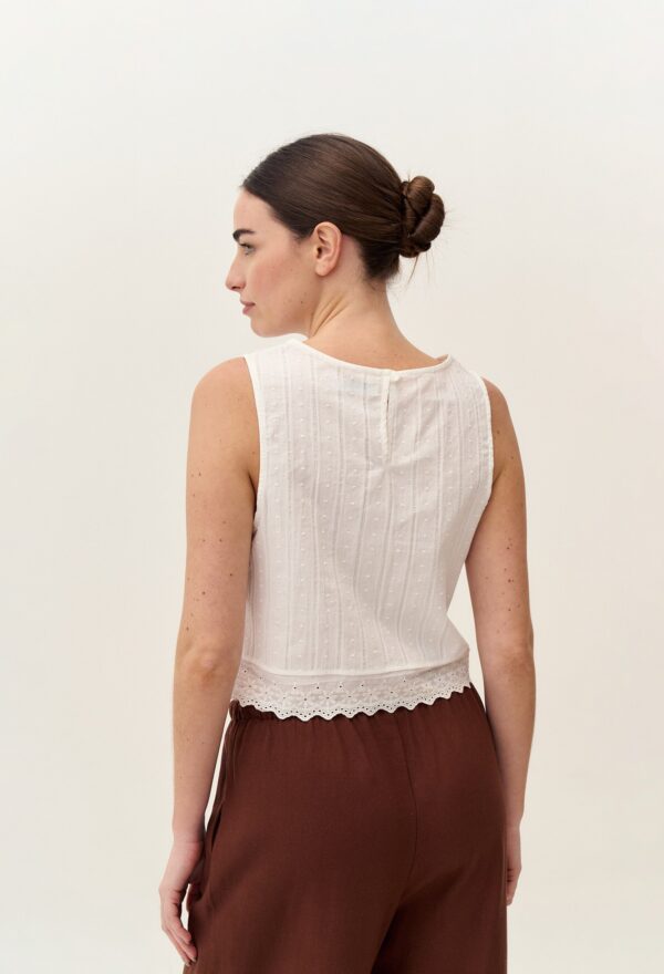 TOP DE COTTON JACQUARD CON PUNTILLA Y GOTA EN LA ESPALDA