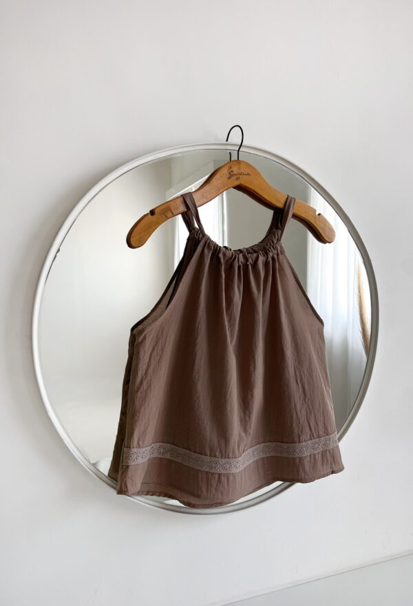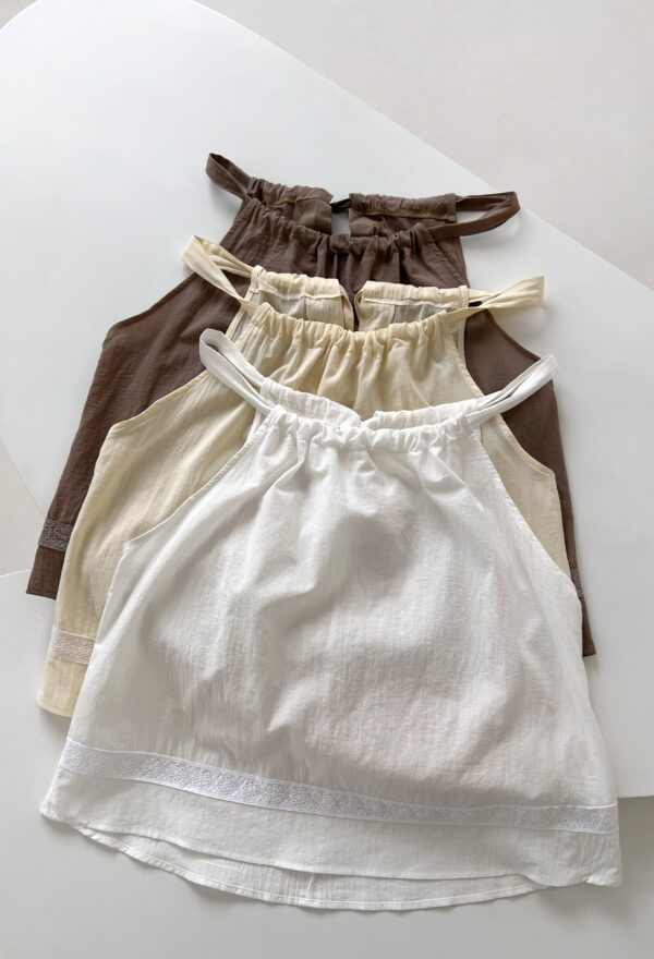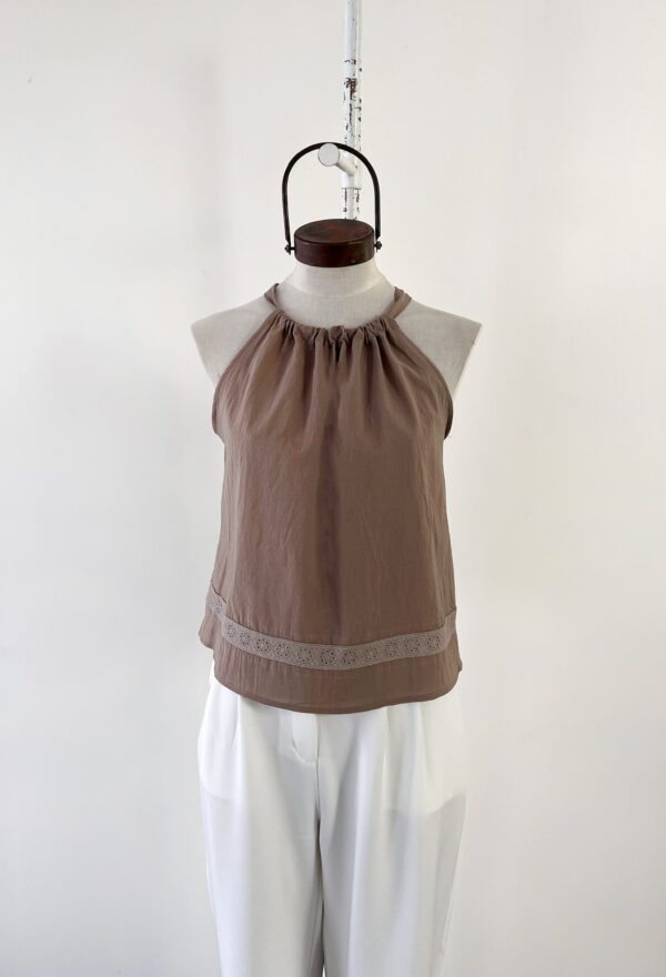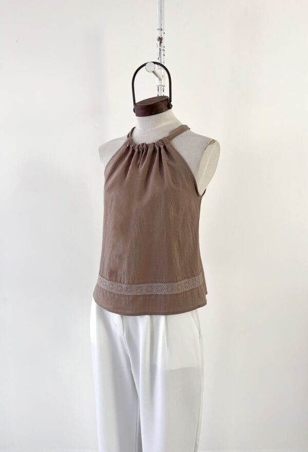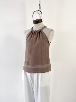TOP DE ALGODON CUELLO HALTER CON PUNTILLA Y GOTA EN ESPALDA