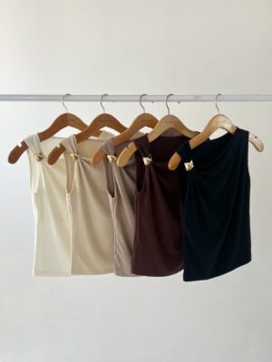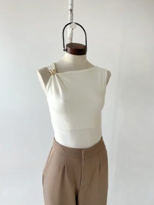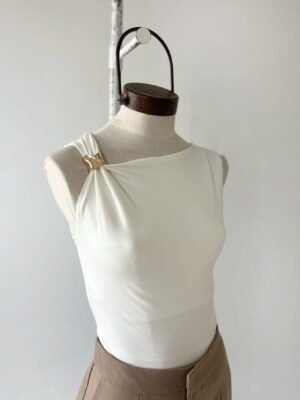 TOP DE ALGODON VISCOSA PREMIUM DE BRASIL CON DELANTERO EMBOLSADO Y FRUNCE EN HOMBRO CON AVIO DESMONTABLE