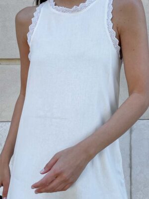 VESTIDO DE LINO Y VOILE CON PUNTILLA