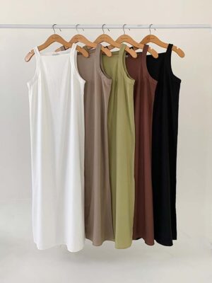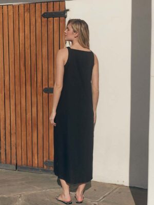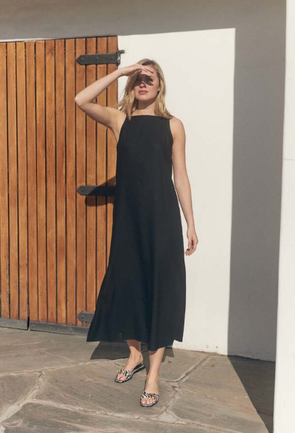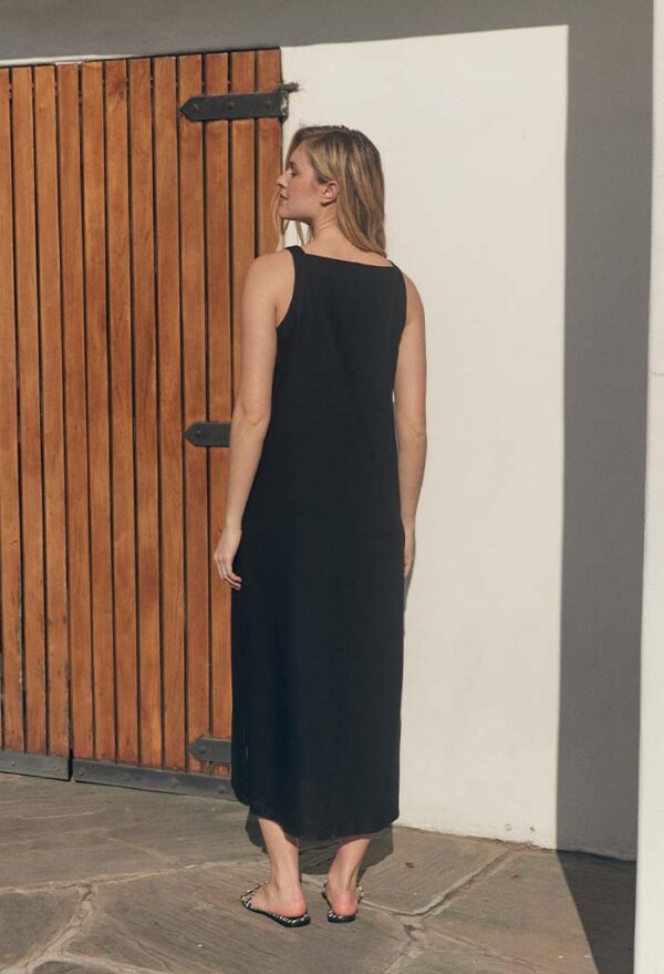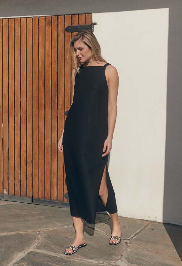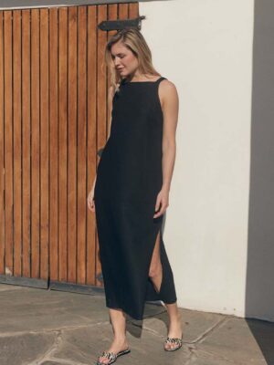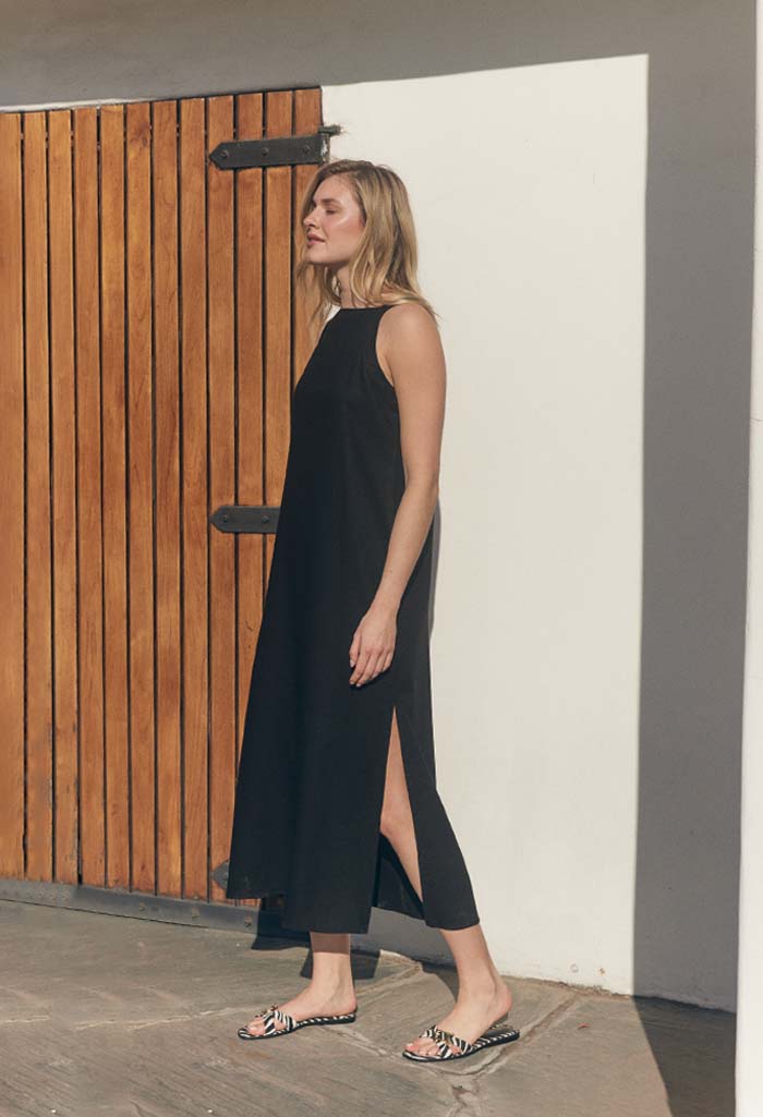 VESTIDO LARGO DE LINO CON TAJO EN LOS LATERALES