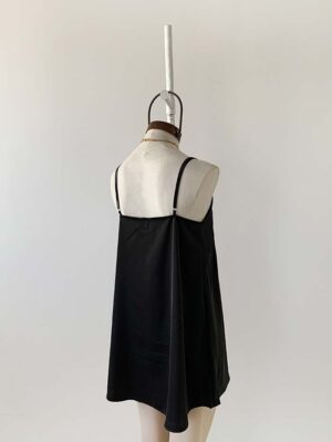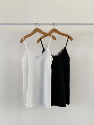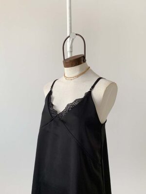 VESTIDO DE SEDA CON PUNTILLA EN EL ESCOTE Y TIRAS REGULABLES