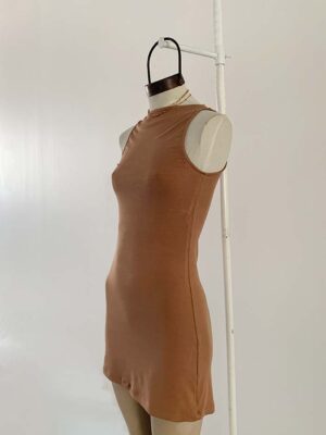 VESTIDO DE RIB VISCOSA CON CUELLO BOTE